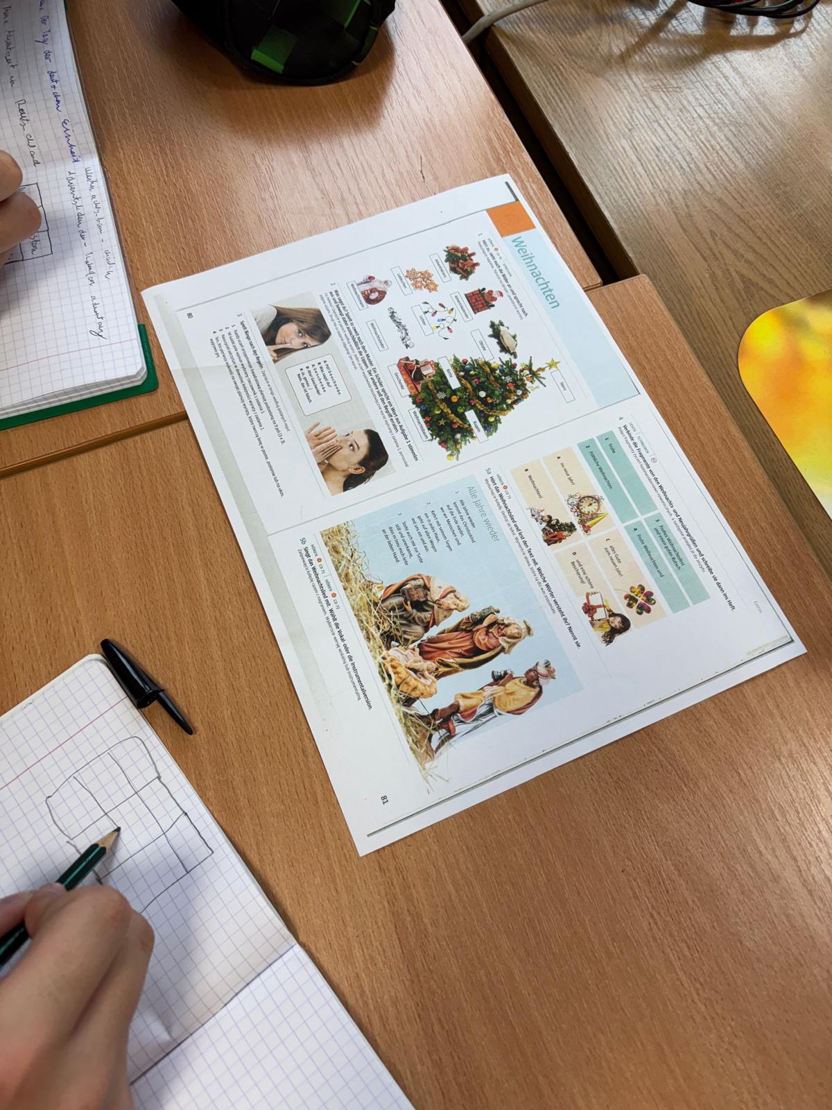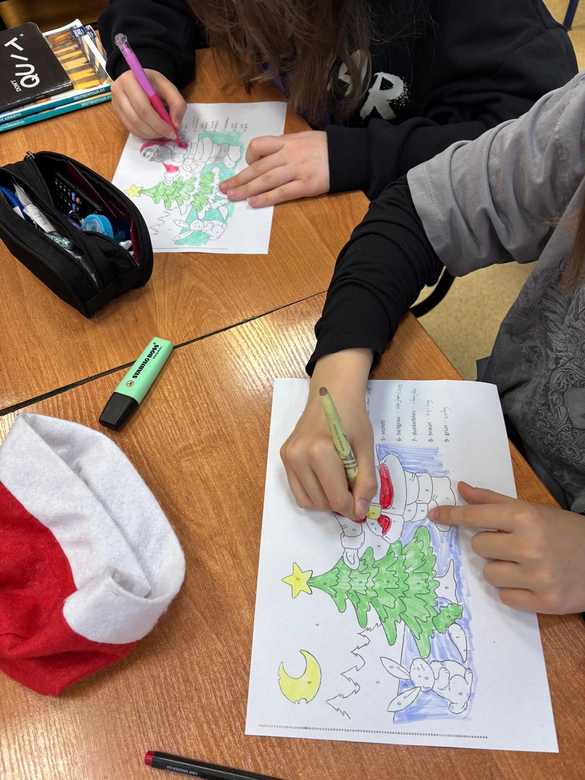5 grudnia uczniowie klas 7 i 8 na lekcjach języka niemieckiego poznali zwyczaje i tradycje okresu przedświątecznego w Niemczech. Przy okazji nauczyli się rozpoznawać kolory oraz poszerzyli zasób słownictwa. Zarówno adwent jak i Święta Bożego Narodzenia to okres radości trwający aż do Środy Popielcowej. Obchody bożonarodzeniowe w Niemczech mają wielowiekową tradycję i są tak bogate jak w żadnym innym kraju świata. Są one kultywowane, modernizowane, a teraźniejszość wprowadza coraz to nowe symbole i tradycje ich świętowania. We współczesnym świecie powoli zatracamy sens tych świąt zawarty w słowach jednej z najpiękniejszych kolęd „Stille Nacht, heilige Nacht“ , której przesłaniem jest myśl: „Pokój ludziom na ziemi“