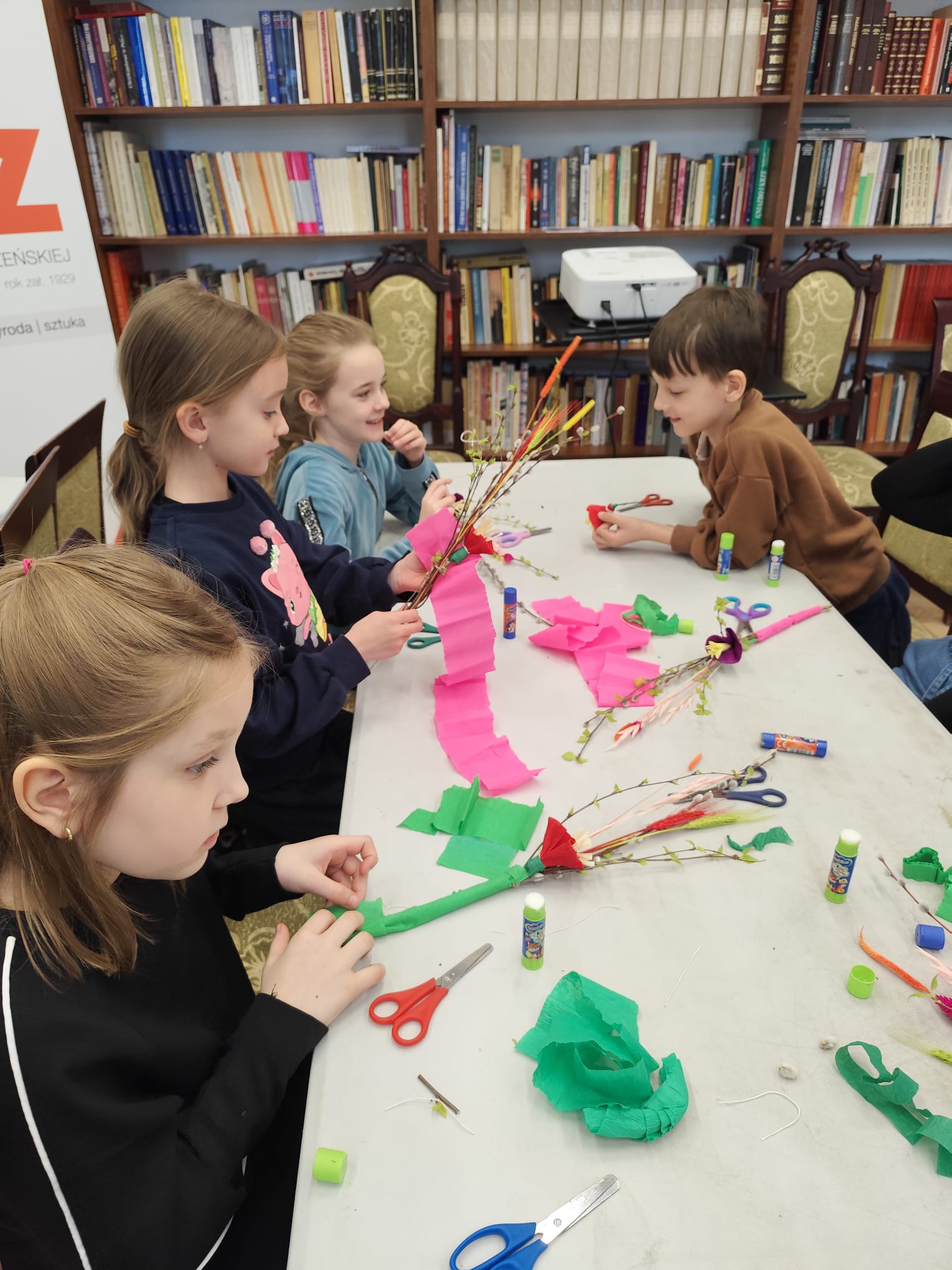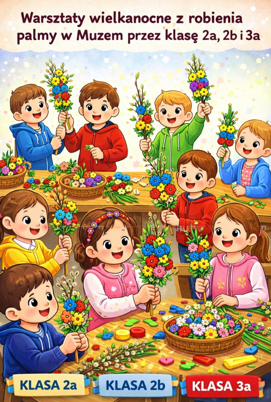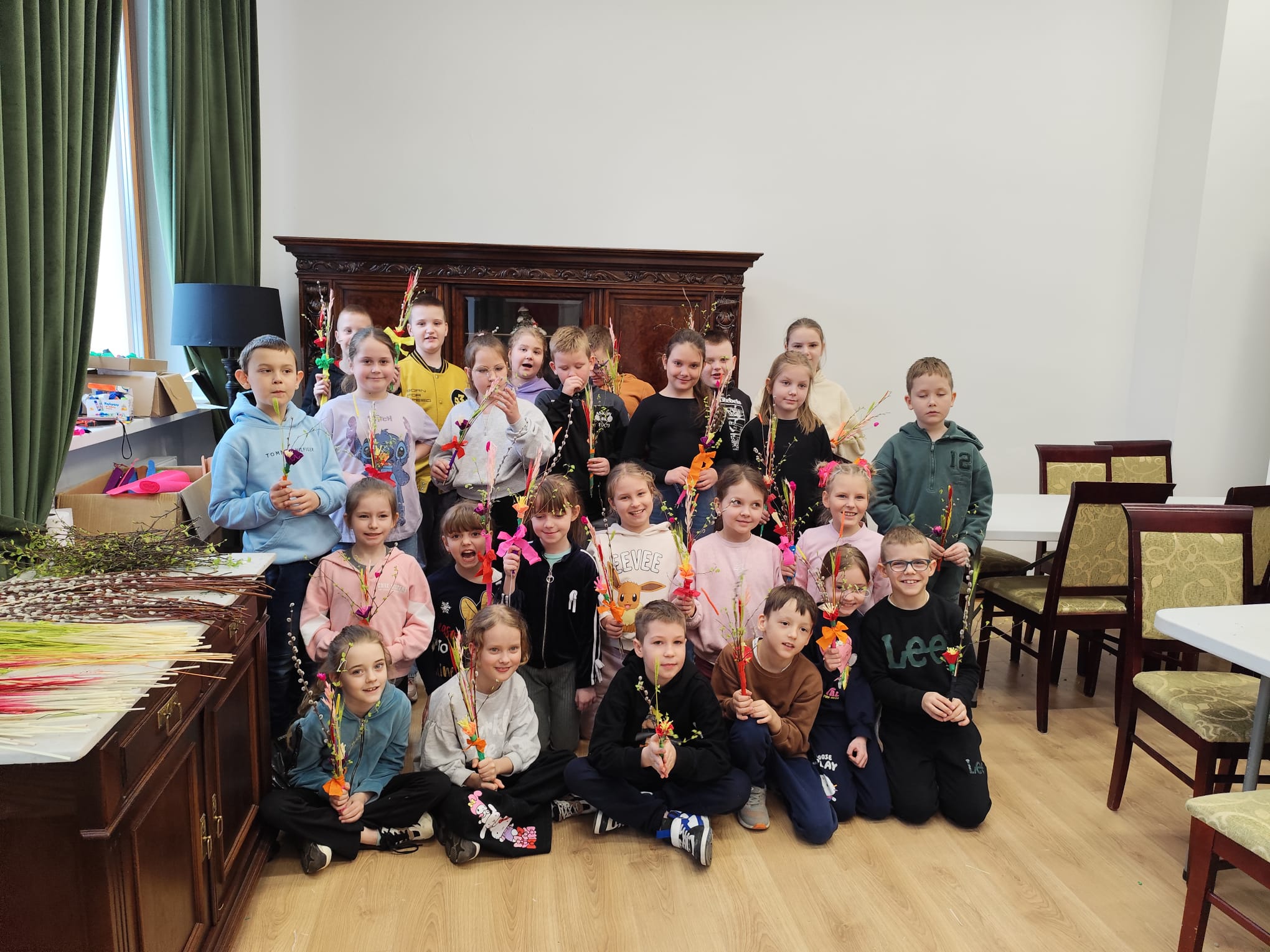 W minionym tygodniu uczniowie klasy 2a, 2b i 3a uczestniczyli w warsztatach „Wielkanocna Palma” w Muzeum Ziemi Zawkrzeńskiej w Mławie. Podczas spotkania dzieci wykonały palmy z zielonych gałązek, kolorowych suszonych roślin oraz elementów z bibuły i krepiny, tworząc