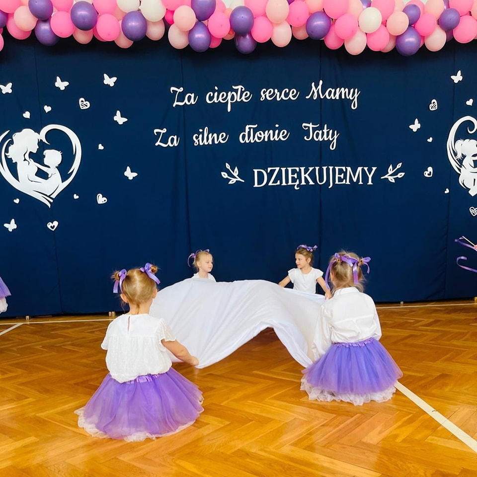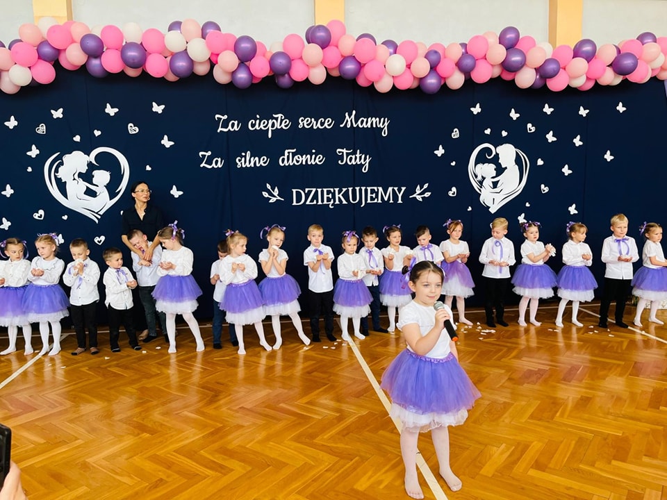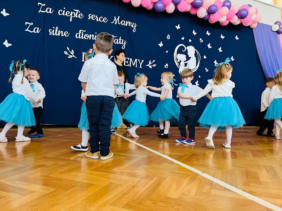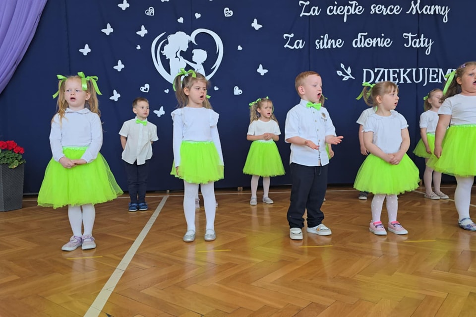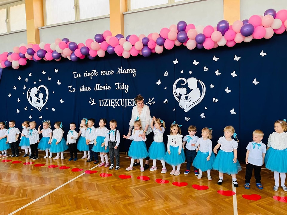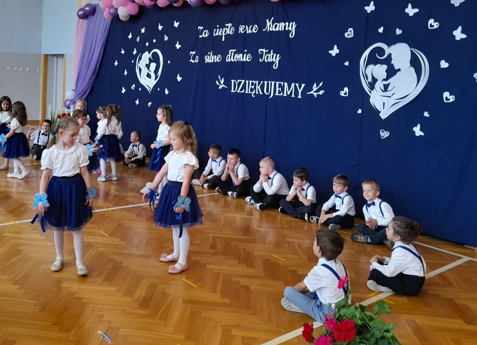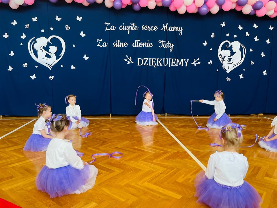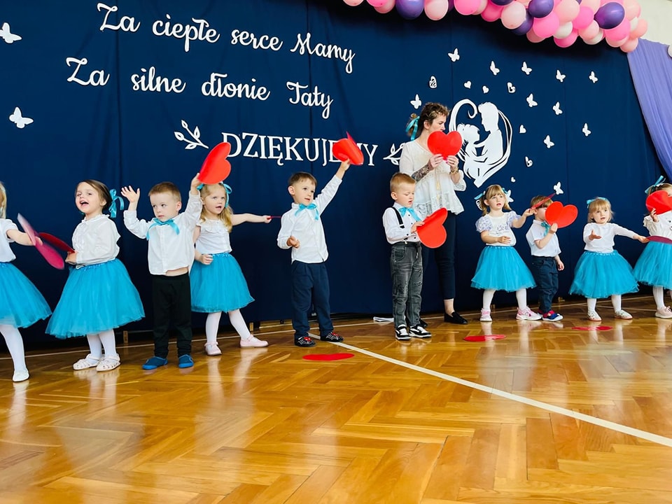 Dzieci z grup Żabki, Motylki, Biedronki i Bratki z wielkim zaangażowaniem wystąpiły na scenie, prezentując wiersze, piosenki, krótkie inscenizacje oraz taniec. Nie zabrakło wzruszeń, uśmiechów i gromkich braw. Każde dziecko miało okazję pokazać swoje umiejętności i wyrazić miłość do swoich najbliższych.