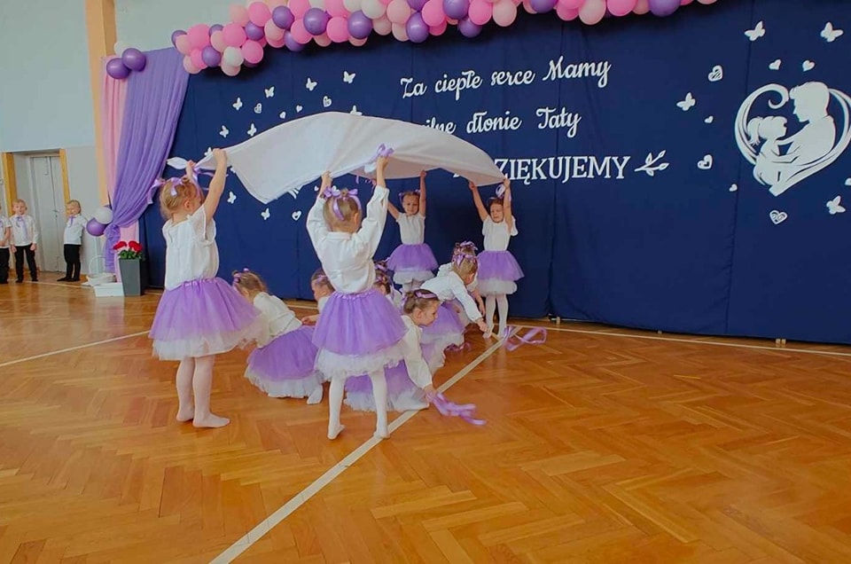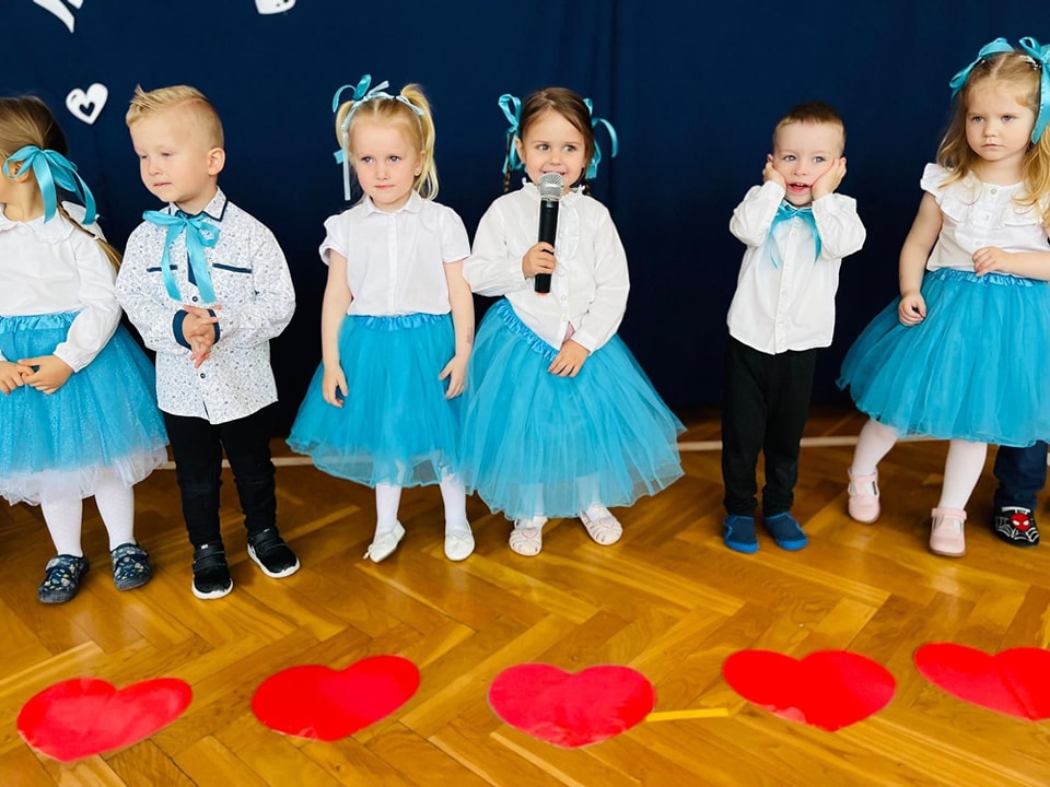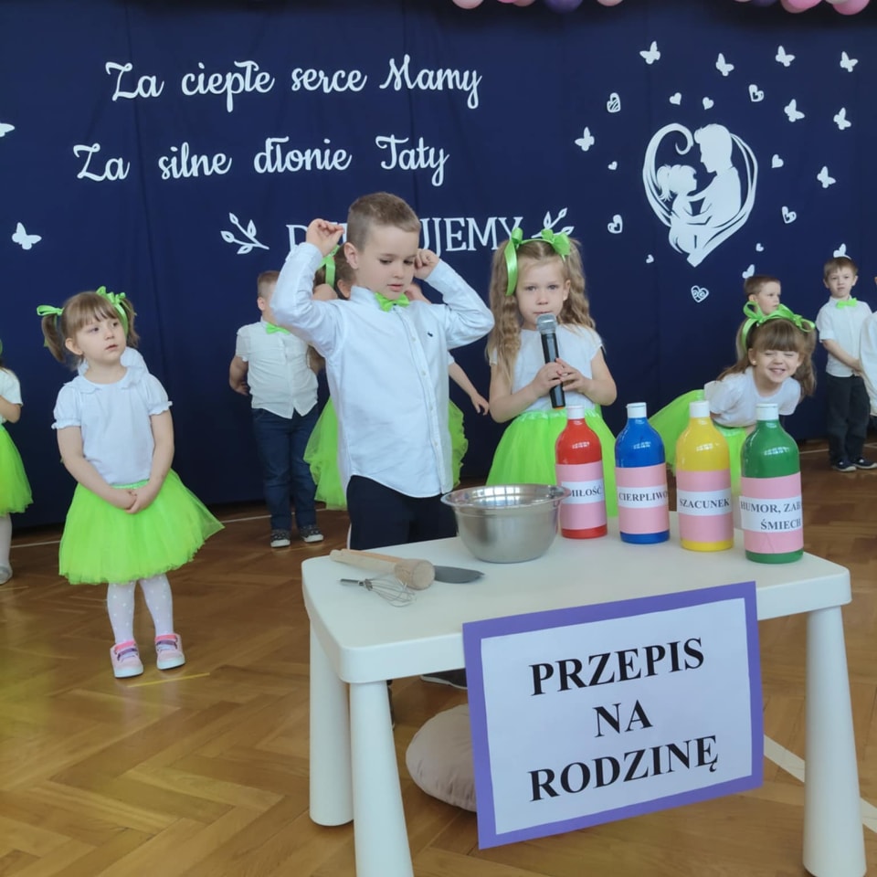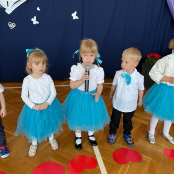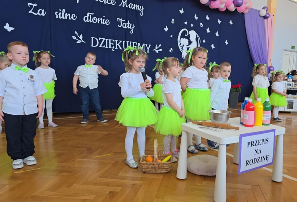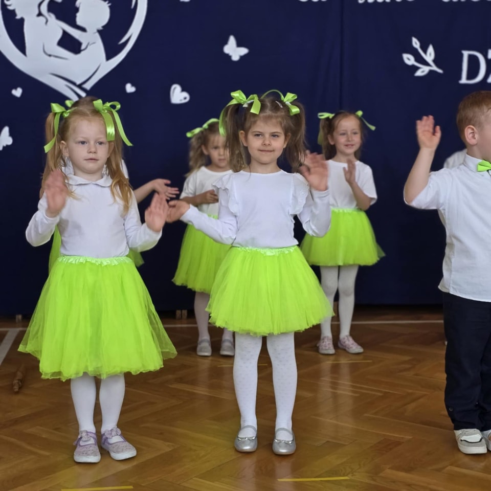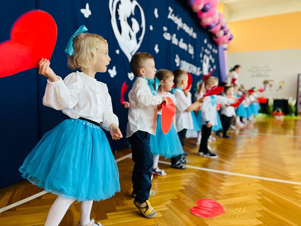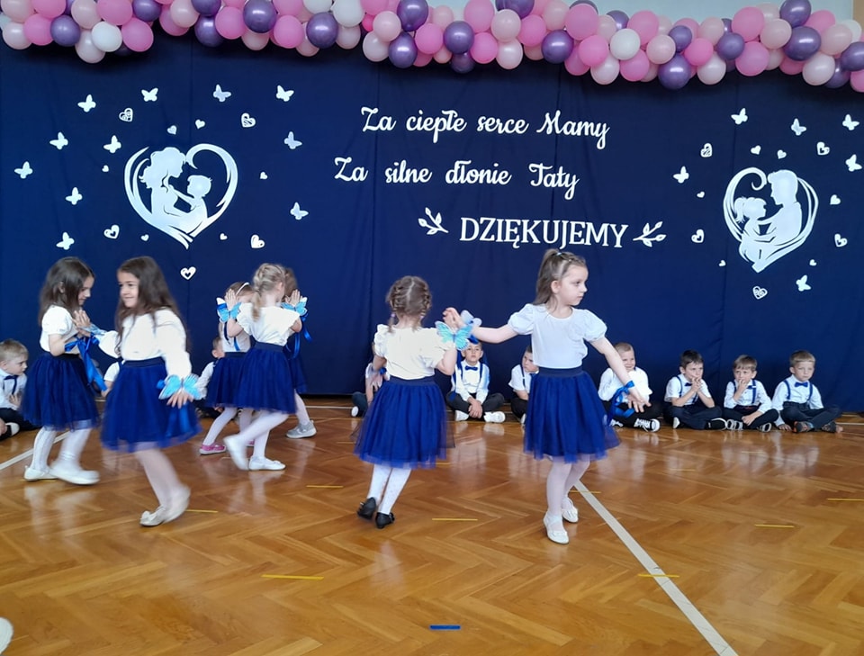 Dzieci z grup Żabki, Motylki, Biedronki i Bratki z wielkim zaangażowaniem wystąpiły na scenie, prezentując wiersze, piosenki, krótkie inscenizacje oraz taniec. Nie zabrakło wzruszeń, uśmiechów i gromkich braw. Każde dziecko miało okazję pokazać swoje umiejętności i wyrazić miłość do swoich najbliższych.