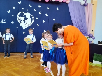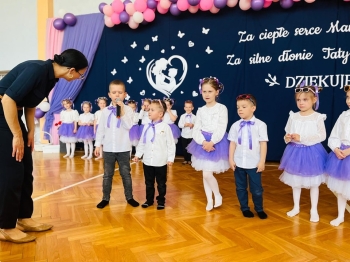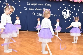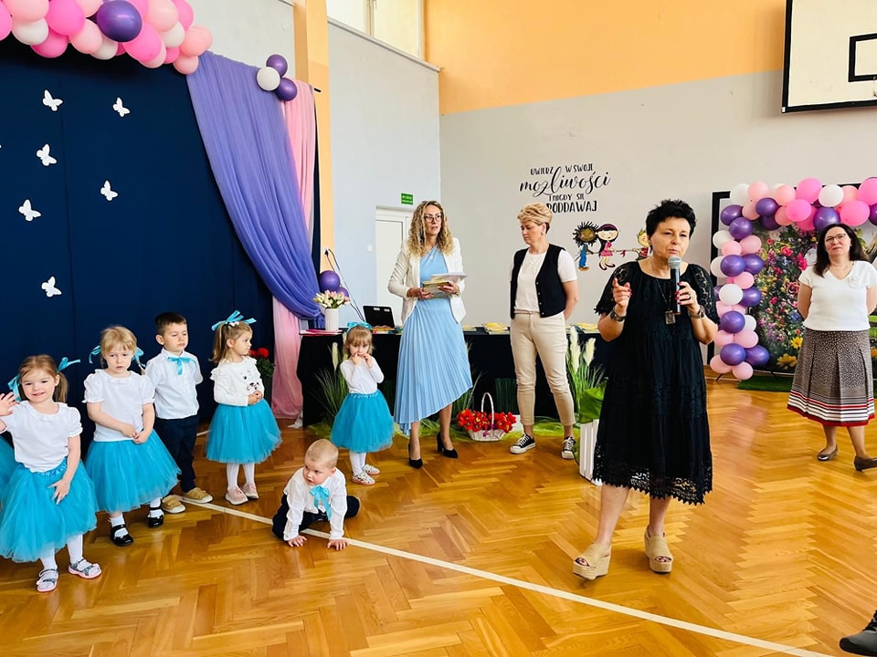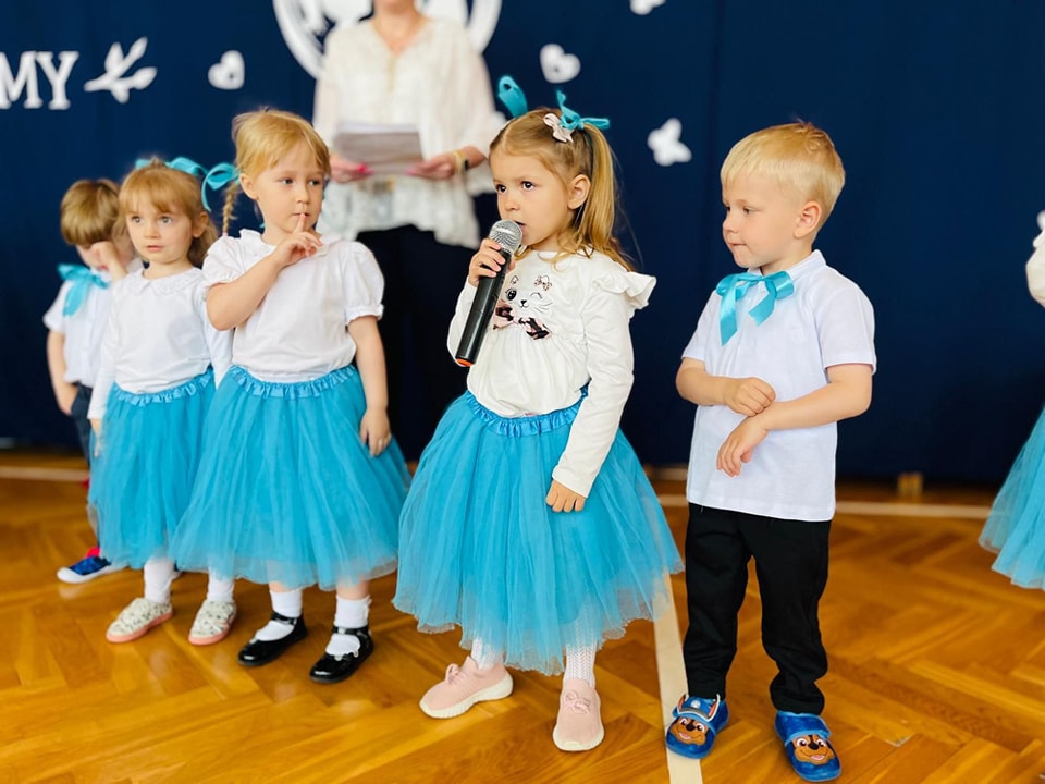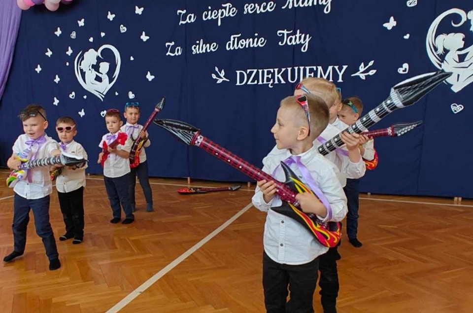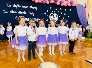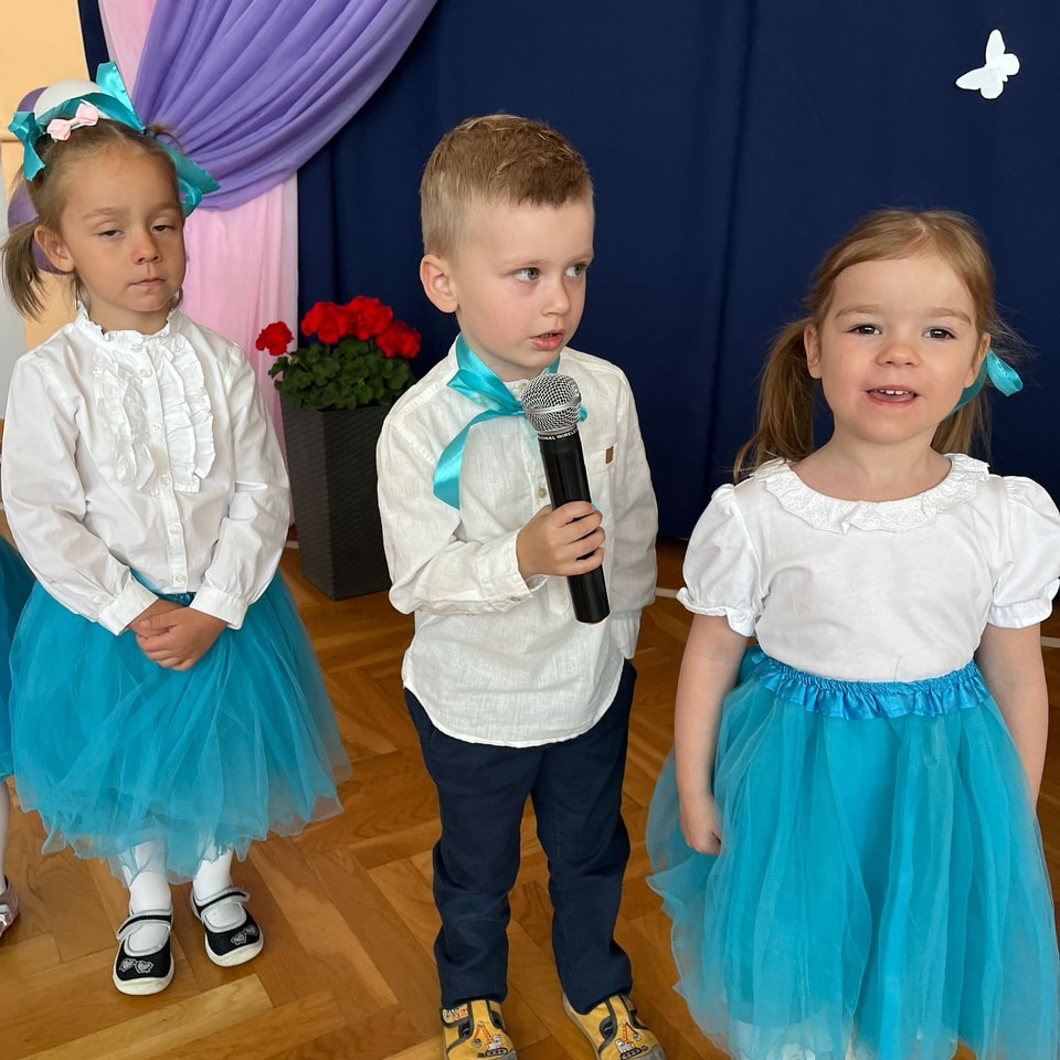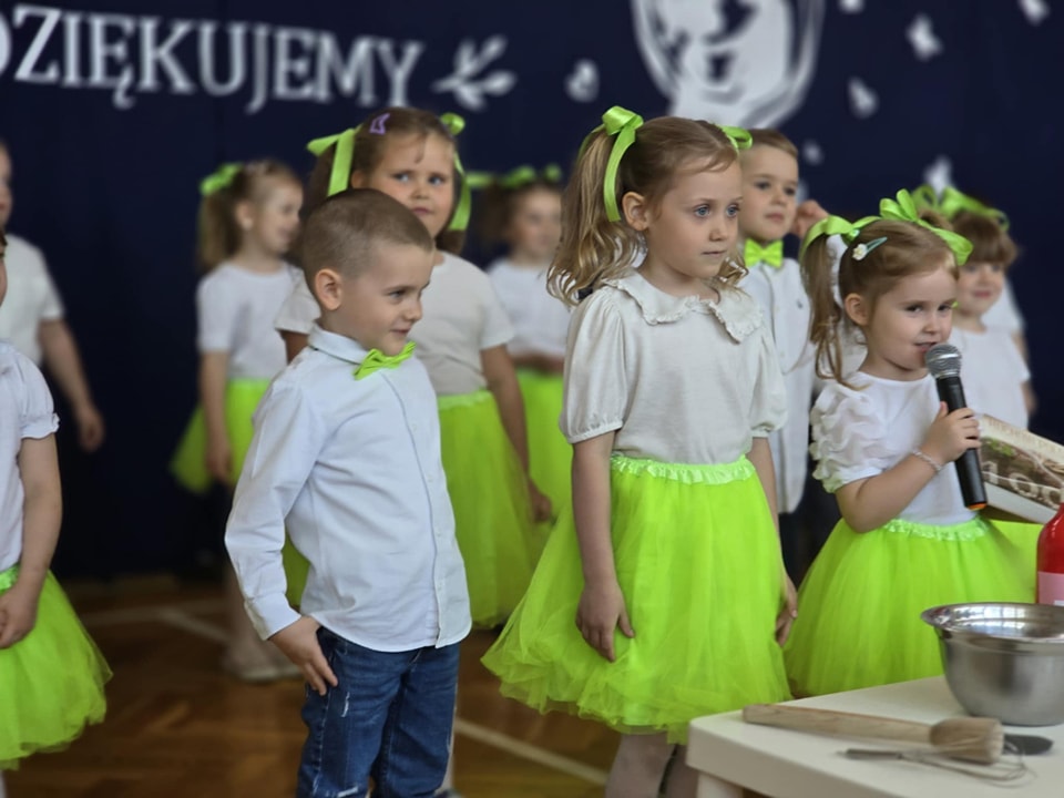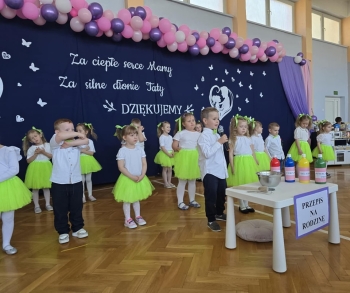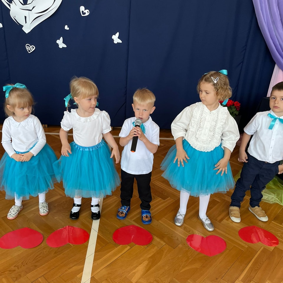 Dzieci z grup Żabki, Motylki, Biedronki i Bratki z wielkim zaangażowaniem wystąpiły na scenie, prezentując wiersze, piosenki, krótkie inscenizacje oraz taniec. Nie zabrakło wzruszeń, uśmiechów i gromkich braw. Każde dziecko miało okazję pokazać swoje umiejętności i wyrazić miłość do swoich najbliższych.