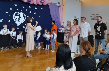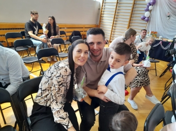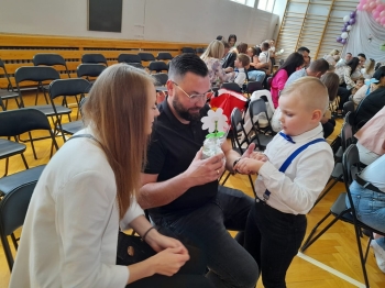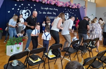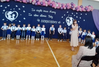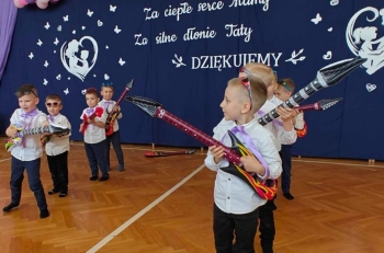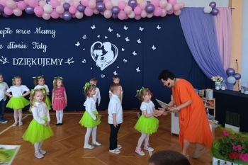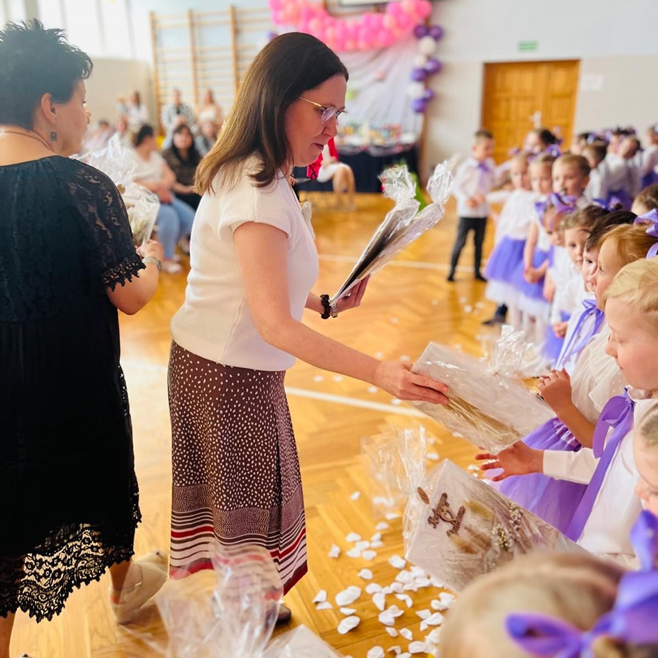 Po występie dzieci wręczyły rodzicom własnoręcznie wykonane upominki, co wywołało wiele radości i wzruszeń.