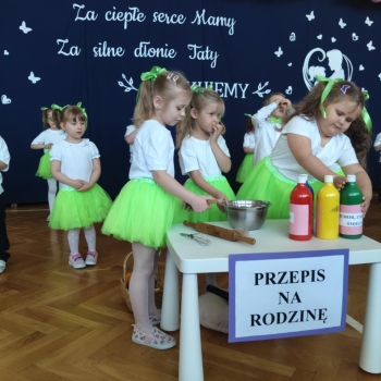 Obchody DNIA RODZINY wpisane są corocznie w plan wydarzeń naszego przedszkola. Jest to wyjątkowa uroczystość, podczas której dzieci z grup przedszkolnych prezentują programy artystyczne przygotowane specjalnie dla swoich rodziców.