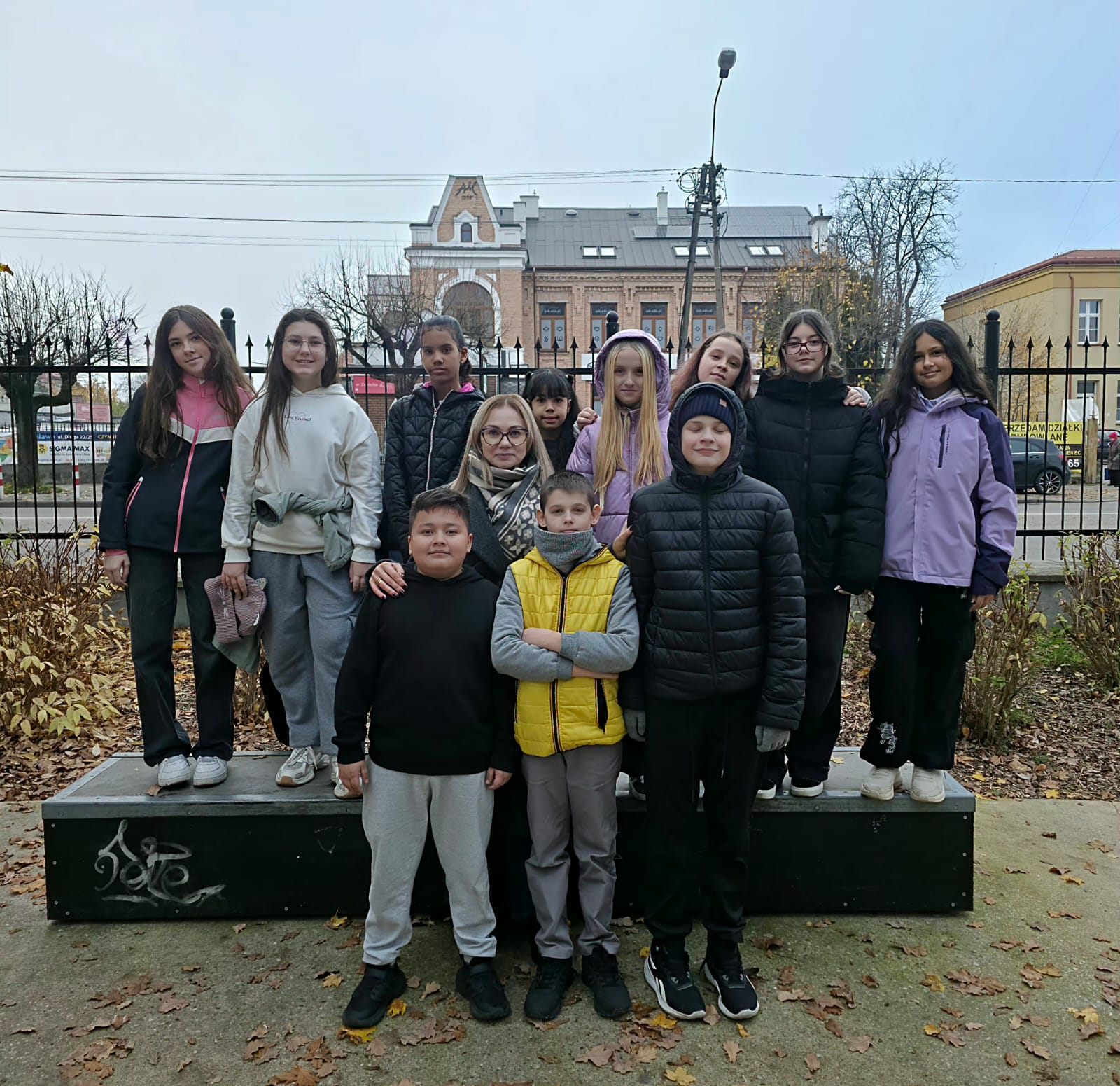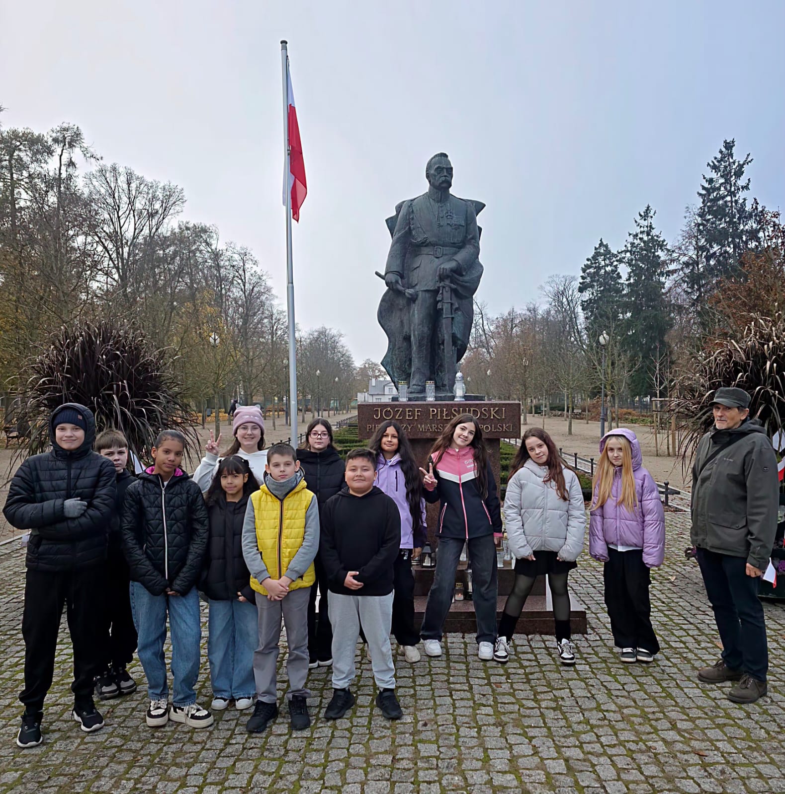 Podczas niezwykłej lekcji w Parku Miejskim dzieci wyruszyły w podróż, w czasie, słuchając opowieści nauczyciela o przedwojennych budynkach, które kiedyś otaczały to miejsce.