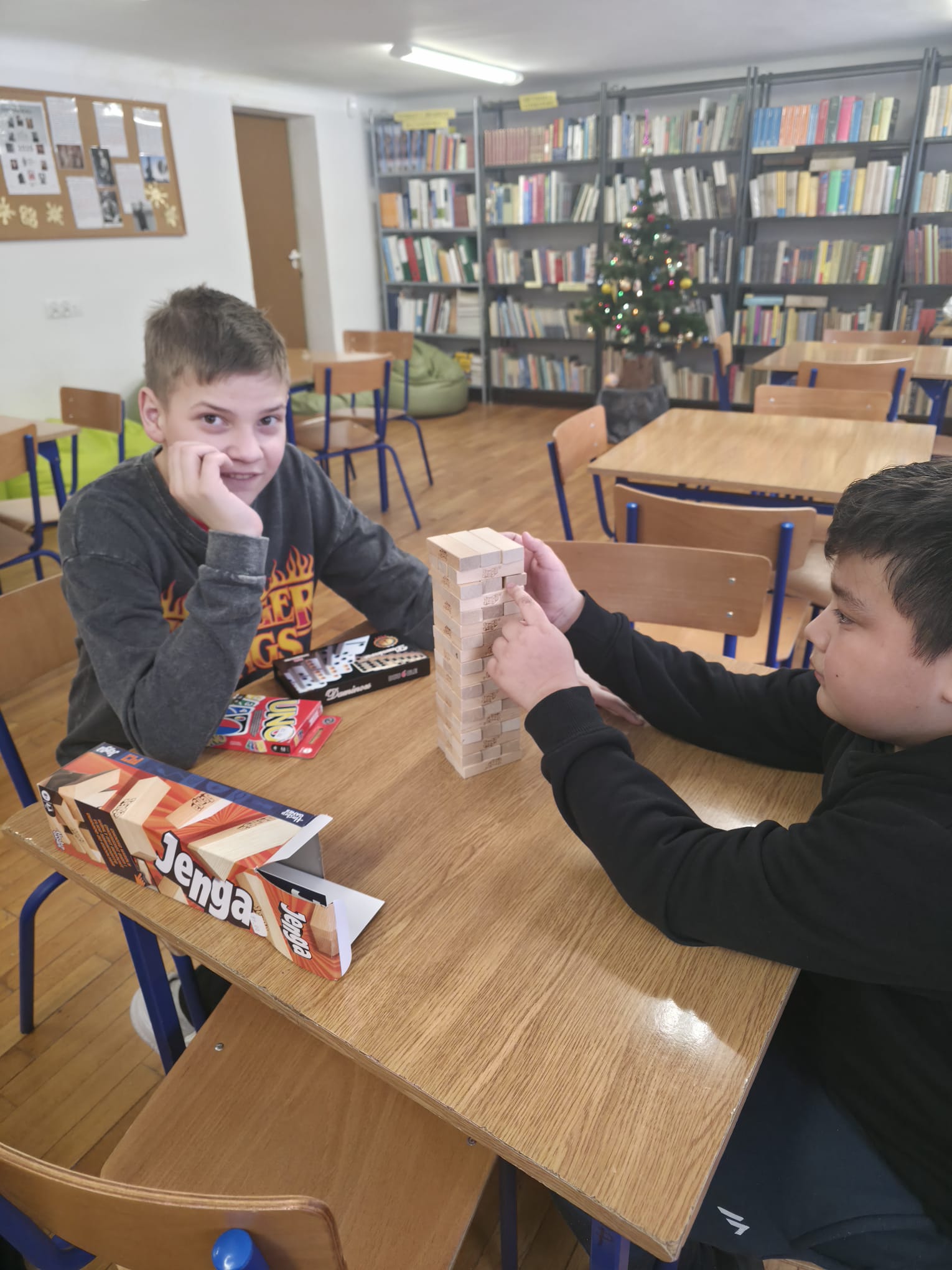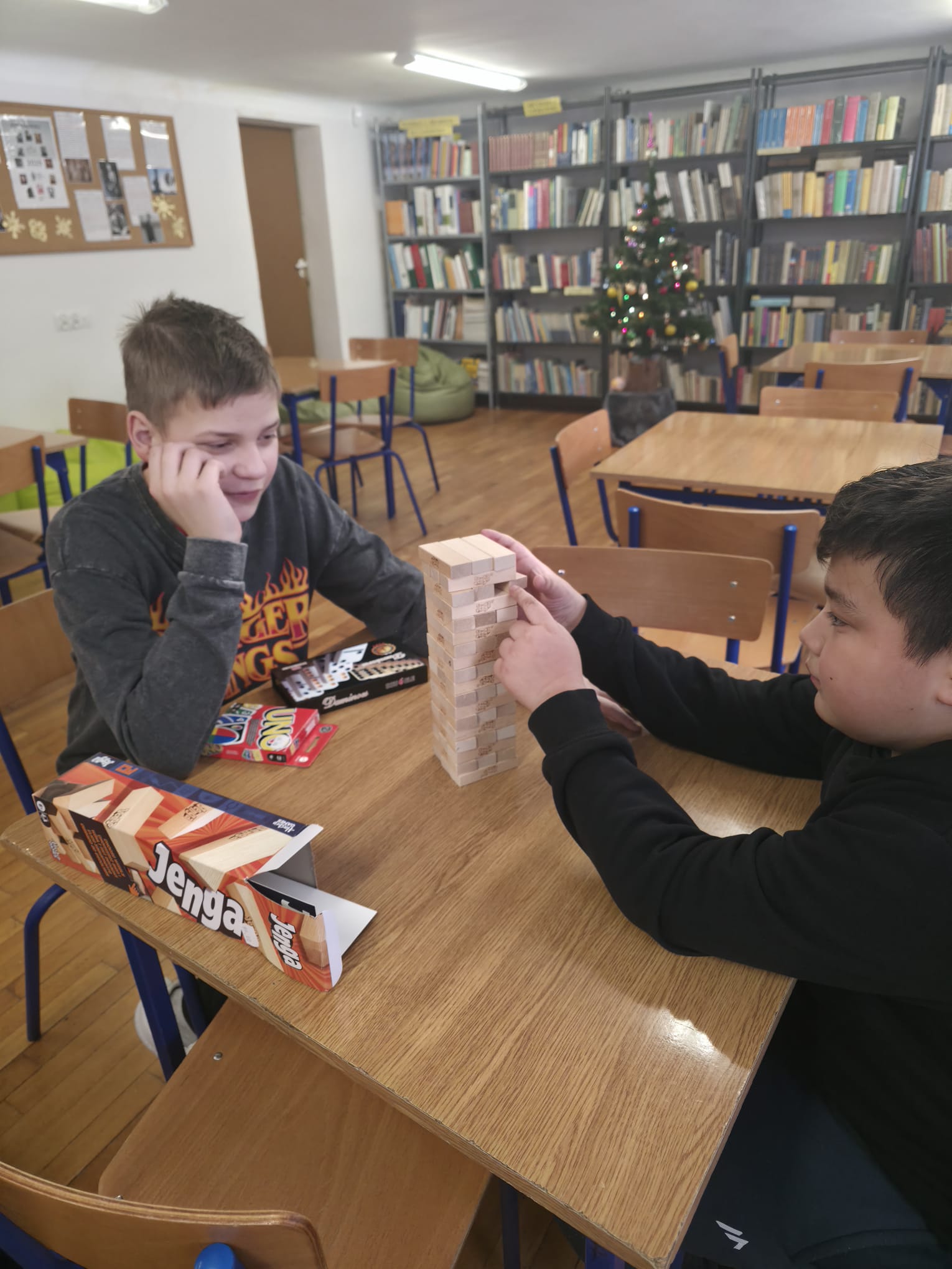 Dzieci z oddziału przygotowawczego nie nudzą się w szkole i chętnie spędzają czas na wspólnej zabawie. Gry planszowe pomagają przełamywać bariery językowe, sprzyjają integracji oraz rozwijają umiejętność współpracy i komunikacji.