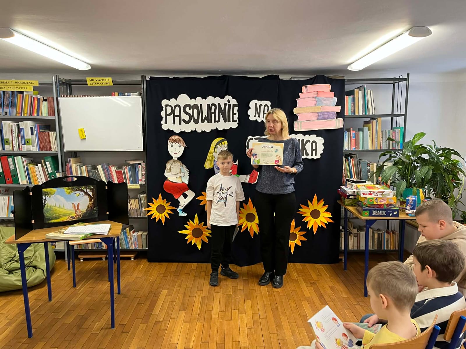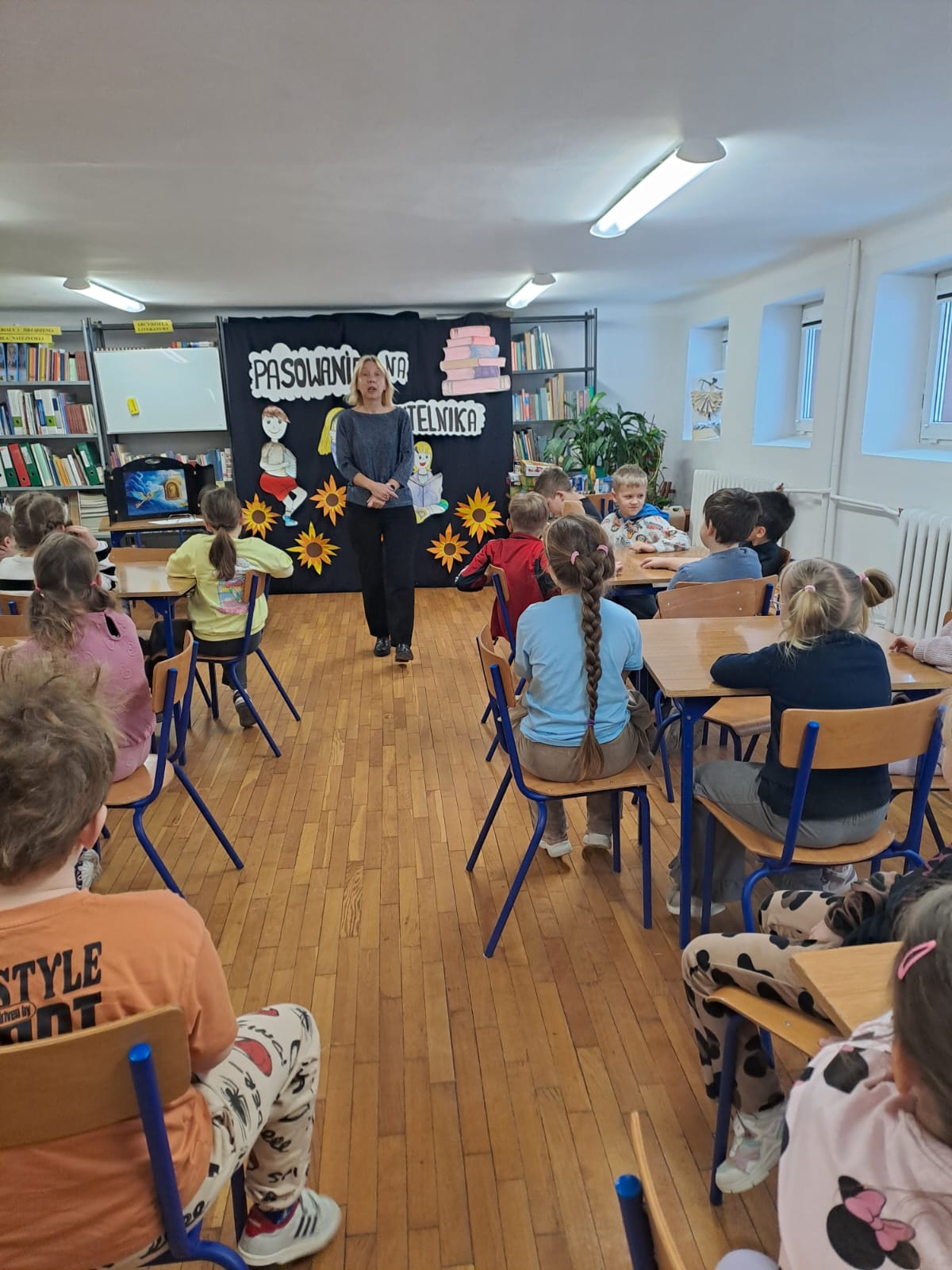 18 lutego uczniowie klas pierwszych uroczyście zostali pasowani na czytelnika szkolnej biblioteki. Spotkanie rozpoczęli od kamishibai. W ten sposób poznali opowieść „ Złoty klucz do marzeń”. Następnie dowiedzieli się, jakie są zasady zachowania i wypożyczania w bibliotece szkolnej oraz złożyli przyrzeczenie, że zawsze będą szanowali książki. Na zakończenie przyszedł czas na wypożyczenie wybranych tytułów.