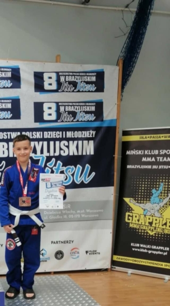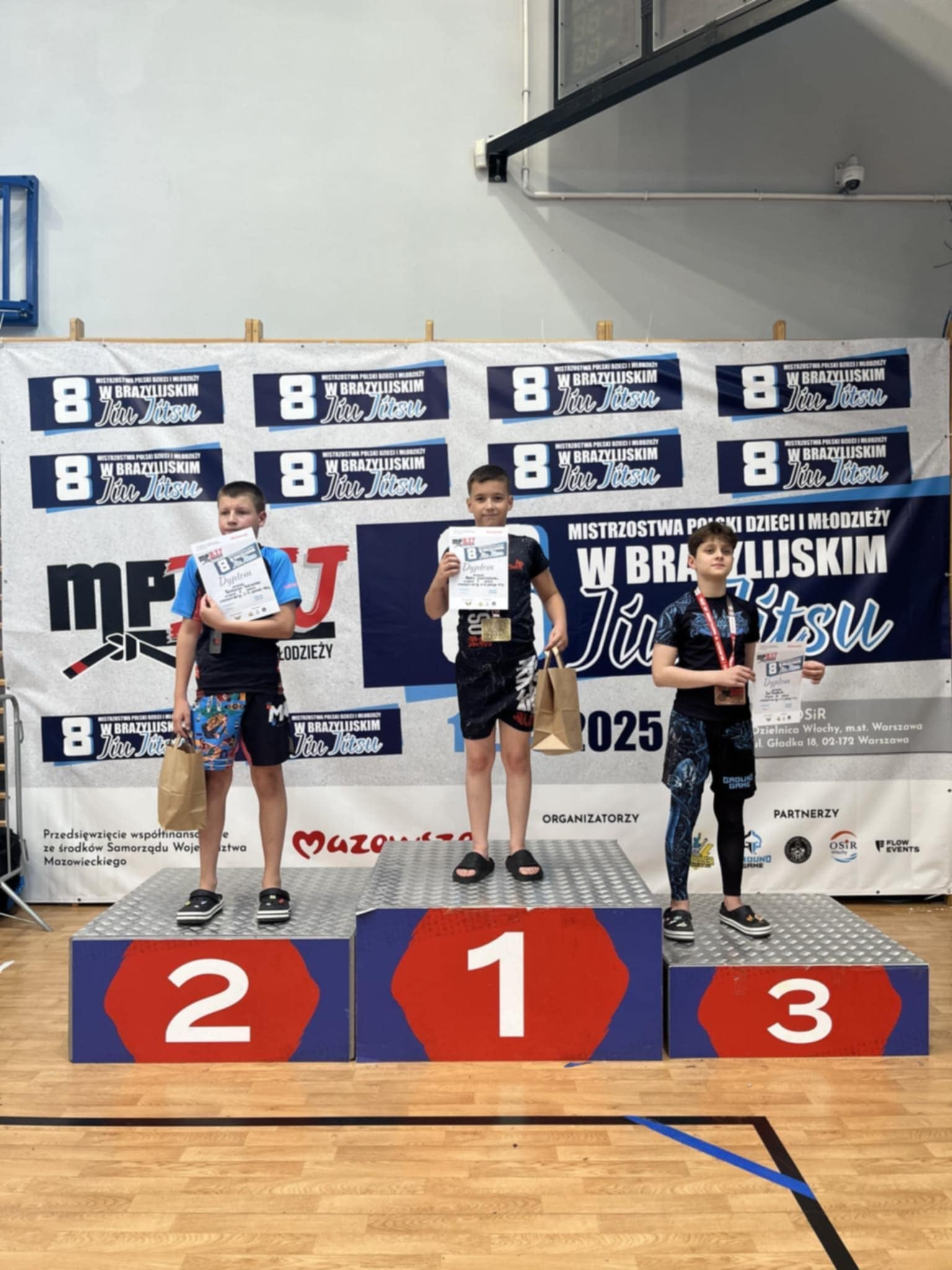 Aleks Jaroszewski sięgnął po złoto podczas VIII Mistrzostw Polski Dzieci i Młodzieży w Brazylijskim Jiu Jitsu, zdobywając tytuł Mistrza Polski w kategorii NO-GI! To jednak nie wszystko — Aleks nie zatrzymuje się na jednym sukcesie! W kategorii GI również stanął na podium, zdobywając brązowy medal. Cała społeczność SP2 pęka z dumy – wielkie brawa i gratulacje dla naszego utalentowanego zawodnika!