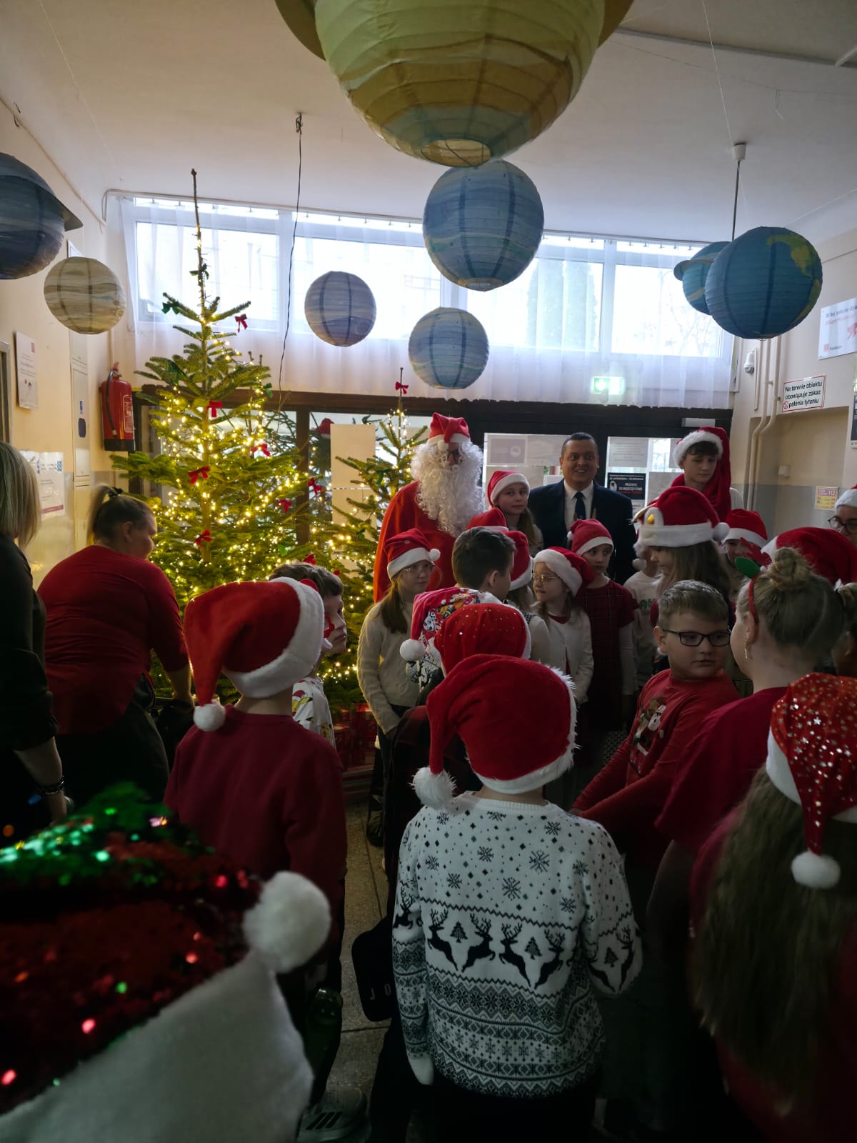 Dzieci z Ukrainy, uczęszczające do oddziału przygotowawczego, po raz pierwszy miały okazję uczestniczyć w szkolnych Mikołajkach. Z radością poznawały polską tradycję tego święta, brały udział w uroczystym zapaleniu lampek choinkowych, a największą atrakcją była wizyta Świętego Mikołaja, który wręczył wszystkim upominki. To był dzień pełen uśmiechów i integracji!