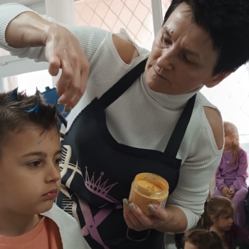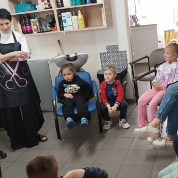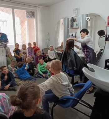 Grupa Motylki w ramach preorienracji zawodowej udały się na wycieczkę do pobliskiego zakładu fryzjerskiego. Przedszkolaki obejrzały z zainteresowaniem wyposażenie salonu oraz znajdujące się tam sprzęty. Nasi podopieczni mieli możliwość obejrzenia z bliska pracy fryzjerki. Dzieci z przyjemnością oddawały się zabiegom. Dużo radości sprawiło dzieciom żelowanie włosów i zaplatanie warkoczyków, kręcenie loków. Serdecznie dziękujemy pracownikom Salonu Fryzjerskiego Pani Krystynie Olszewskiej za wspaniałą lekcję i za zaproszenie. Dzieci z radością wracały do przedszkola obdarowane prezentami.