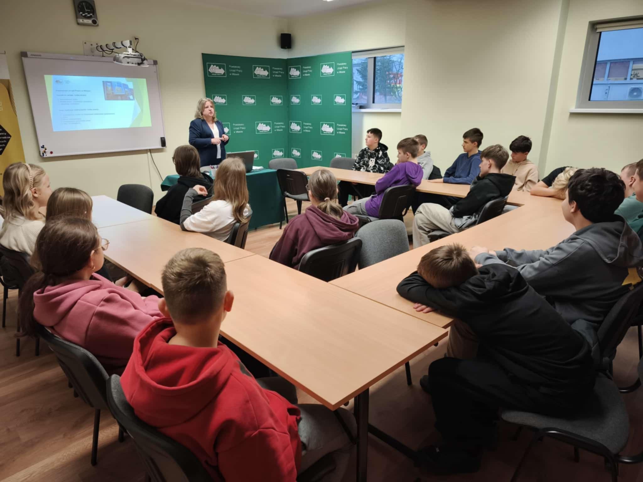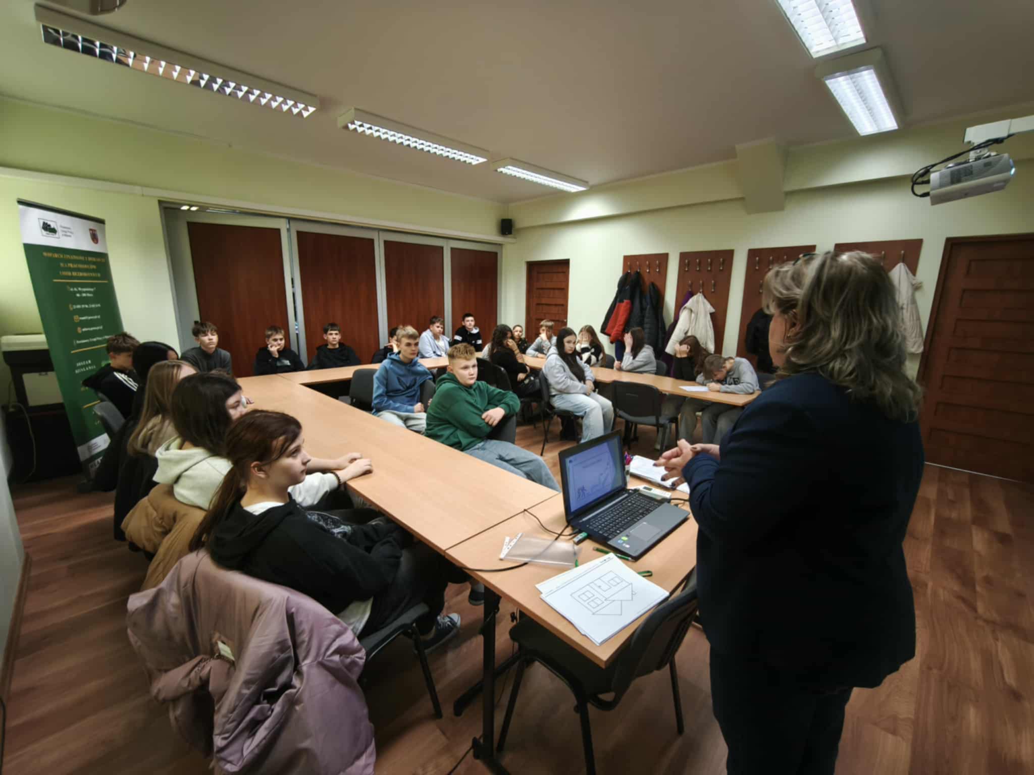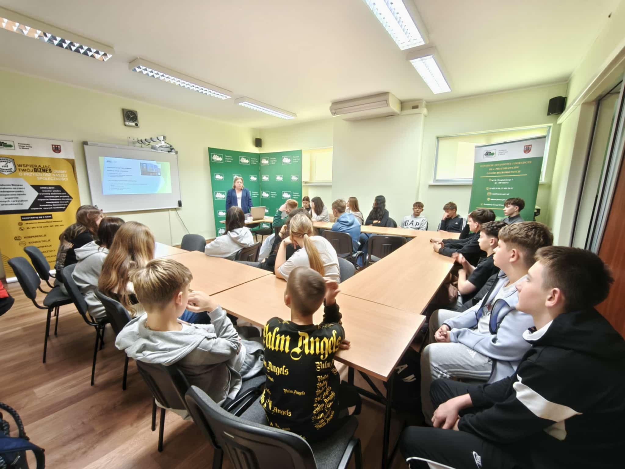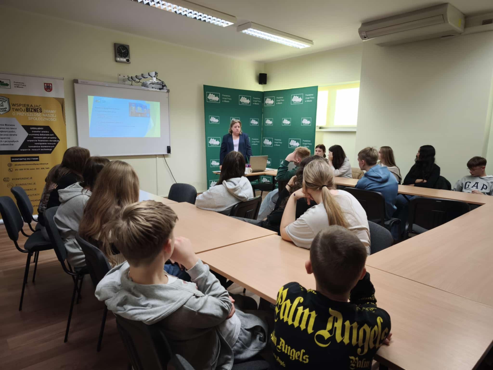 W listopadzie, w ramach lekcji z doradztwa zawodowego, siódmoklasiści odwiedzili Powiatowy Urząd Pracy w Mławie. Uczestniczyli tam w zajęciach, które prowadziła pani Beata Jakubowska, doradca zawodowy. Młodzież poznała kryteria wyboru szkoły ponadpodstawowej i barometr zawodów, czyli jednoroczną prognozę sytuacji w zawodach. Pani Jakubowska omówiła również wykaz zawodów deficytowych i nadwyżkowych zarówno w powiecie mławskim, jak i regionie, a także przedstawiła najczęściej poszukiwane zawody w naszym powiecie.