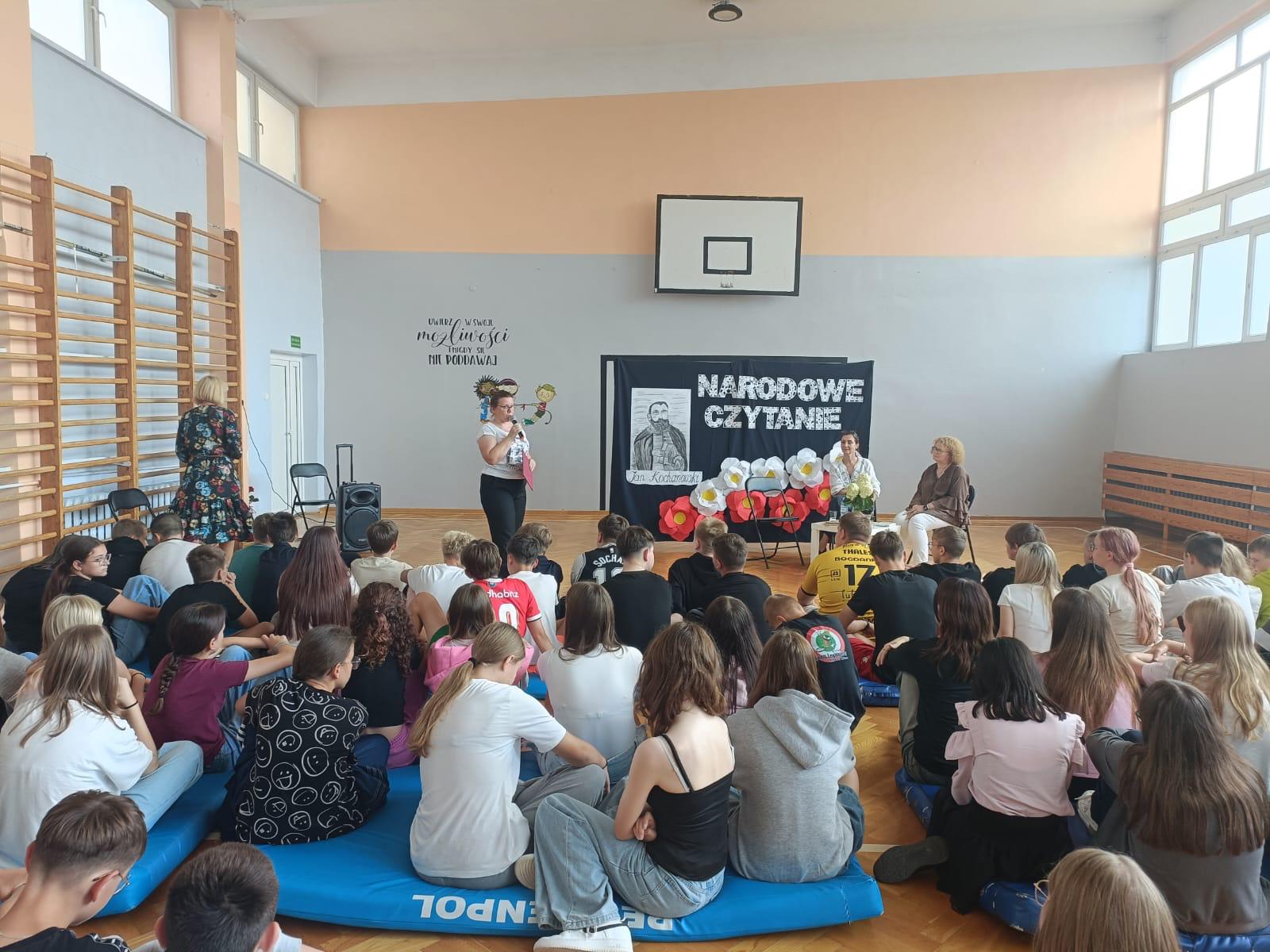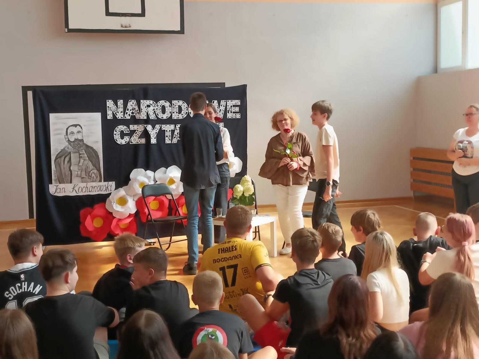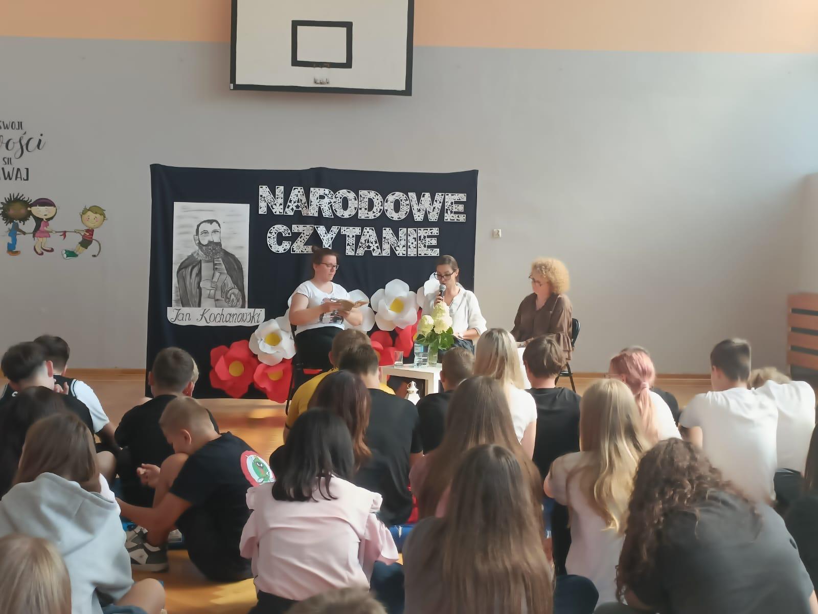 8 września odbyło się w naszej szkole spotkanie uczniów klas VII i VIII z okazji Narodowego Czytania. Tegoroczna edycja akcji była poświęcona dziedzictwu Mistrza z Czarnolasu. Choć Jan Kochanowski żył w XVI w., jego przemyślenia i emocje są bliskie współczesnemu czytelnikowi. Wybrane utwory najwybitniejszego poety polskiego renesansu przeczytały: naczelnik Wydziału Spraw Obywatelskich Urzędu Miasta Mławy Marzena Lipińska, wicedyrektor Beata Gadomska i polonistka Magdalena Godlewska.