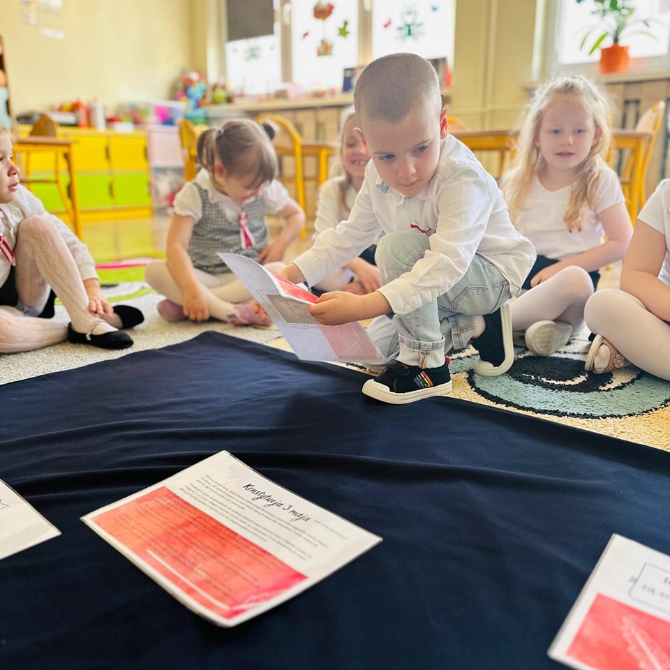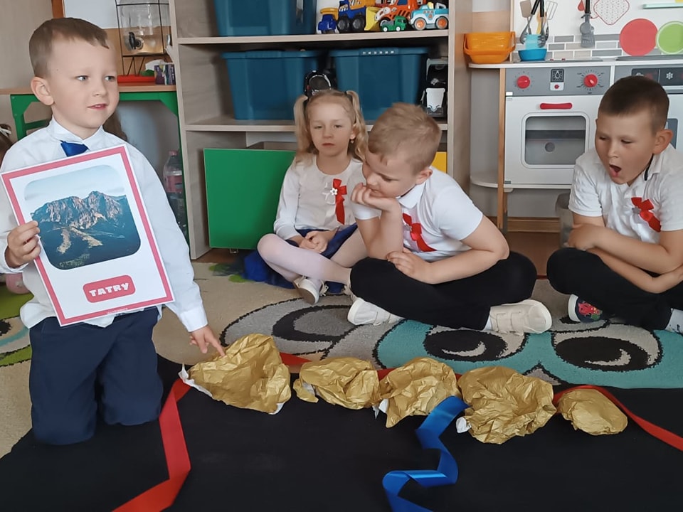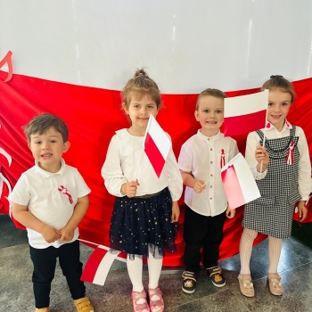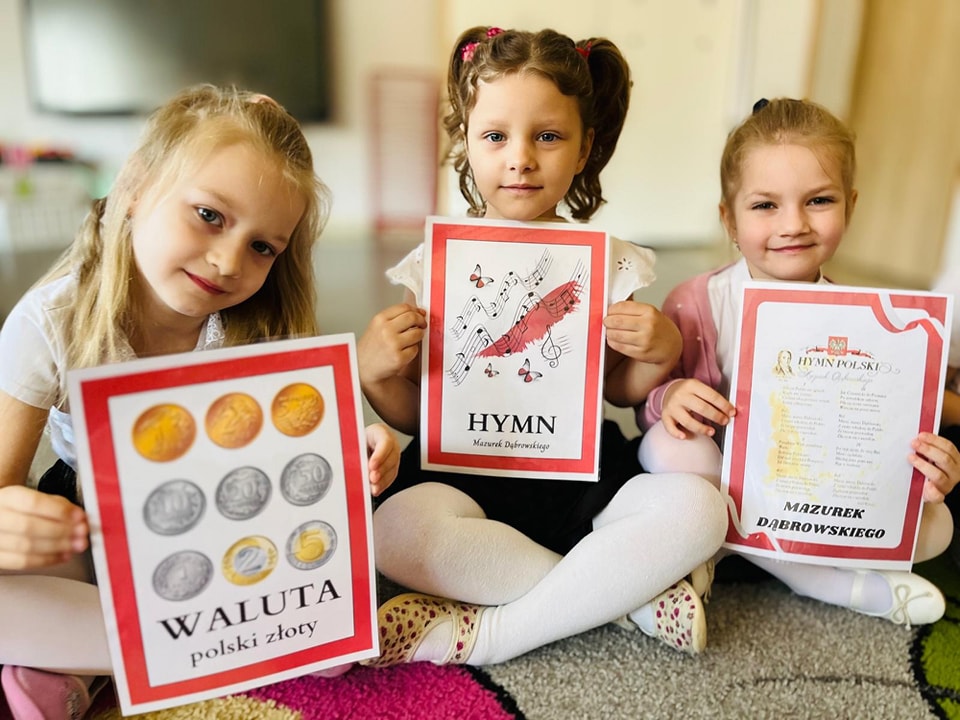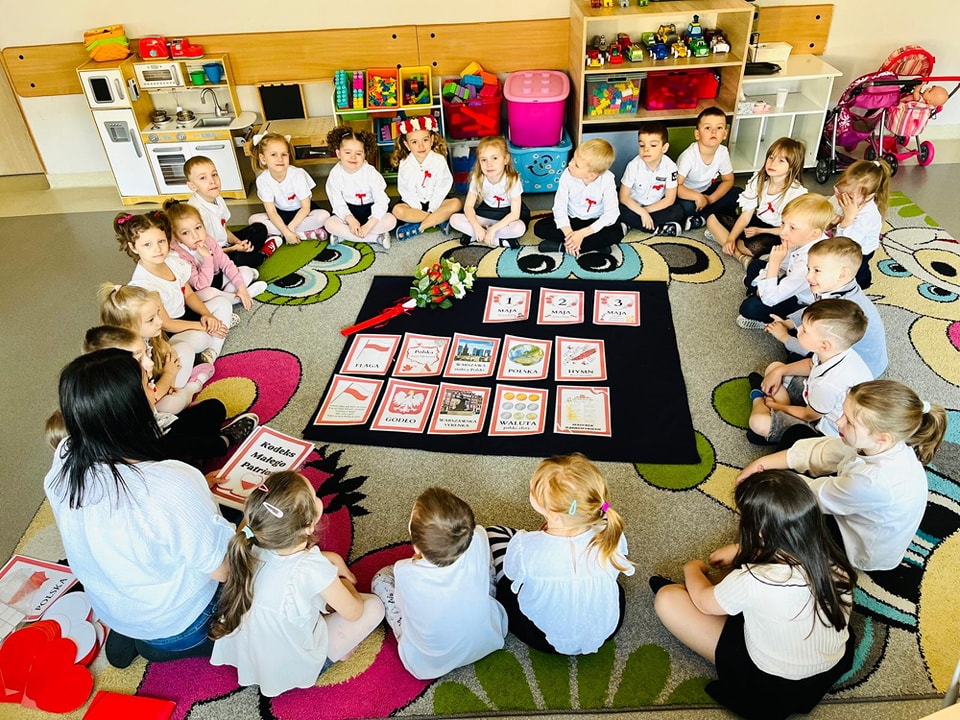 Dzieci z przedszkola przygotowywały się do powitania nowego miesiąca i świętowania świąt z nim związanych. Przypomnieli wspólnie, że 1 maja obchodzimy Święto Pracy, 2 maja – Dzień Flagi a 3 maja – święto uchwalenia Konstytucji 3 Maja. Podczas zajęć przedszkolaki poznały symbole narodowe: godło, flagę i hymn. Palcem po mapie podróżowali odwiedzając najciekawsze zakątki Polski. Nasz korytarz ozdabiają piękne godła i flagi wykonane przez dzieci. Pamiętajmy, jak to ważne, aby od najmłodszych lat zarażać dzieci miłością do ojczyzny.