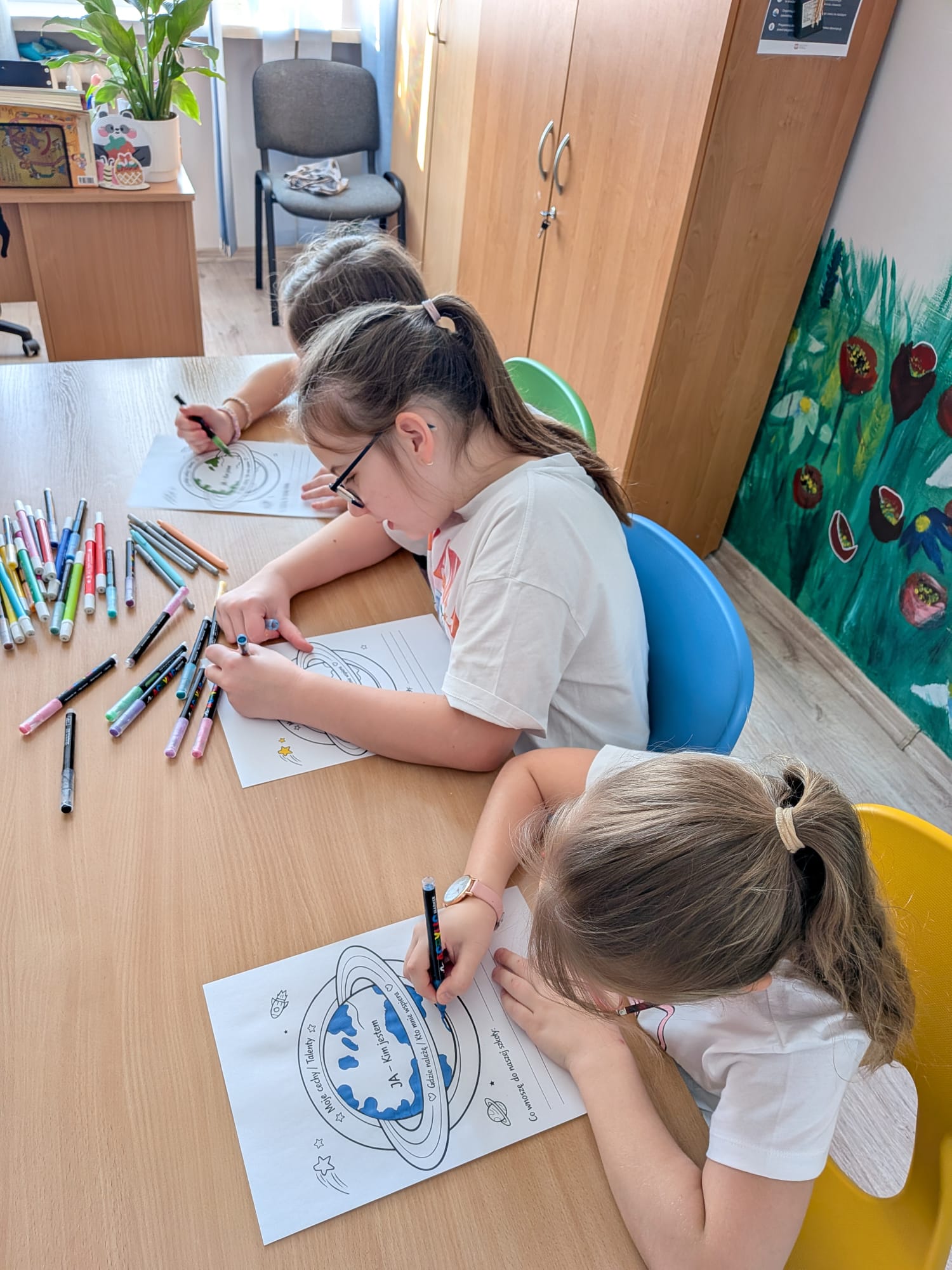 Podczas indywidualnych zajęć uczniowie tworzyli swoje symboliczne „planety”. Rozmawialiśmy o tym, kim jesteśmy, gdzie czujemy przynależność i jakie osoby są dla nas inspiracją.