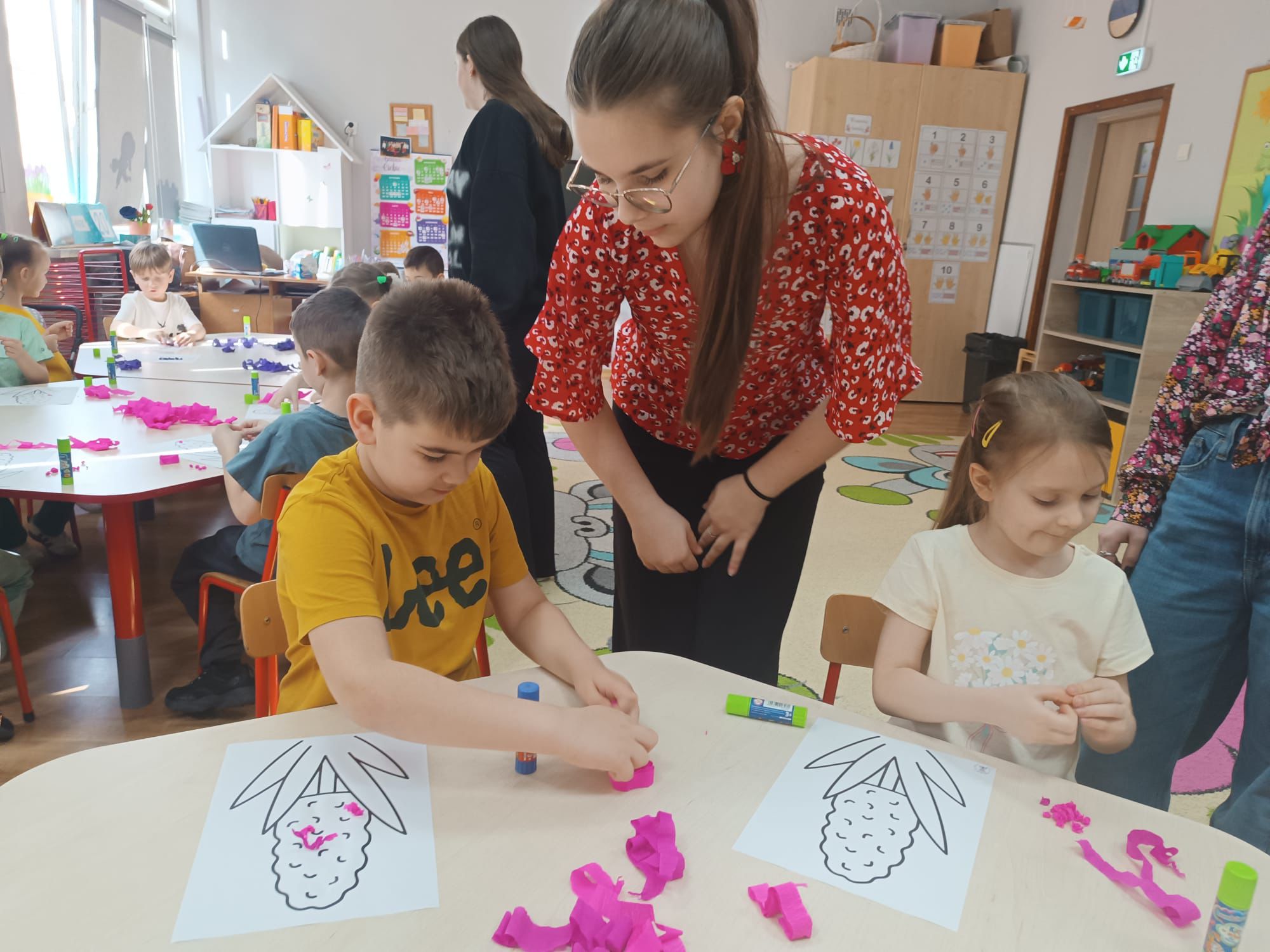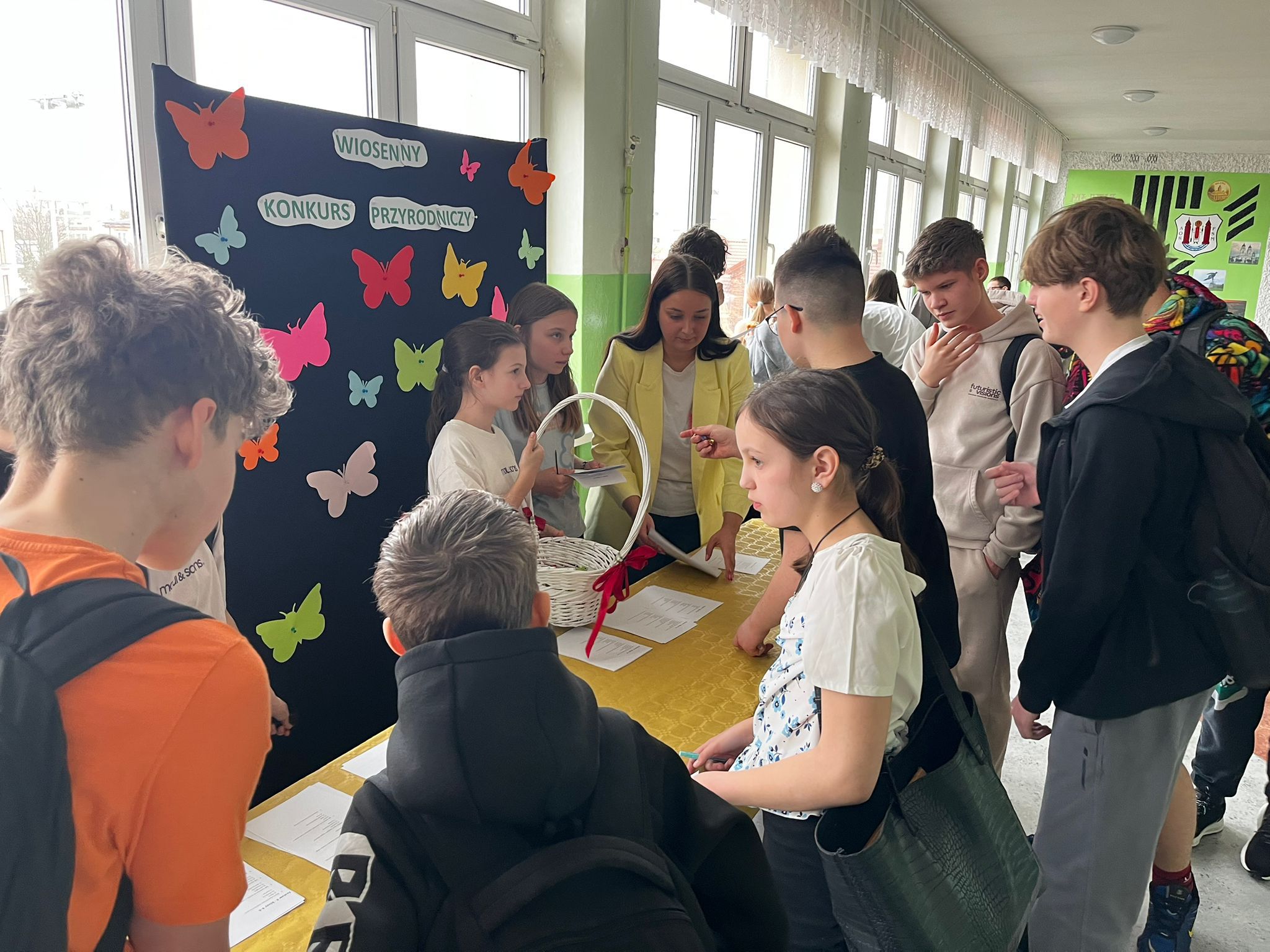 Na przerwach odbywał się wiosenny konkurs wiedzy przyrodniczej, który dostarczył wielu emocji i świetnej zabawy. Szkolne korytarze rozkwitły kolorami - dominowały wiosenne stroje, pełne barw i radosnych wzorów.
