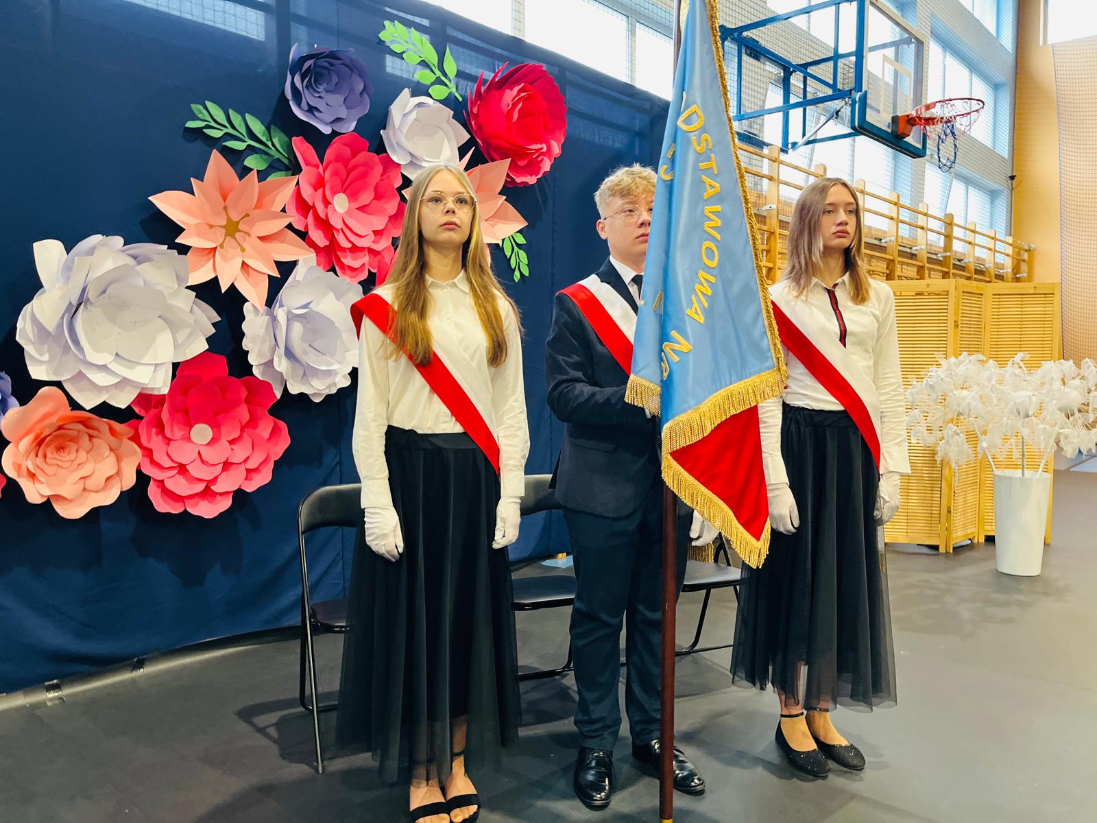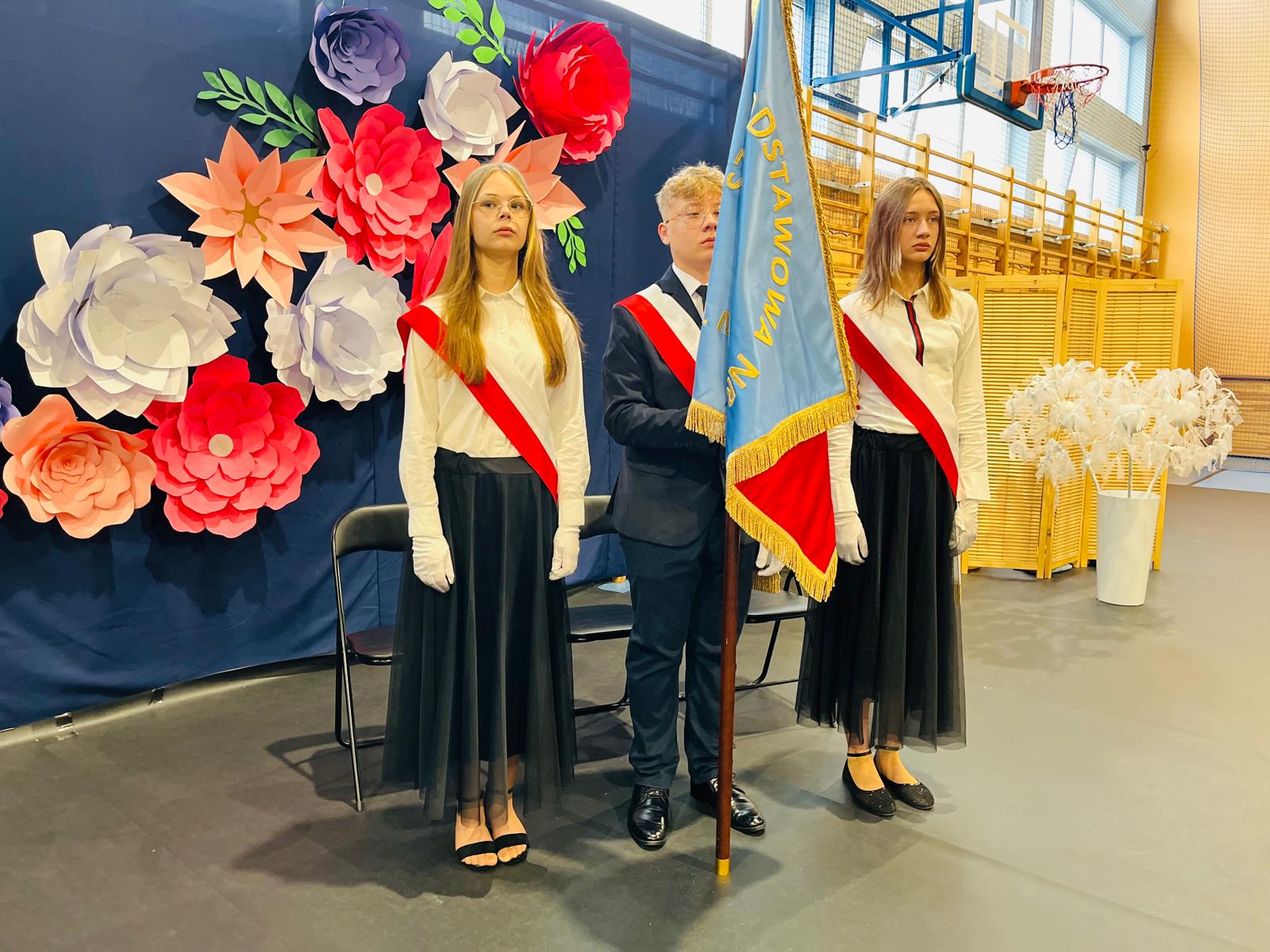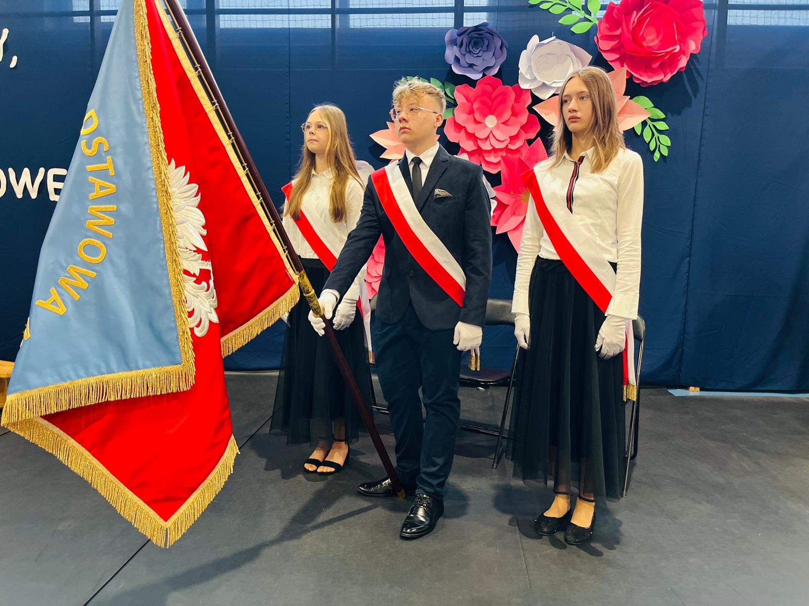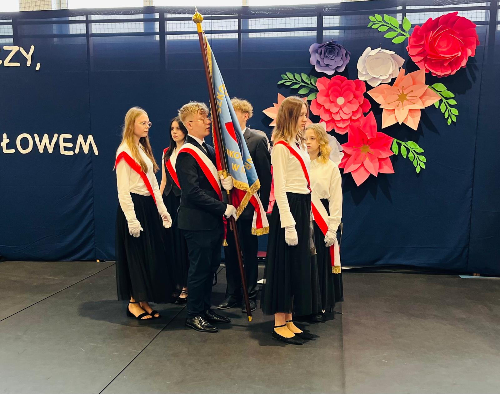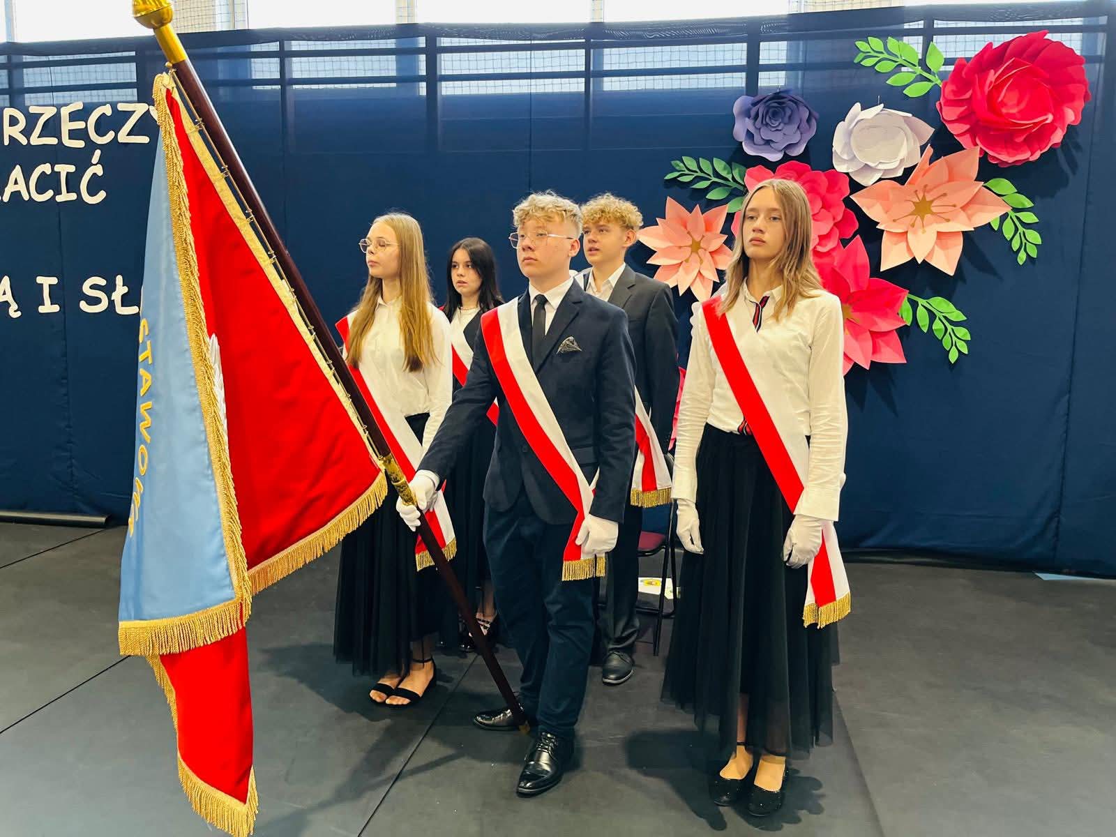 Szczególne podziękowania kierujemy do uczniów reprezentujących poczet sztandarowy, którzy przez ostatnie lata godnie reprezentowali naszą szkołę podczas ważnych uroczystości i wydarzeń. Ich postawa, zaangażowanie i szacunek dla tradycji były wzorem dla młodszych koleżanek i kolegów.