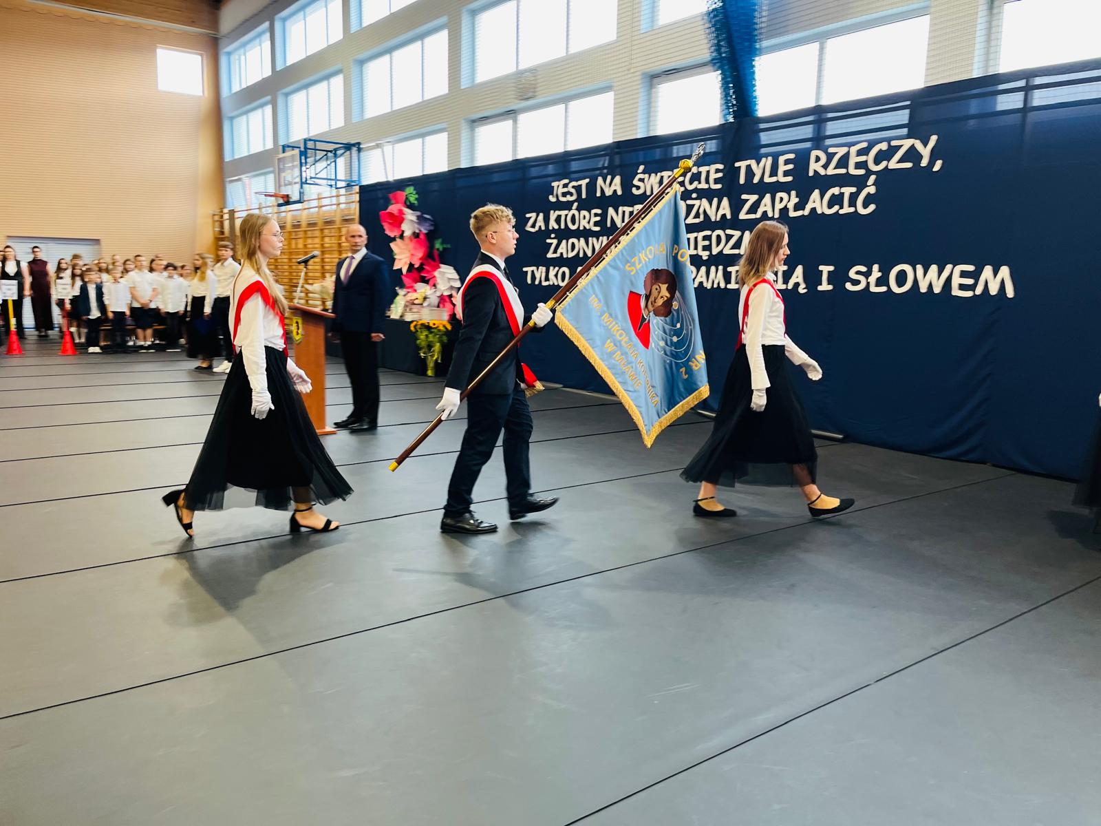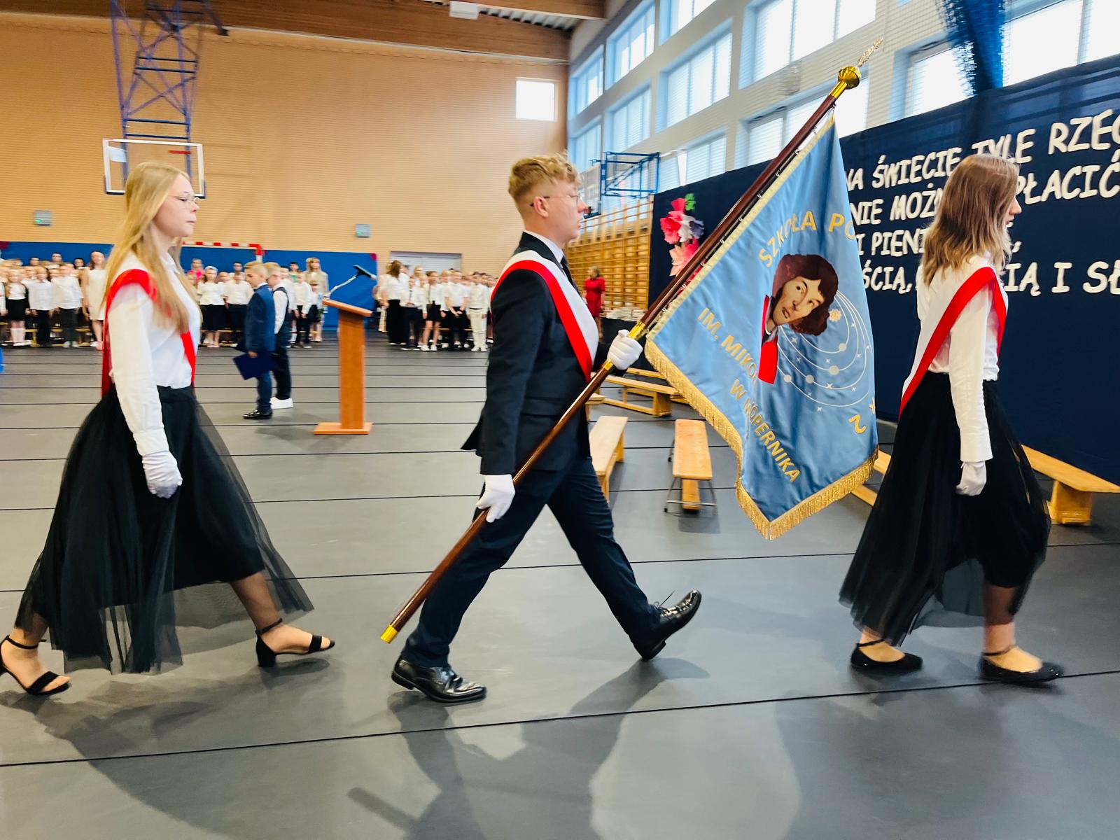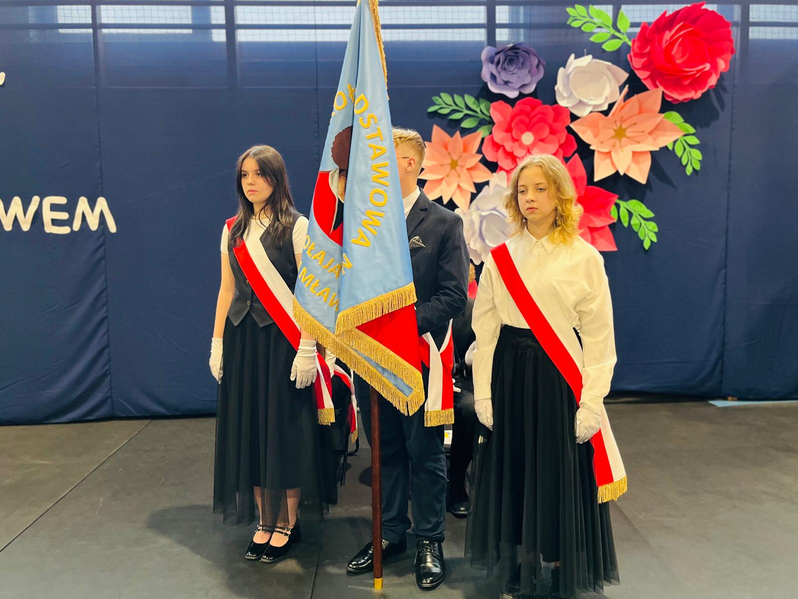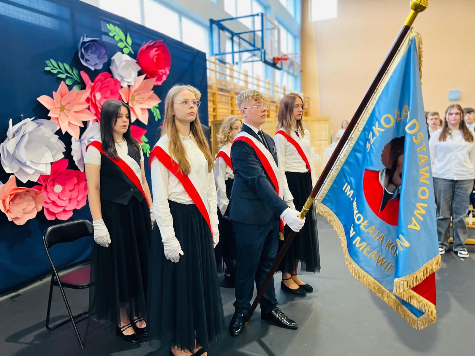 Szczególne podziękowania kierujemy do uczniów reprezentujących poczet sztandarowy, którzy przez ostatnie lata godnie reprezentowali naszą szkołę podczas ważnych uroczystości i wydarzeń. Ich postawa, zaangażowanie i szacunek dla tradycji były wzorem dla młodszych koleżanek i kolegów.