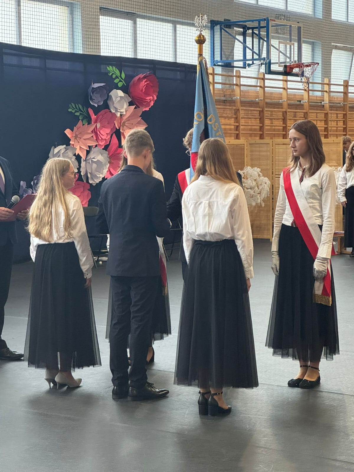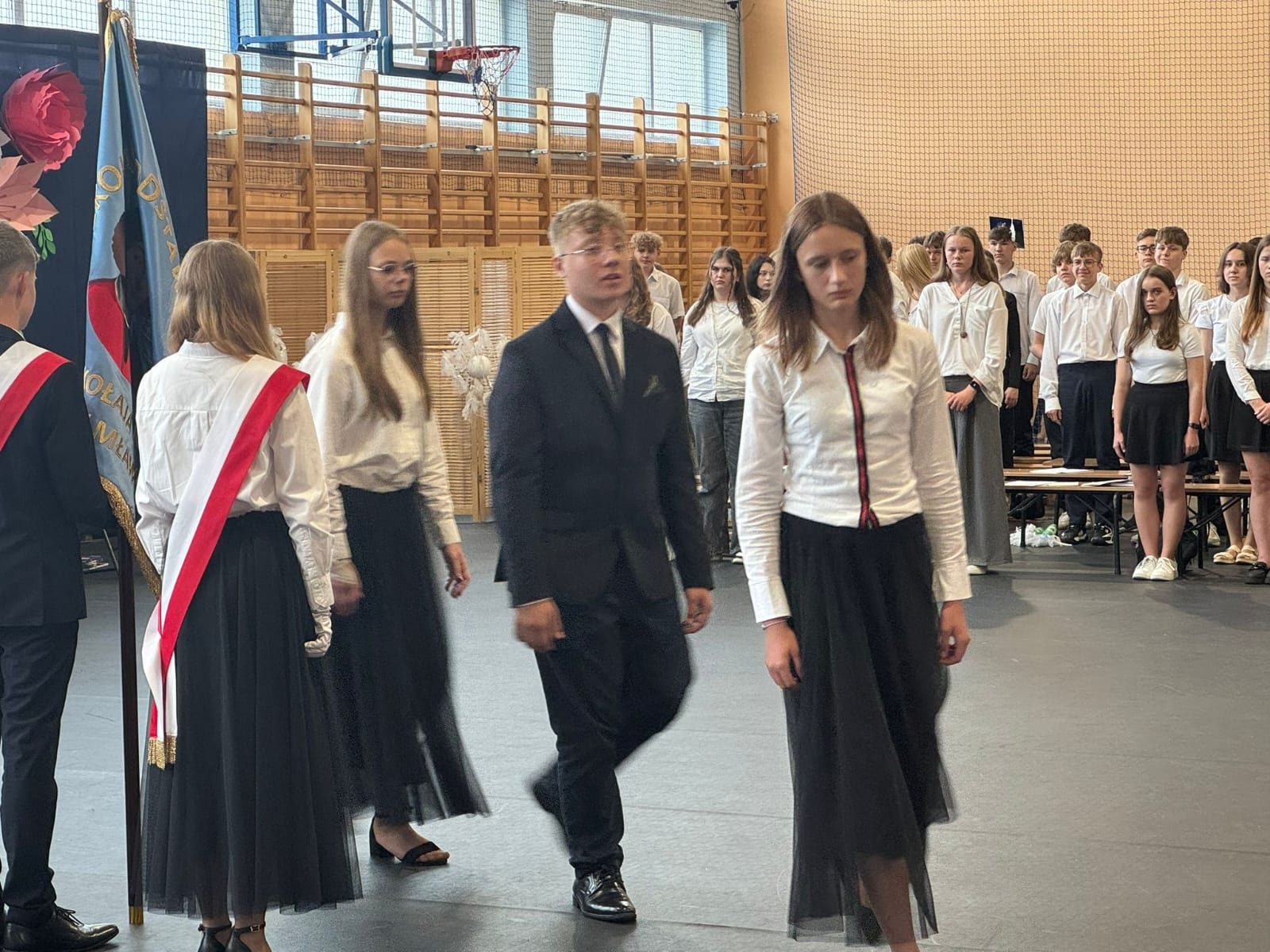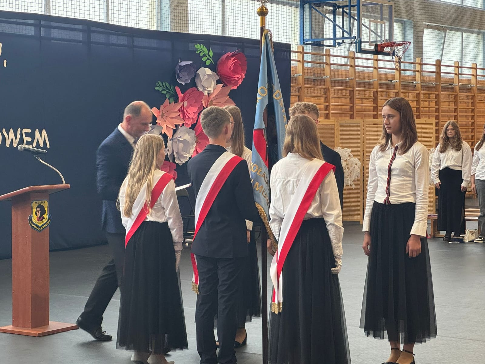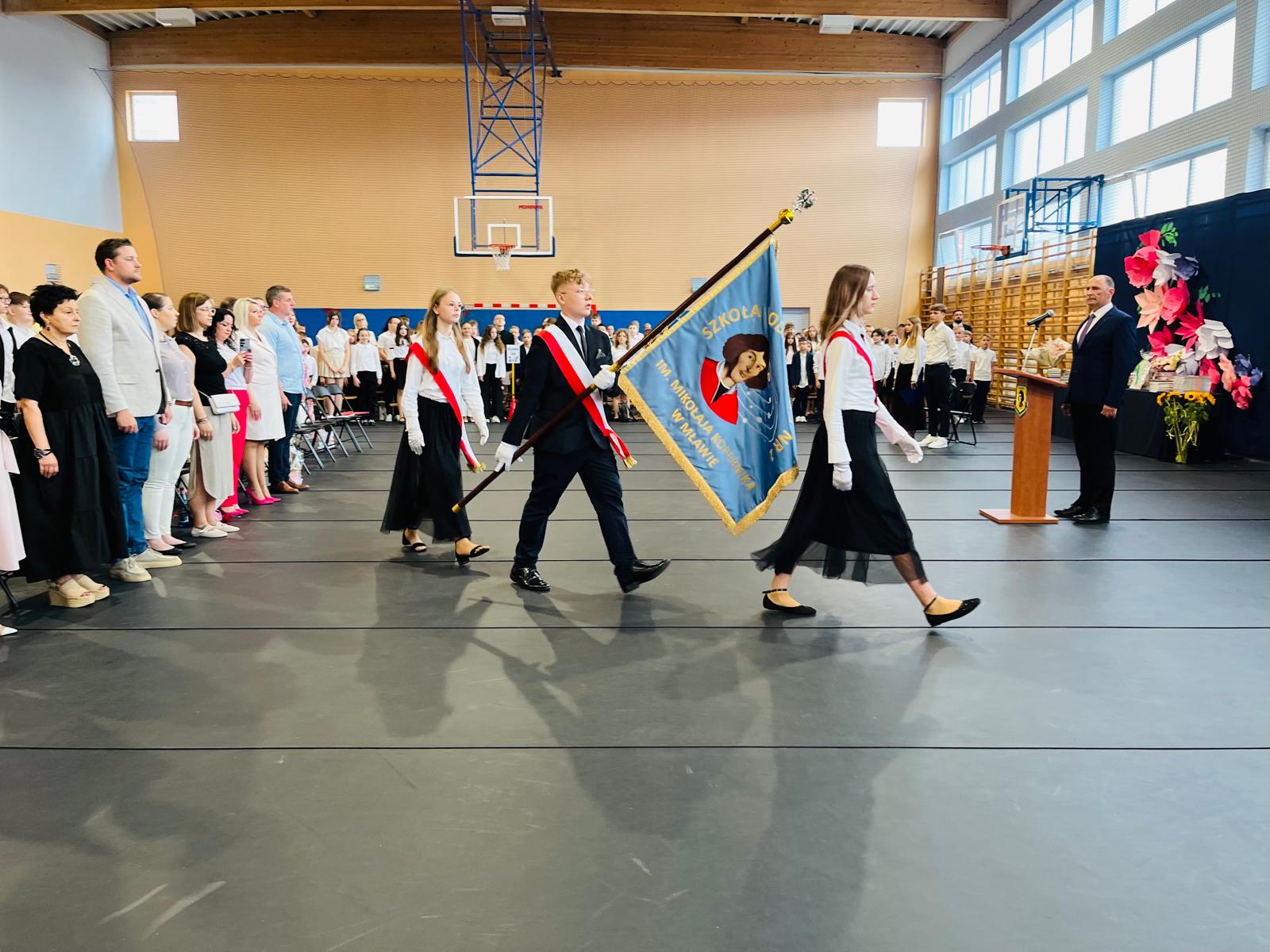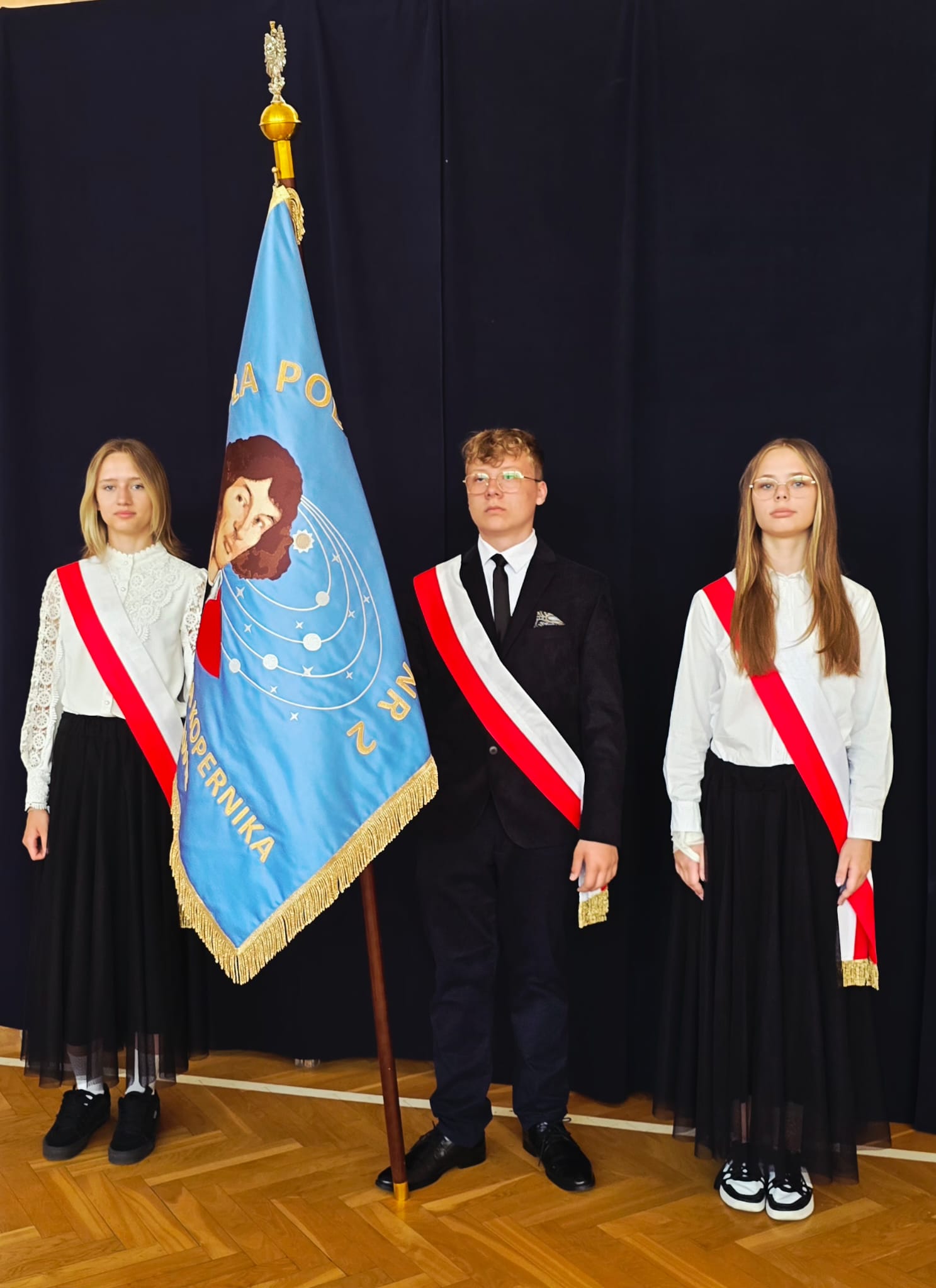 Szczególne podziękowania kierujemy do uczniów reprezentujących poczet sztandarowy, którzy przez ostatnie lata godnie reprezentowali naszą szkołę podczas ważnych uroczystości i wydarzeń. Ich postawa, zaangażowanie i szacunek dla tradycji były wzorem dla młodszych koleżanek i kolegów.
