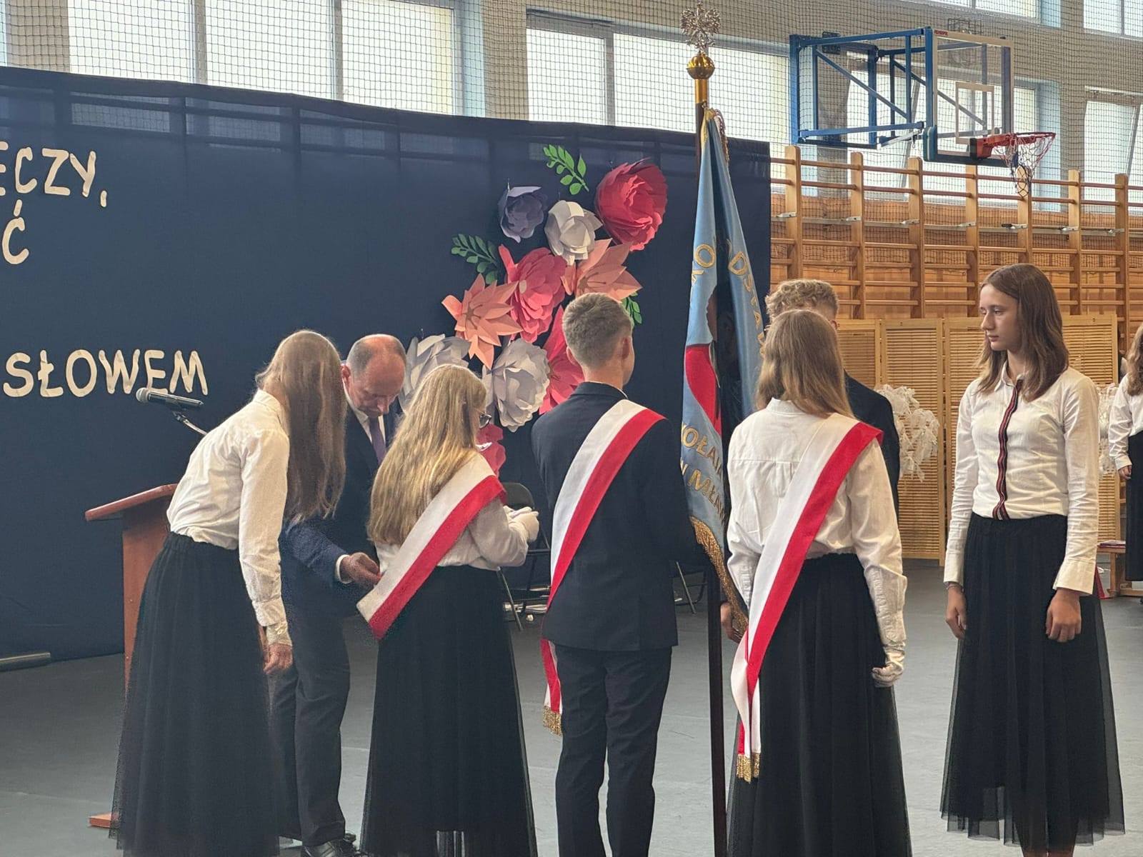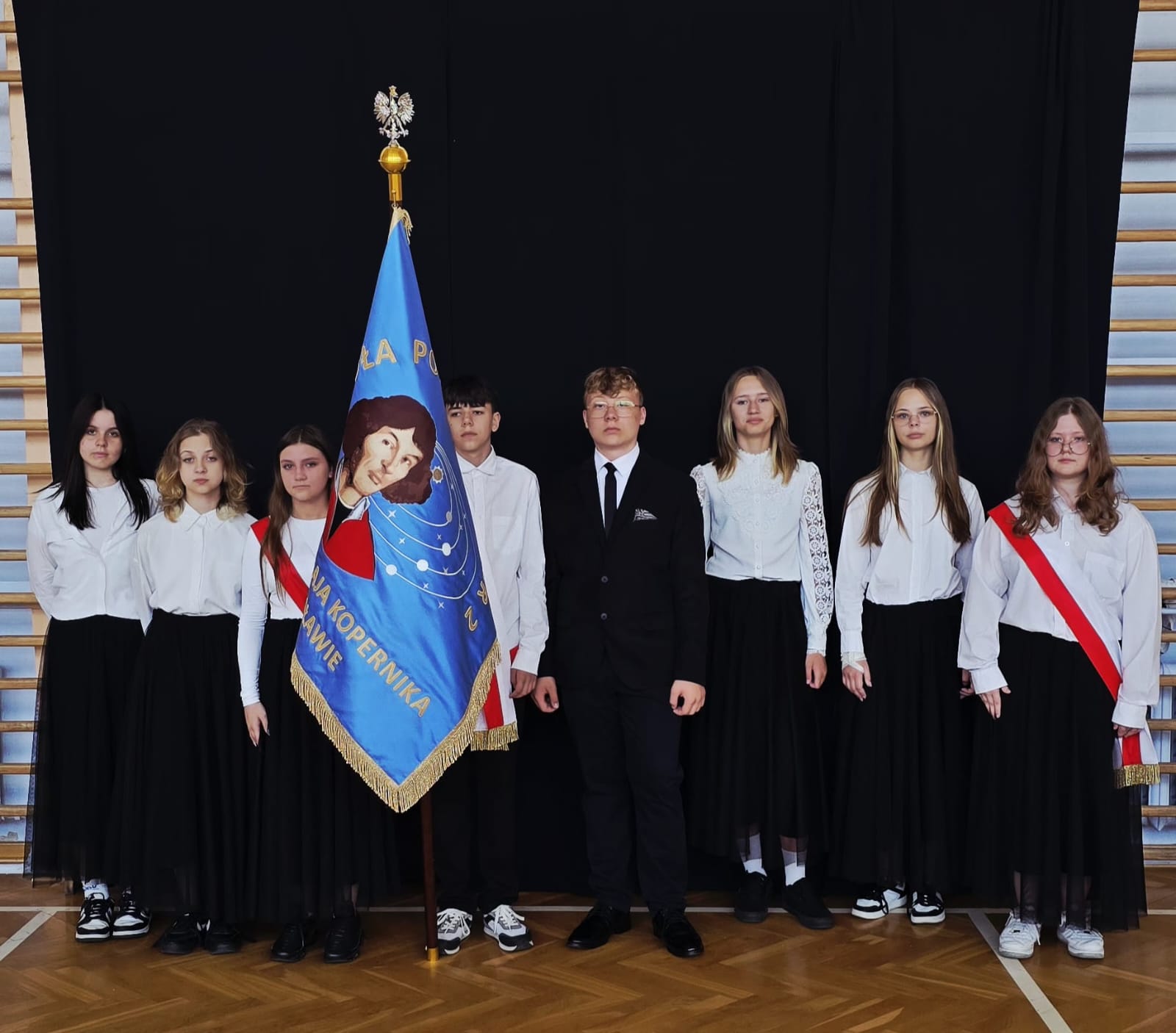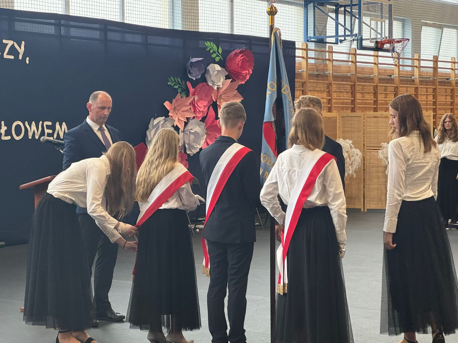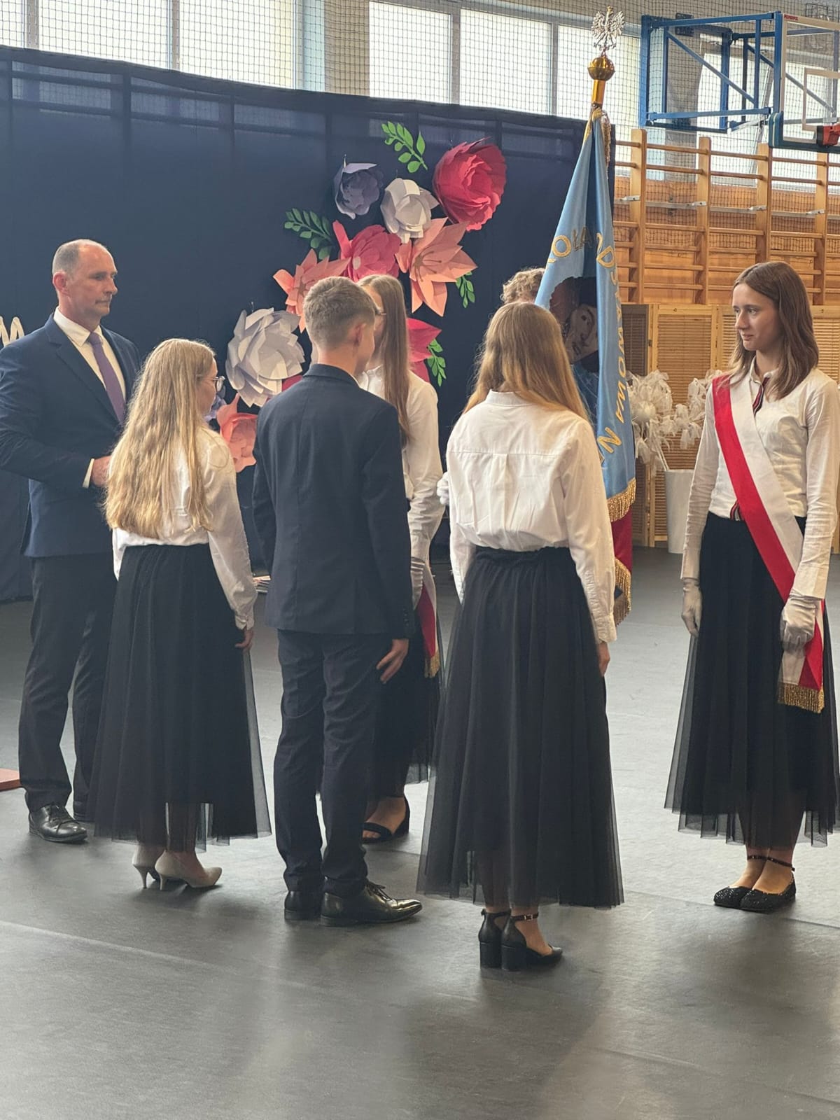 Szczególne podziękowania kierujemy do uczniów reprezentujących poczet sztandarowy, którzy przez ostatnie lata godnie reprezentowali naszą szkołę podczas ważnych uroczystości i wydarzeń. Ich postawa, zaangażowanie i szacunek dla tradycji były wzorem dla młodszych koleżanek i kolegów.