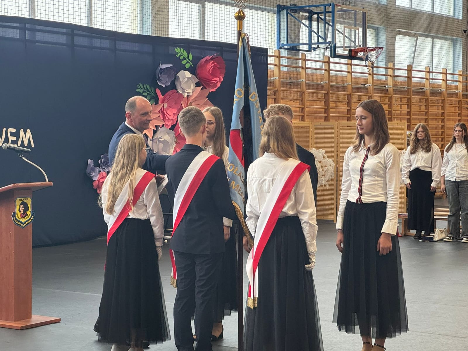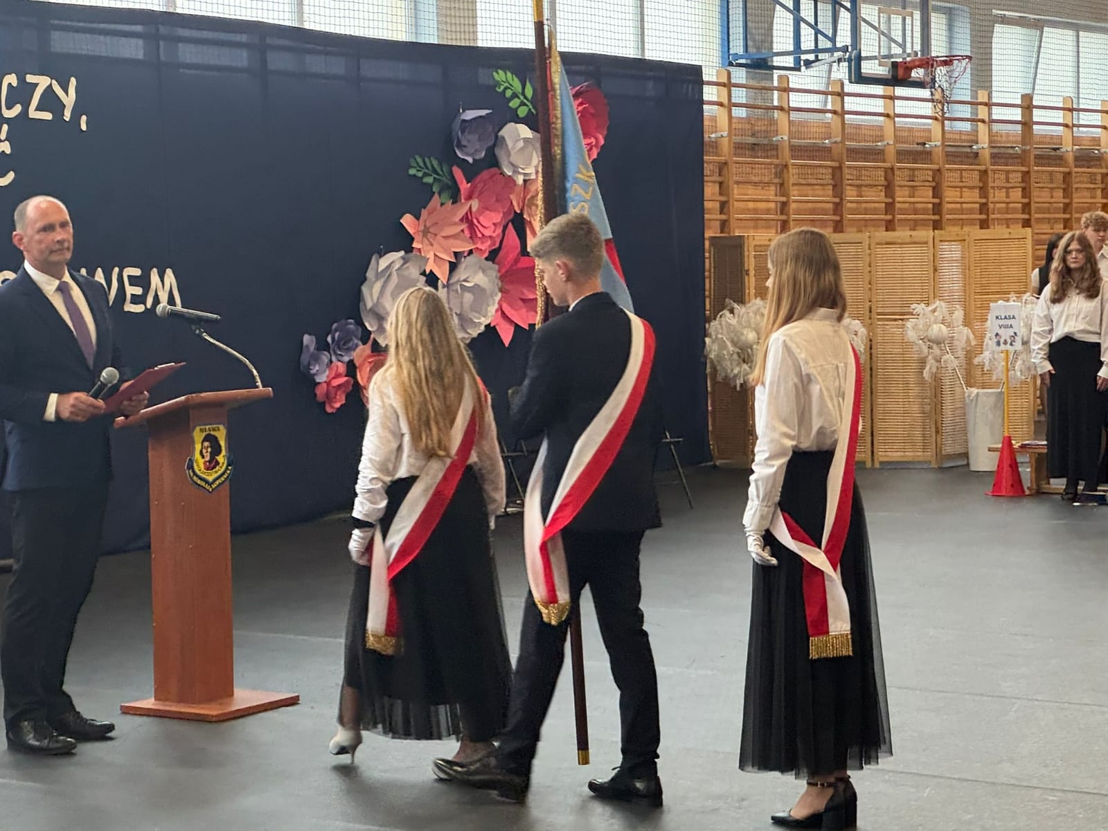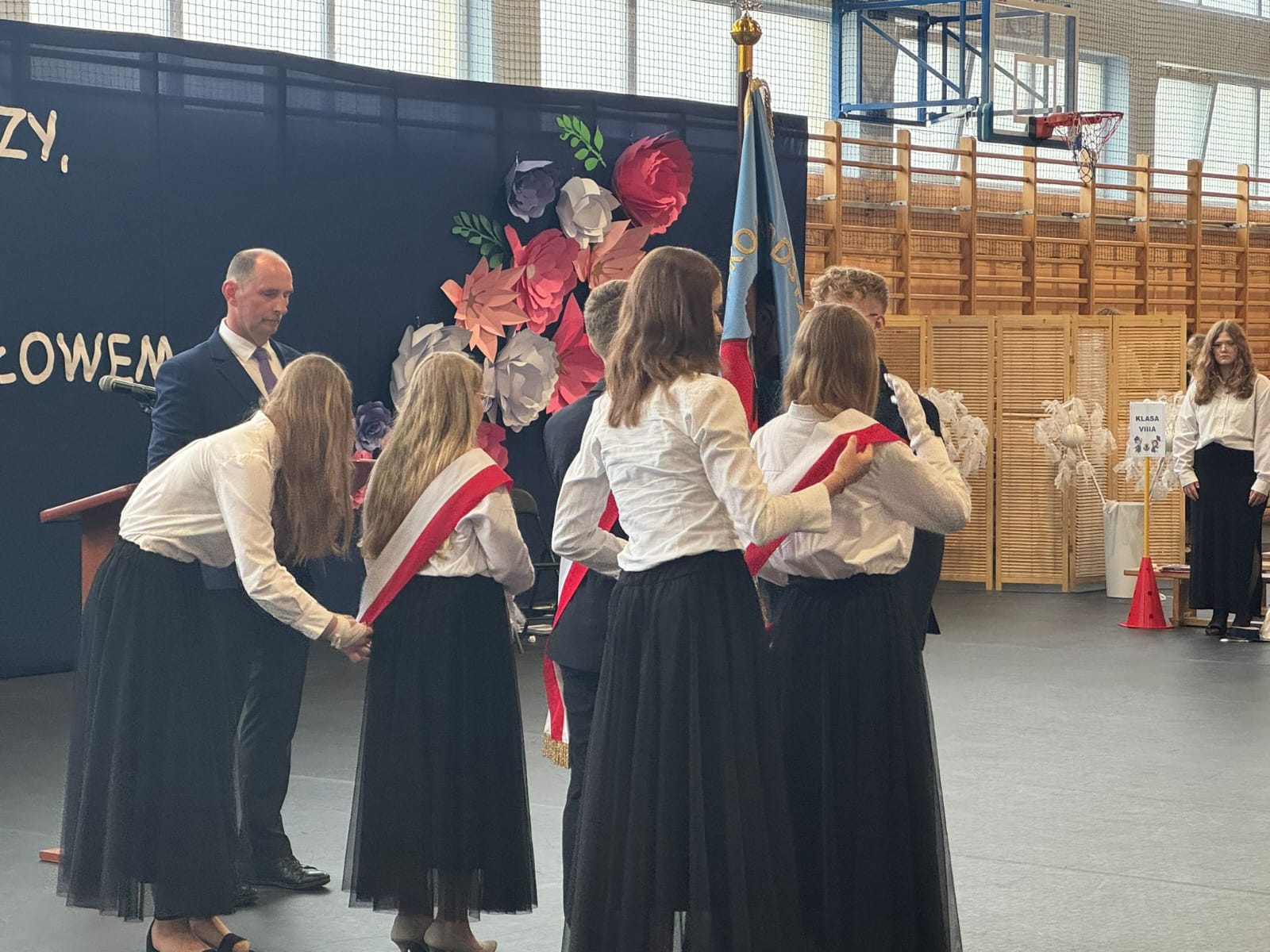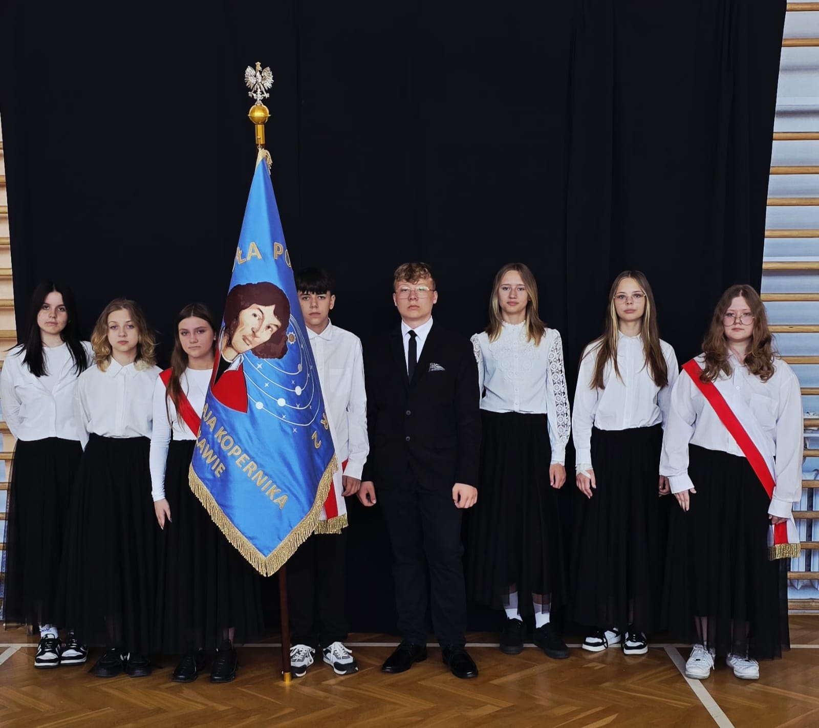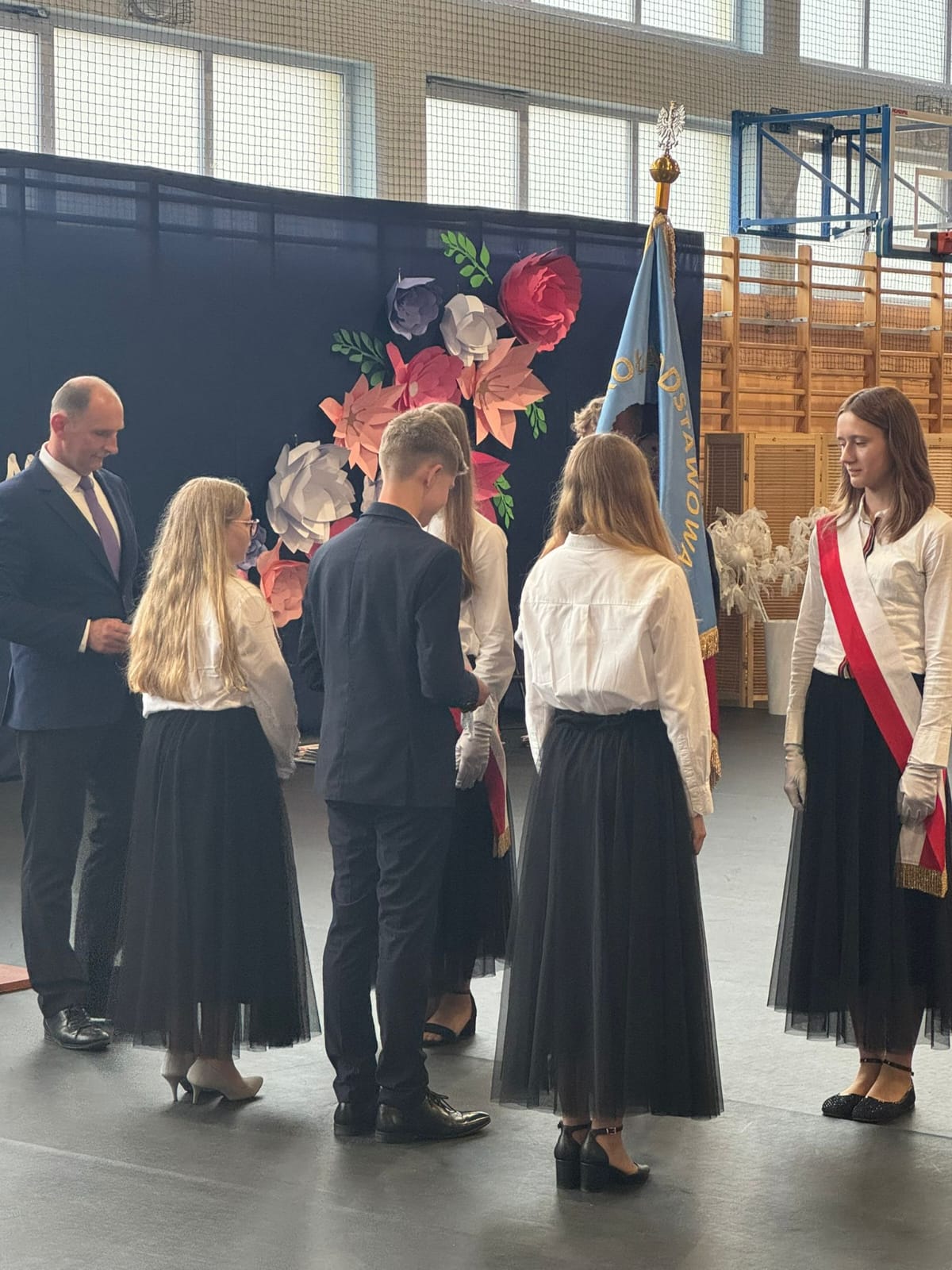 Szczególne podziękowania kierujemy do uczniów reprezentujących poczet sztandarowy, którzy przez ostatnie lata godnie reprezentowali naszą szkołę podczas ważnych uroczystości i wydarzeń. Ich postawa, zaangażowanie i szacunek dla tradycji były wzorem dla młodszych koleżanek i kolegów.