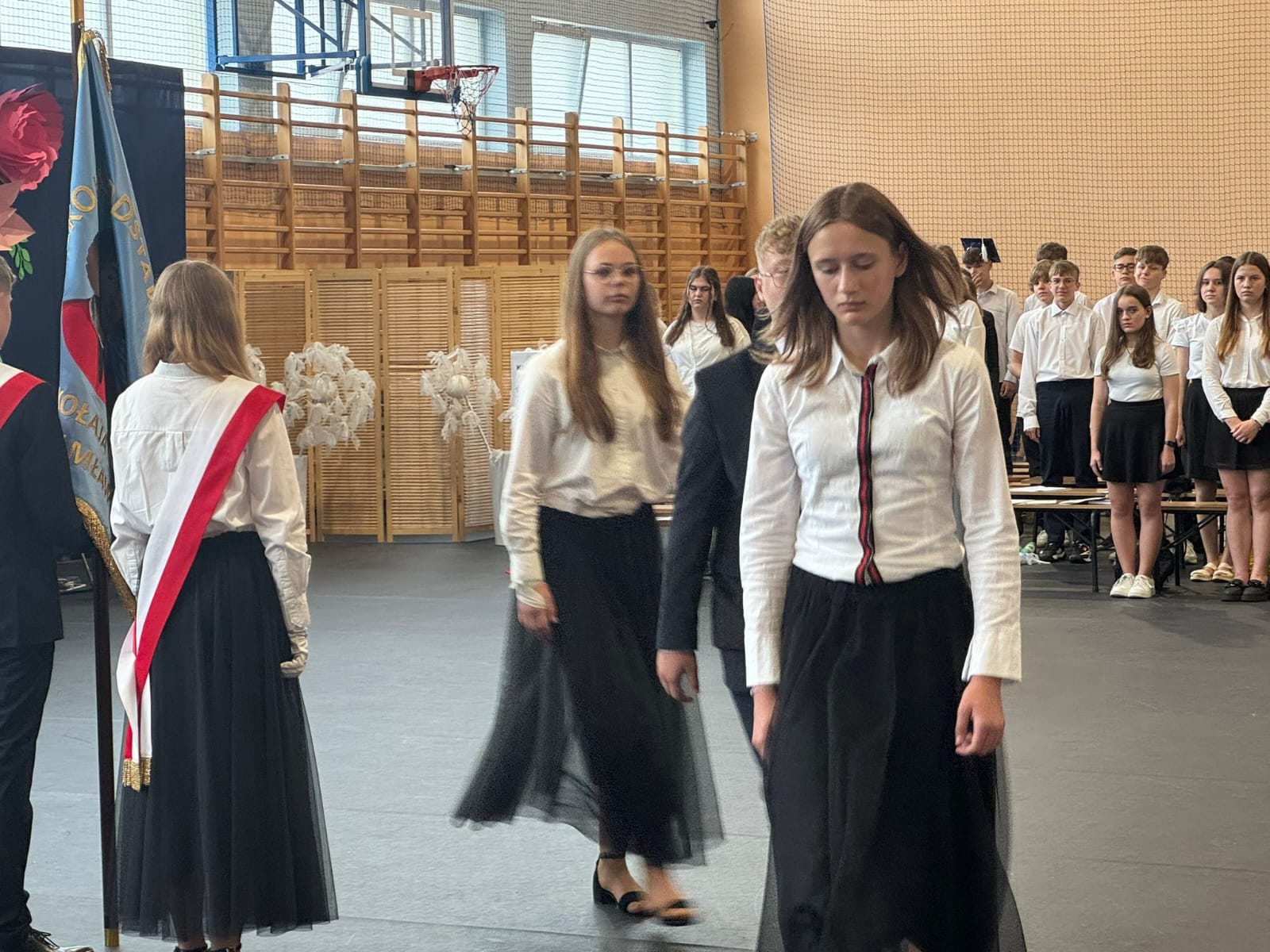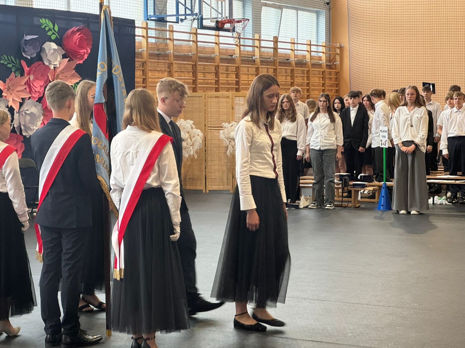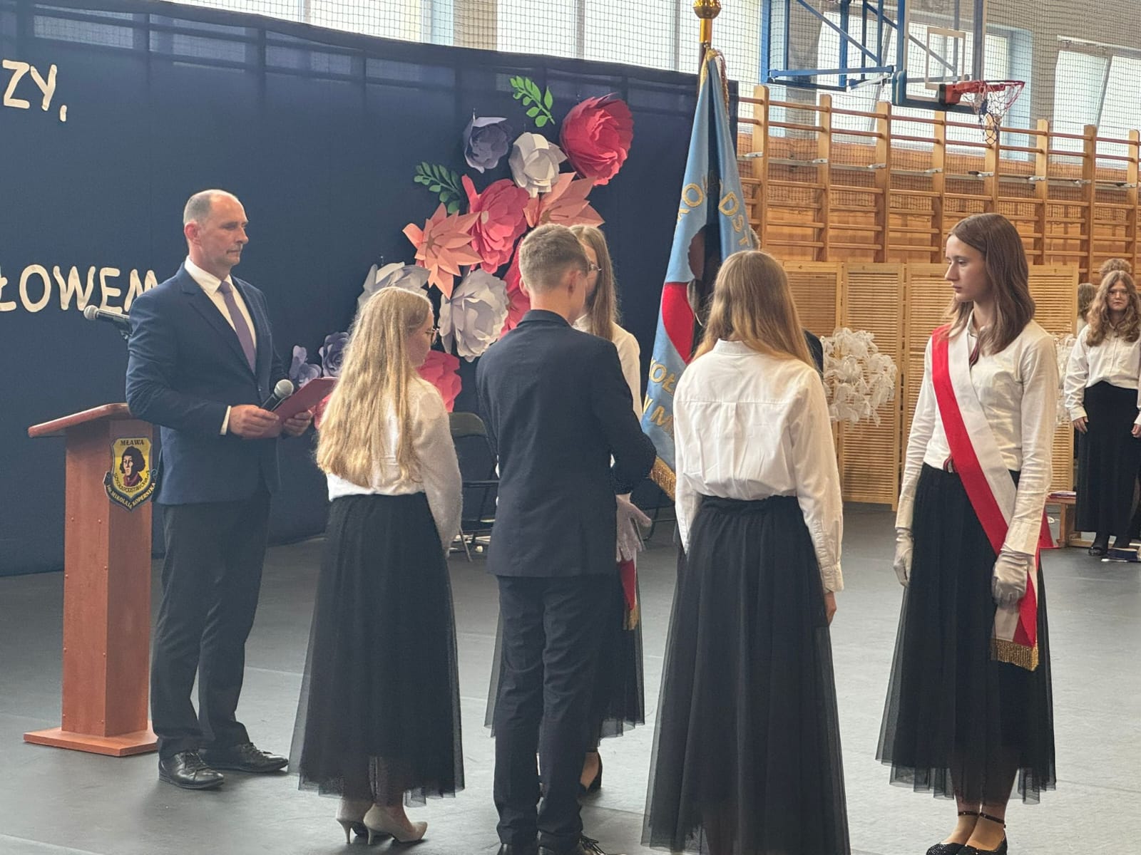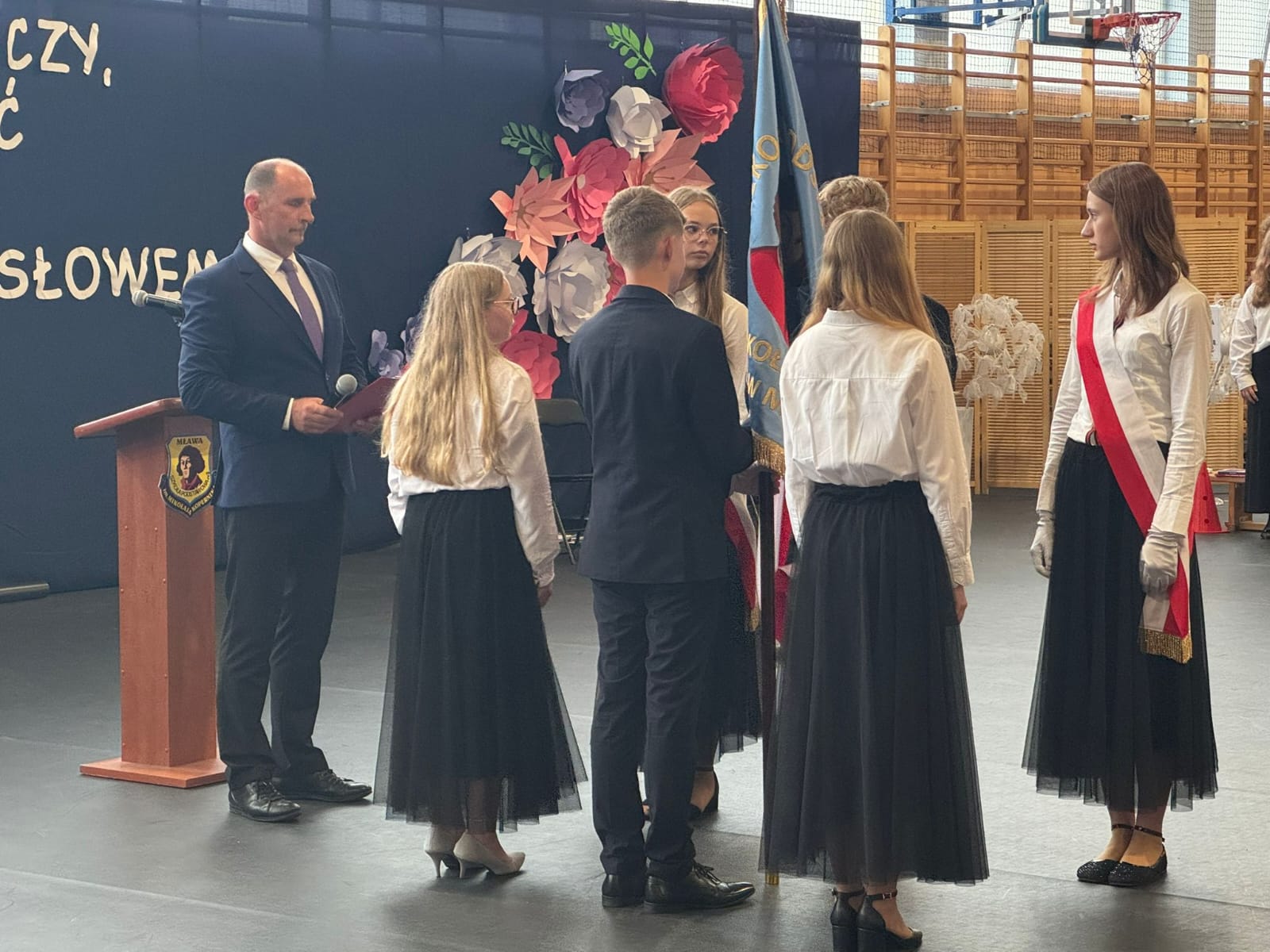 Szczególne podziękowania kierujemy do uczniów reprezentujących poczet sztandarowy, którzy przez ostatnie lata godnie reprezentowali naszą szkołę podczas ważnych uroczystości i wydarzeń. Ich postawa, zaangażowanie i szacunek dla tradycji były wzorem dla młodszych koleżanek i kolegów.