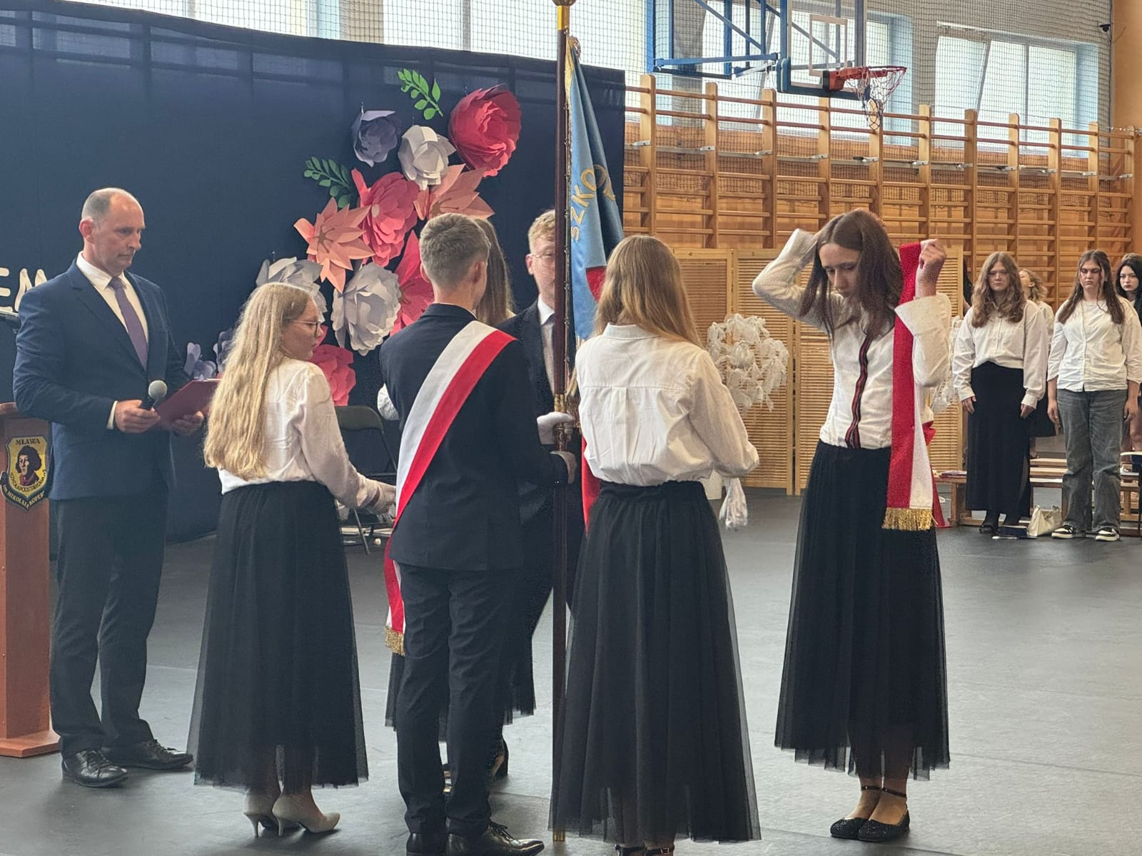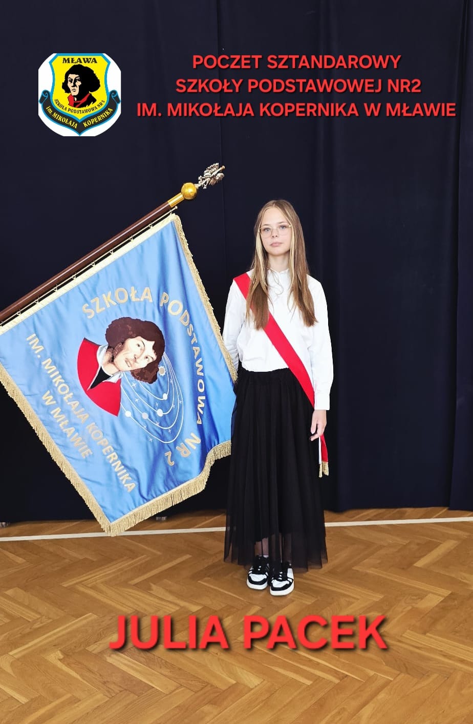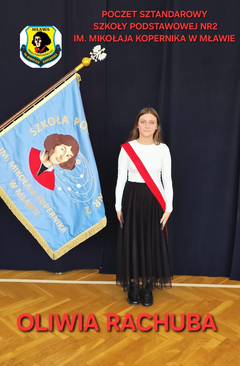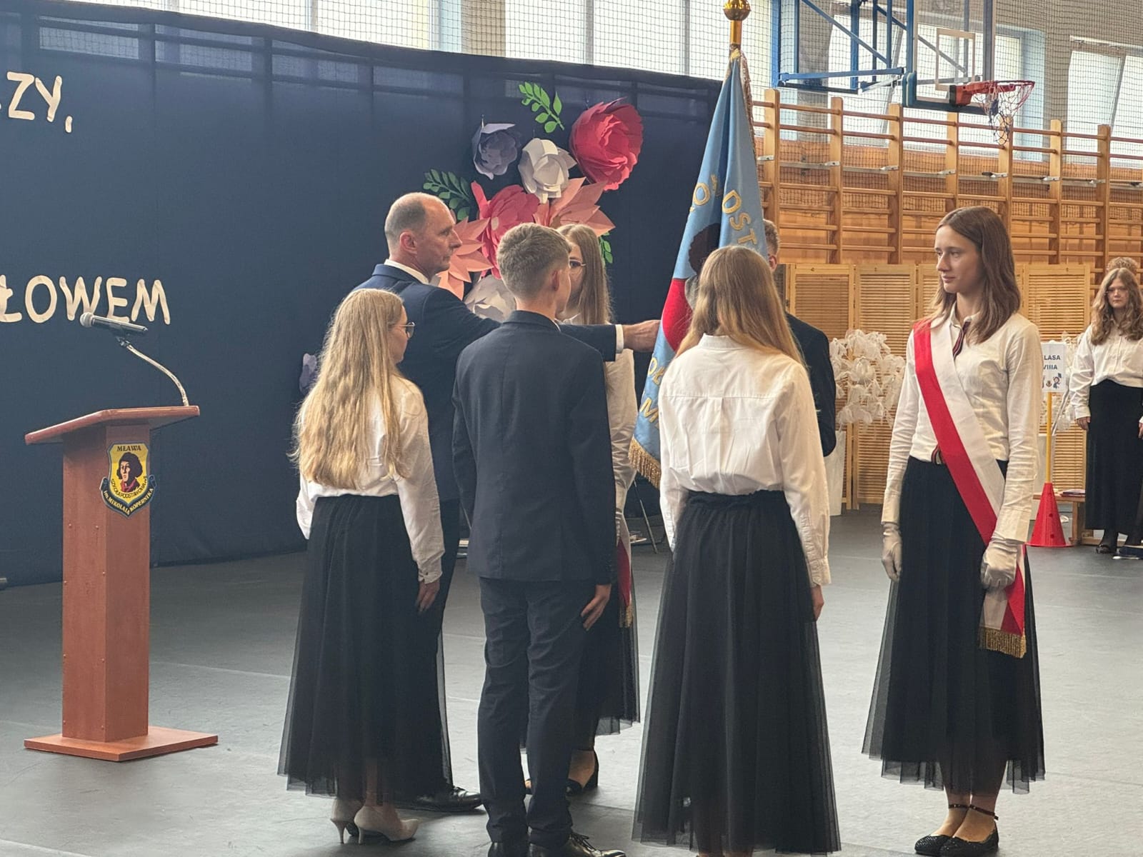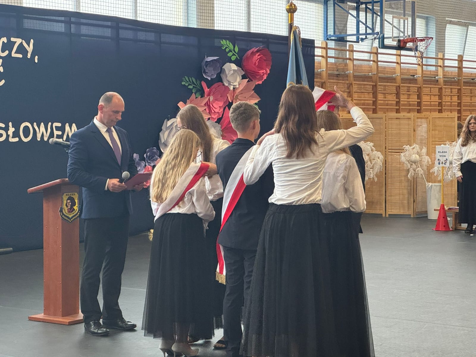 Szczególne podziękowania kierujemy do uczniów reprezentujących poczet sztandarowy, którzy przez ostatnie lata godnie reprezentowali naszą szkołę podczas ważnych uroczystości i wydarzeń. Ich postawa, zaangażowanie i szacunek dla tradycji były wzorem dla młodszych koleżanek i kolegów.