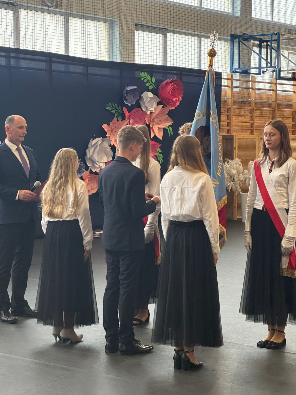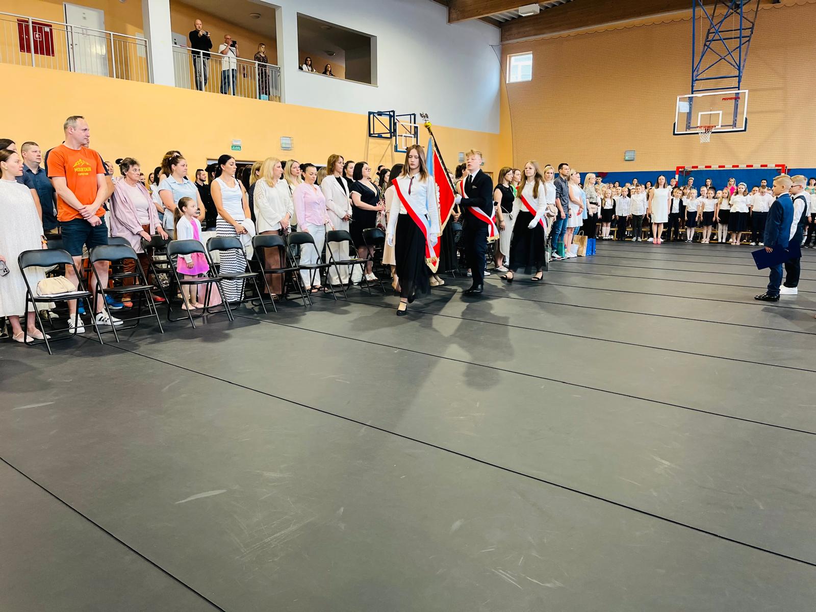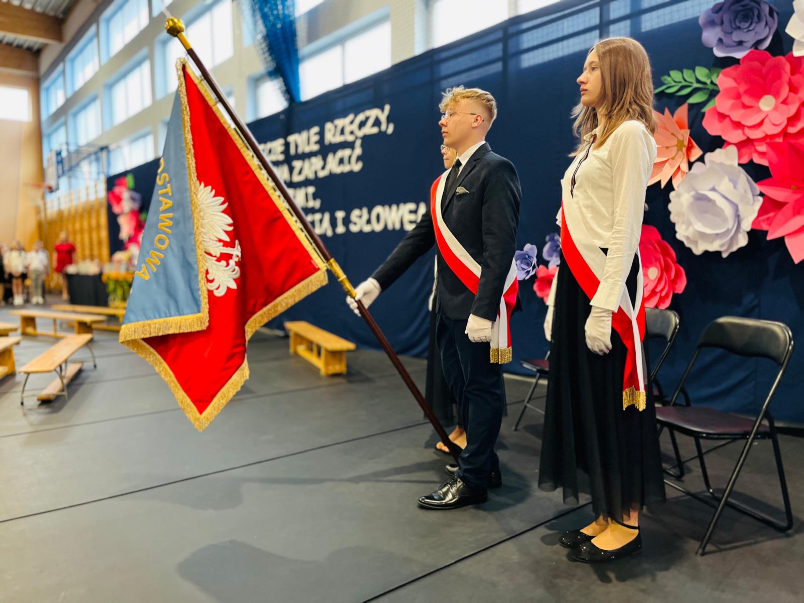 Podczas uroczystości zakończenia roku szkolnego miało miejsce uroczyste przekazanie sztandaru uczniom młodszych klas. To symboliczny, ale bardzo ważny moment, w którym starsi uczniowie przekazują odpowiedzialność i honor reprezentowania szkoły kolejnemu pokoleniu. Dziękujemy za piękne świadectwo dojrzałości i wzorową postawę.