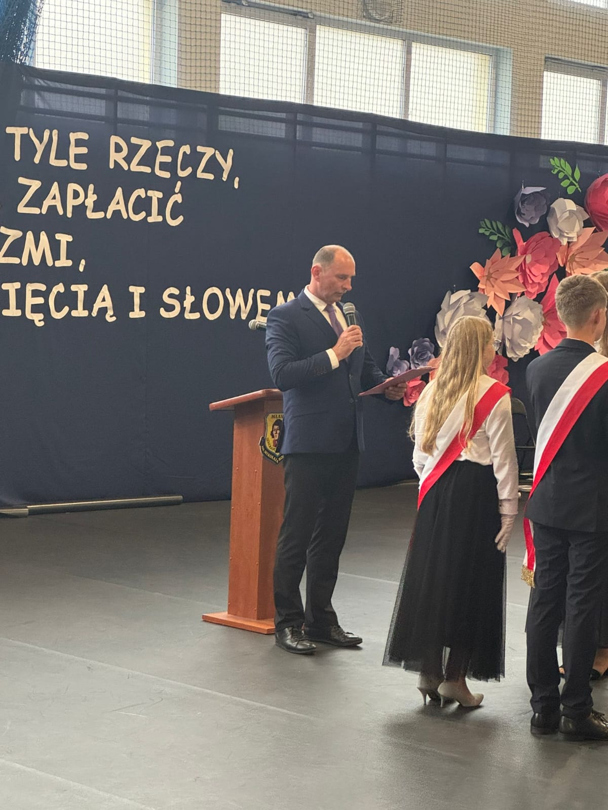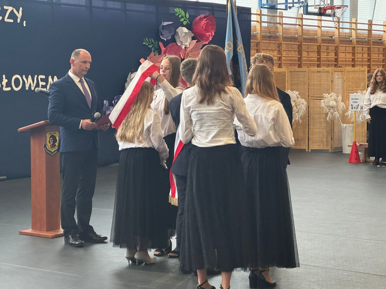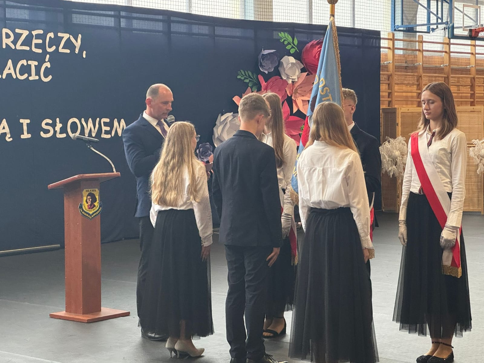 Podczas uroczystości zakończenia roku szkolnego miało miejsce uroczyste przekazanie sztandaru uczniom młodszych klas. To symboliczny, ale bardzo ważny moment, w którym starsi uczniowie przekazują odpowiedzialność i honor reprezentowania szkoły kolejnemu pokoleniu. Dziękujemy za piękne świadectwo dojrzałości i wzorową postawę.
