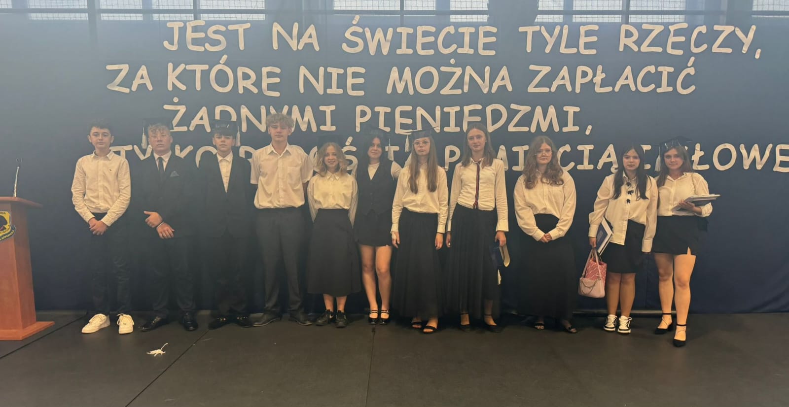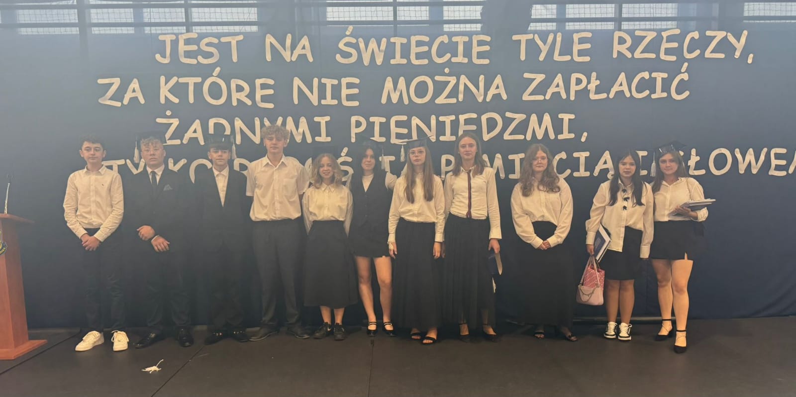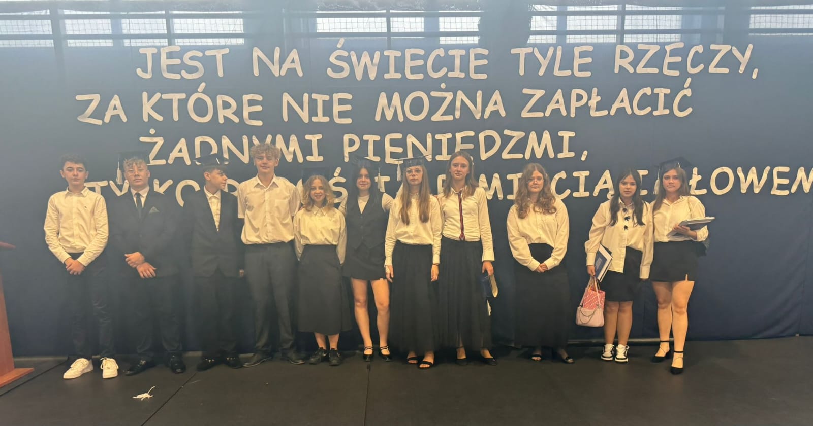 Dziękujemy Wam za wspólnie spędzony czas, za uśmiech, pomoc i wszystko, czym wzbogaciliście naszą społeczność. Życzymy Wam powodzenia w nowych szkołach, odwagi w realizacji marzeń i wiary we własne możliwości. Mamy nadzieję, że z dumą będziecie wspominać lata spędzone w naszej szkole.