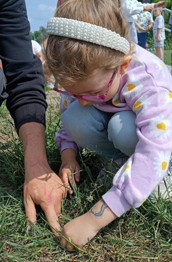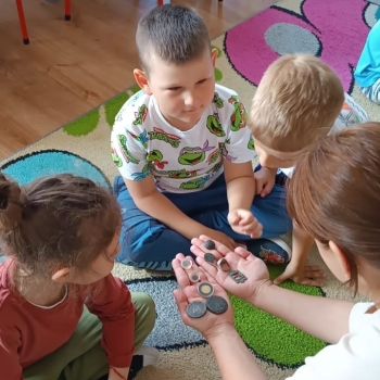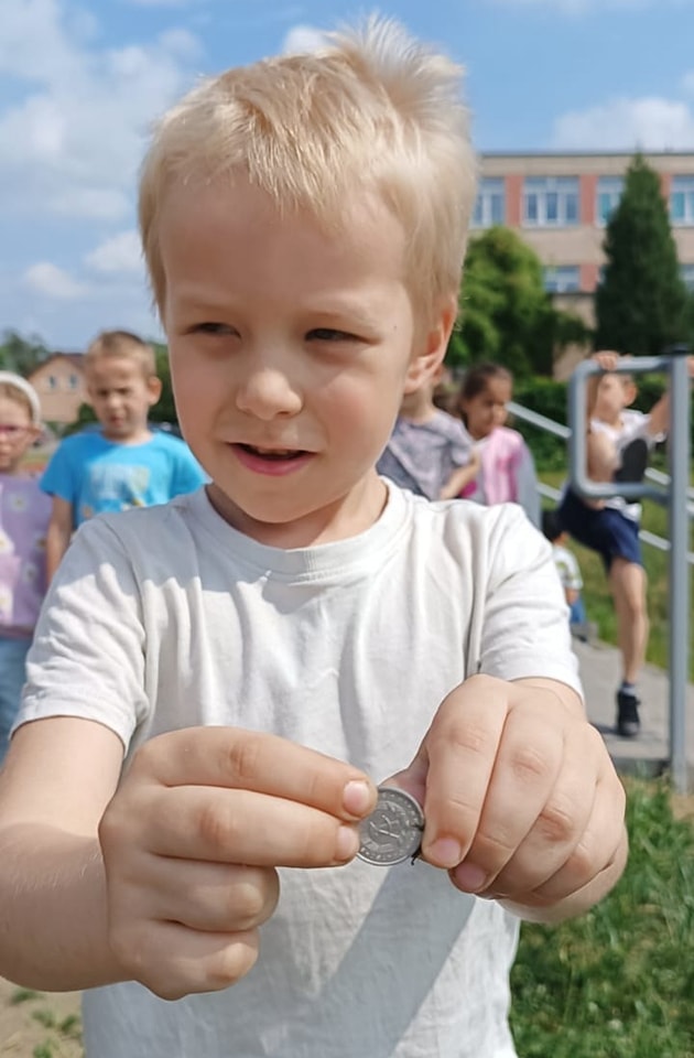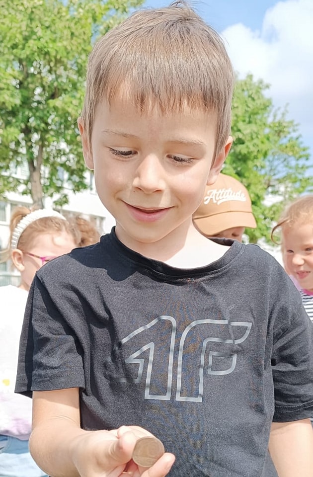 Motylki z ogromnym zaangażowaniem i ciekawością szukały ukrytych w ziemi „skarbów”. W trakcie poszukiwań udało się znaleźć m.in. stare monety, guziki od munduru oraz fragmenty biżuterii.