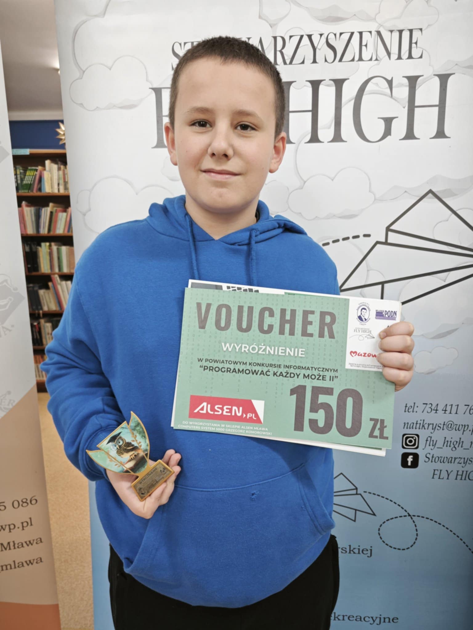 Uczniowie naszej szkoły wzięli udział w konkursie Programować każdy może zorganizowanym w Zespole Szkół nr 1 im. Jerzego Ciesielskiego w Mławie. Jakub Zmysłowski i Gabriel Rurka z klasy 6a musieli wykazać się wiedzą z zakresu programowania, rywalizując w jednej grupie z uczniami klas siódmych i ósmych.