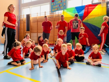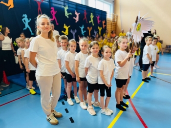 To właśnie dziś w naszym przedszkolu odbyła się długo wyczekiwana IV Rodzinna Olimpiada Sportowa. Impreza rozpoczęła się od przemarszu i prezentacji grup przedszkolnych oraz zapalenia znicza olimpijskiego. Po tanecznej rozgrzewce drużyny przystąpiły do udziału w konkurencjach. Olimpiada miała na celu promowanie aktywności fizycznej, współpracy w zespole oraz przestrzegania zasad fair play.