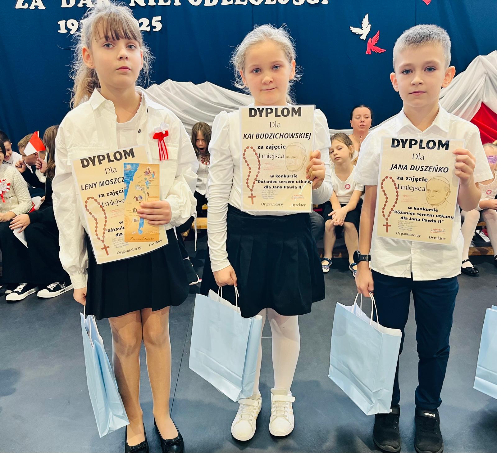 Z wielką radością ogłaszamy wyniki konkursu „Różaniec sercem utkany dla Jana Pawła II” zorganizowany z okazji uczczenia pamięci naszego Wielkiego Rodaka, św. Jana Pawła II. Celem konkursu było uczczenie osoby papieża, rozwijanie talentów artystycznych oraz zachęcenie do modlitwy różańcowej poprzez twórcze działanie. Serdecznie dziękujemy wszystkim uczestnikom za piękne, pełne serca i wiary prace. Wszystkie prace zachwyciły pomysłowością, starannością wykonania oraz głębokim przesłaniem duchowym. Każdy różaniec był wyjątkowy – utkany z serca, modlitwy i pamięci o św. Janie Pawle II.