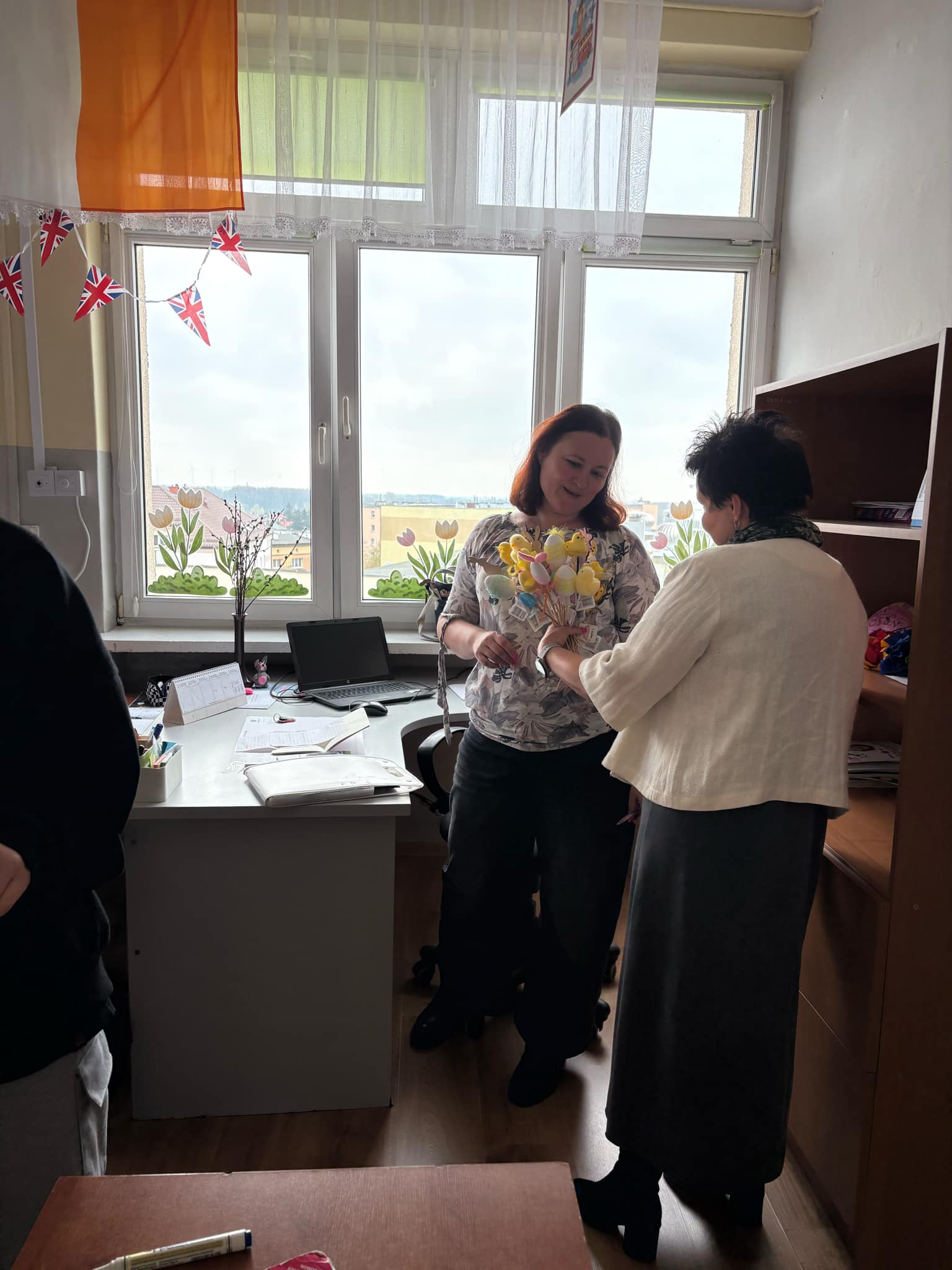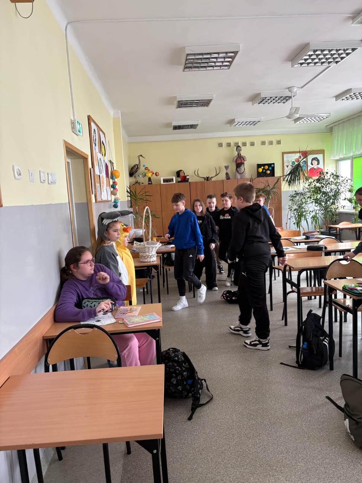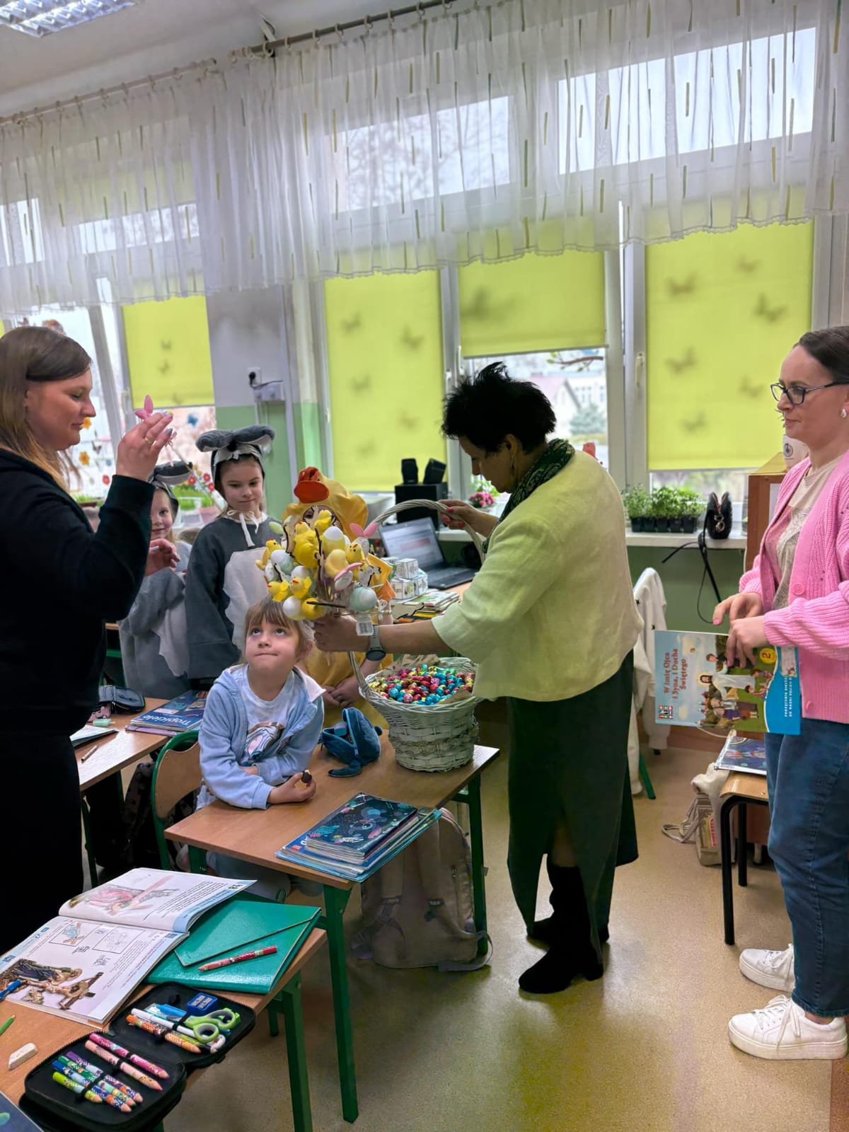 W przedświątecznej atmosferze Pani Dyrektor Jolanta Tyl, w towarzystwie wielkanocnych pomocników, złożyła najserdeczniejsze życzenia całej społeczności Szkoły Podstawowej nr 2. Uczniowie oraz pracownicy szkoły zostali obdarowani słodkimi upominkami, które towarzyszyły życzeniom zdrowych, spokojnych i radosnych Świąt Wielkanocnych. Ten symboliczny gest był wyrazem pamięci, życzliwości oraz troski o wspólnotę szkolną, budując poczucie bliskości i świątecznego ducha.