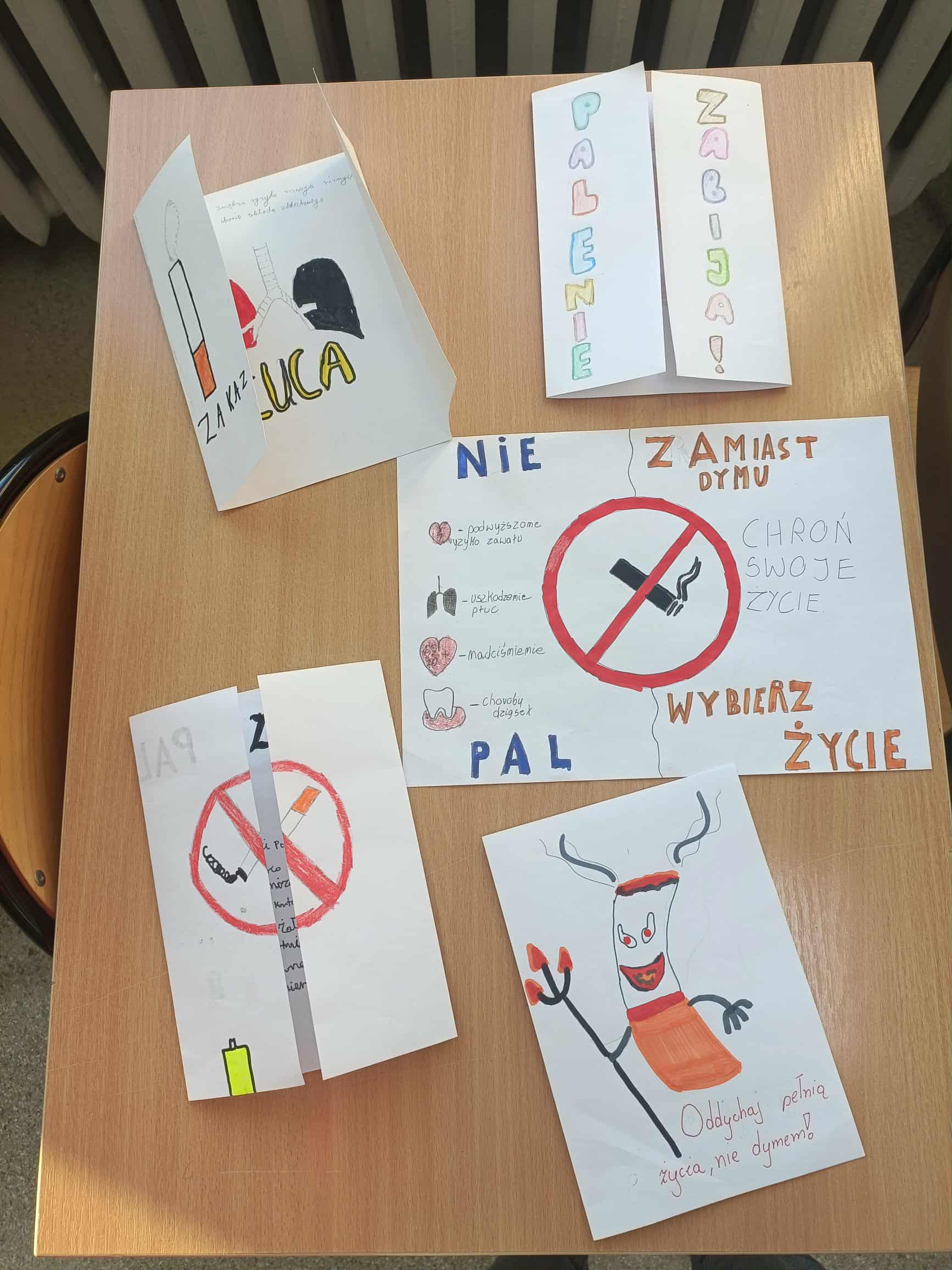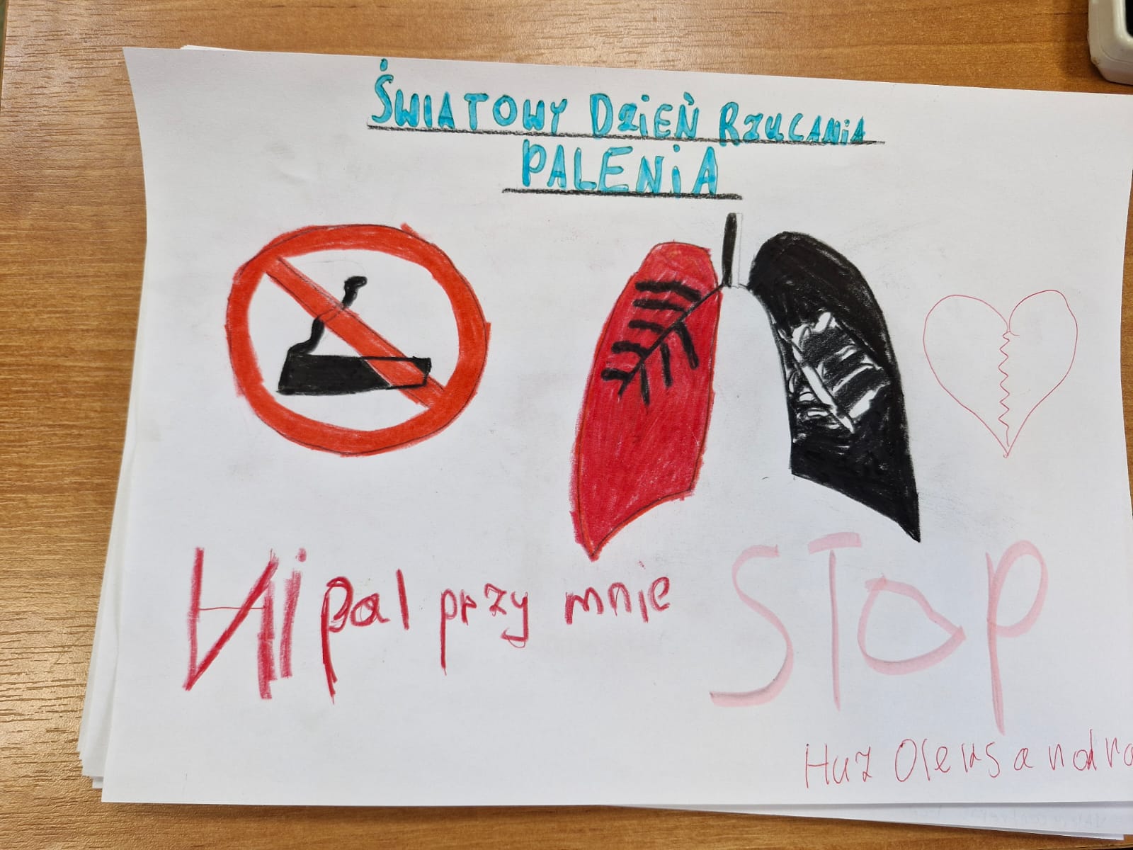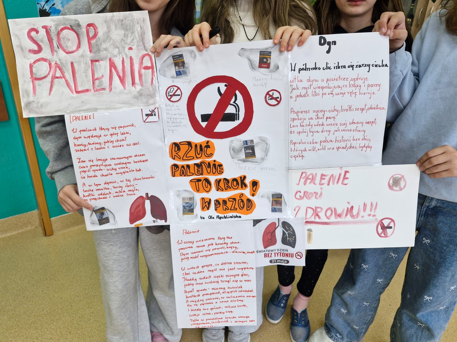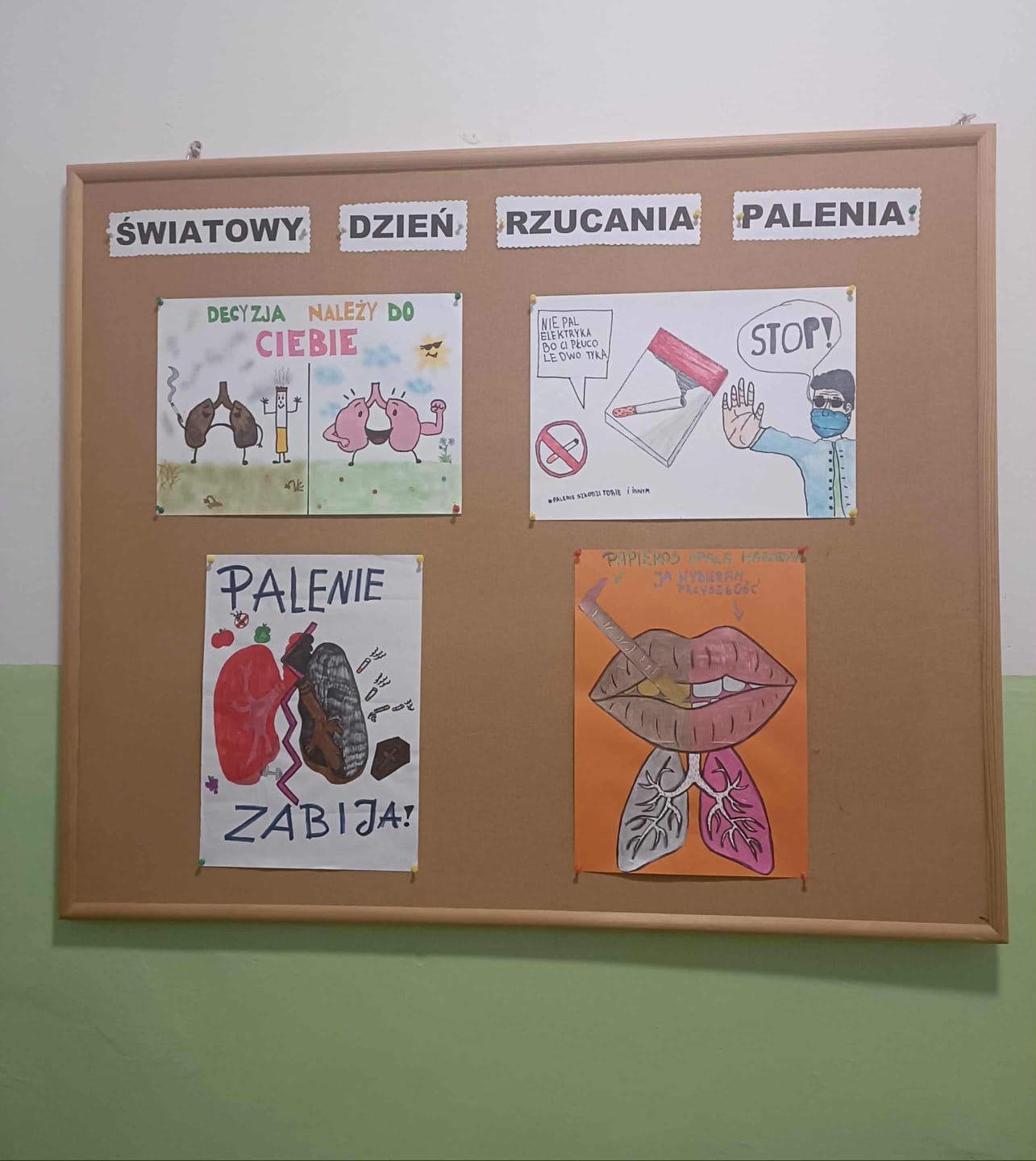 W ramach obchodów Światowego Dnia Rzucania Palenia w naszej szkole zorganizowano szereg działań profilaktycznych mających na celu promowanie zdrowego stylu życia oraz uświadamianie negatywnych skutków palenia papierosów. Szkolne Koło PCK przygotowało okolicznościową gazetkę ścienną, która pojawiła się na korytarzu szkolnym. Znalazły się na niej najważniejsze informacje dotyczące szkodliwości palenia oraz wskazówki, jak skutecznie zerwać z nałogiem. Podczas lekcji biologii oraz przyrody przeprowadzono warsztaty profilaktyczne. Uczniowie stworzyli własne ulotki informacyjne oraz plakaty ukazujące konsekwencje palenia papierosów i zachęcające do dbania o zdrowie. Dzięki temu mogli połączyć wiedzę merytoryczną z kreatywną formą przekazu. Wspólnie promujemy postawy sprzyjające zdrowiu oraz świadome, odpowiedzialne wybory.