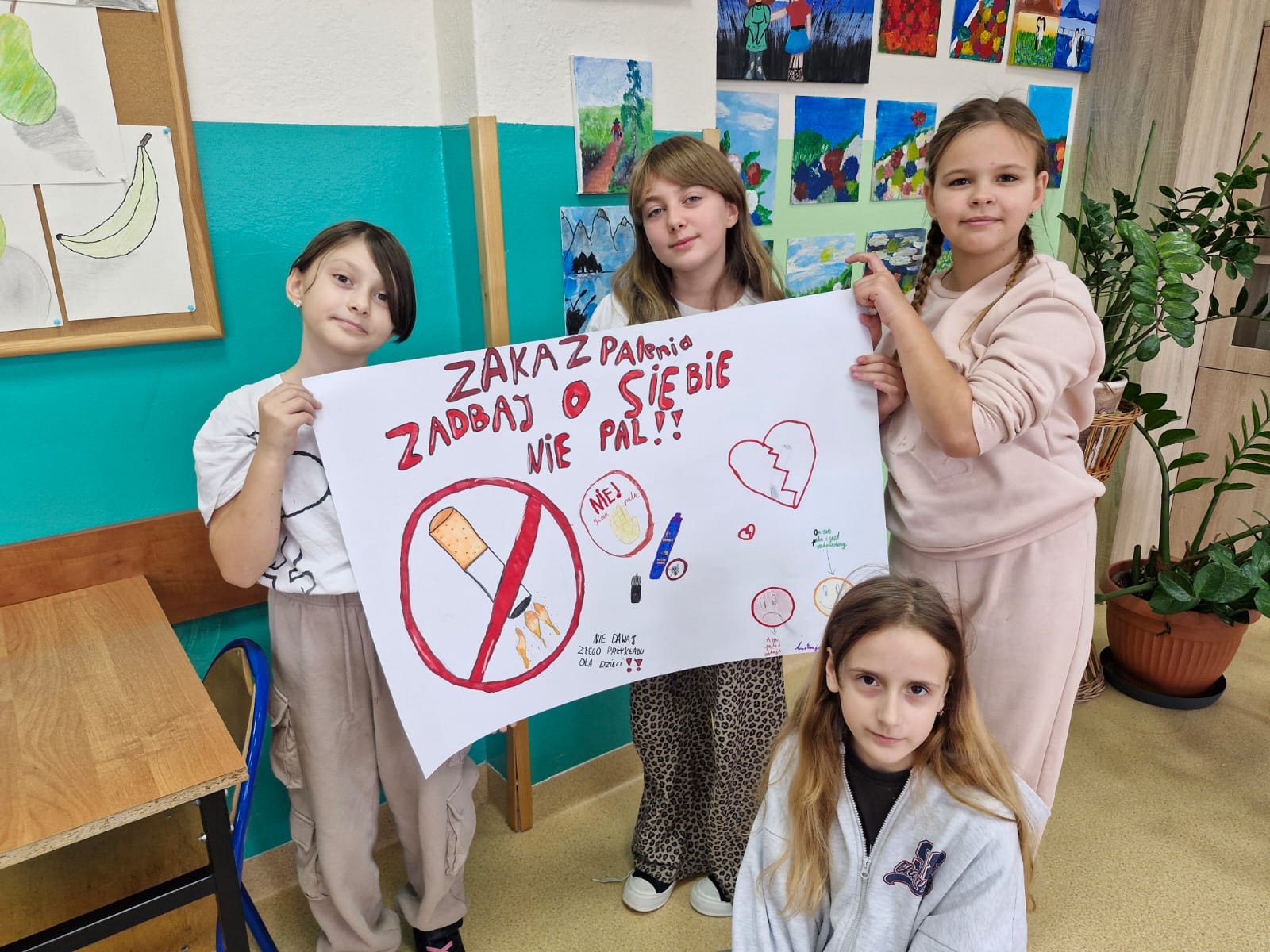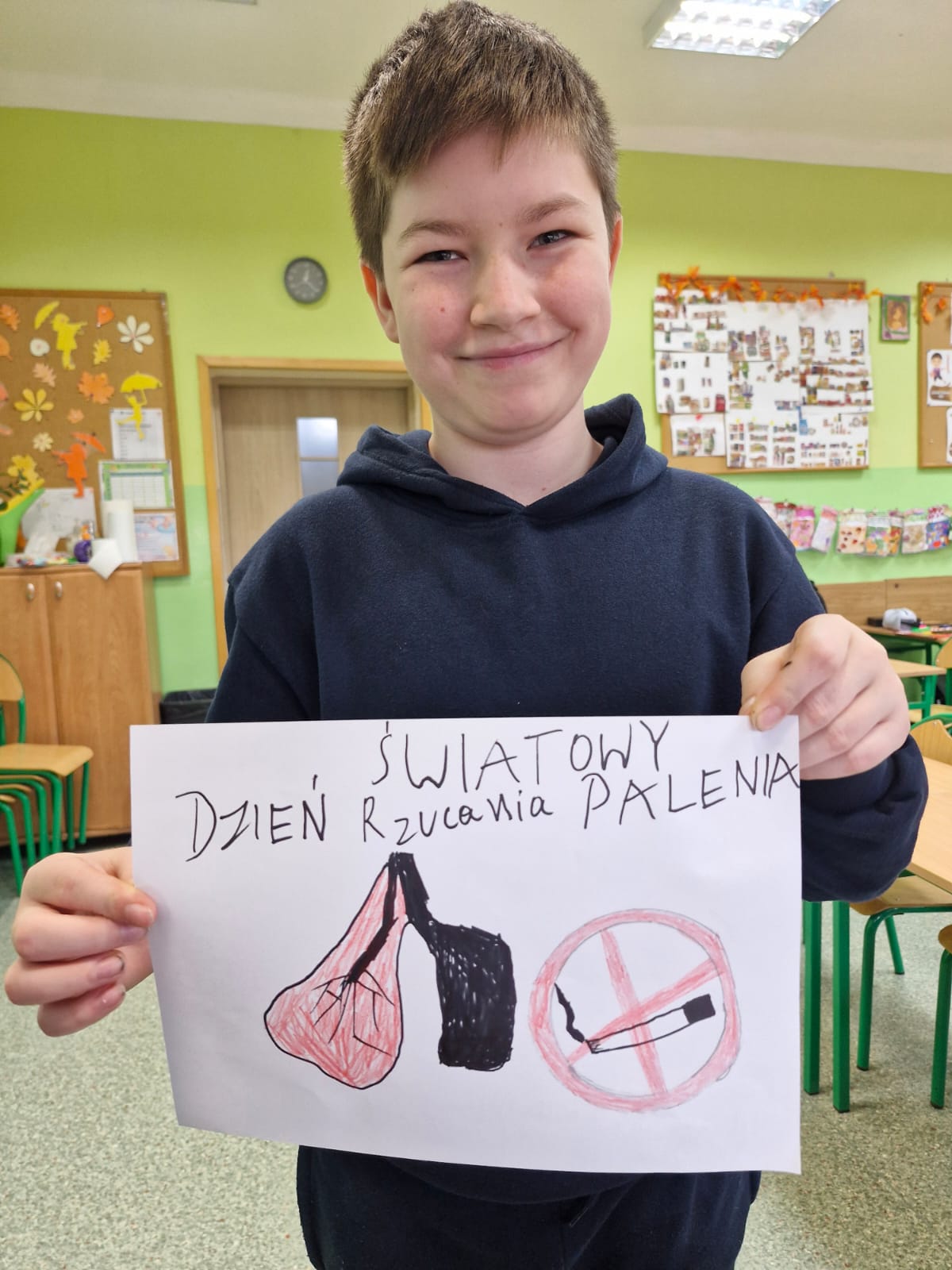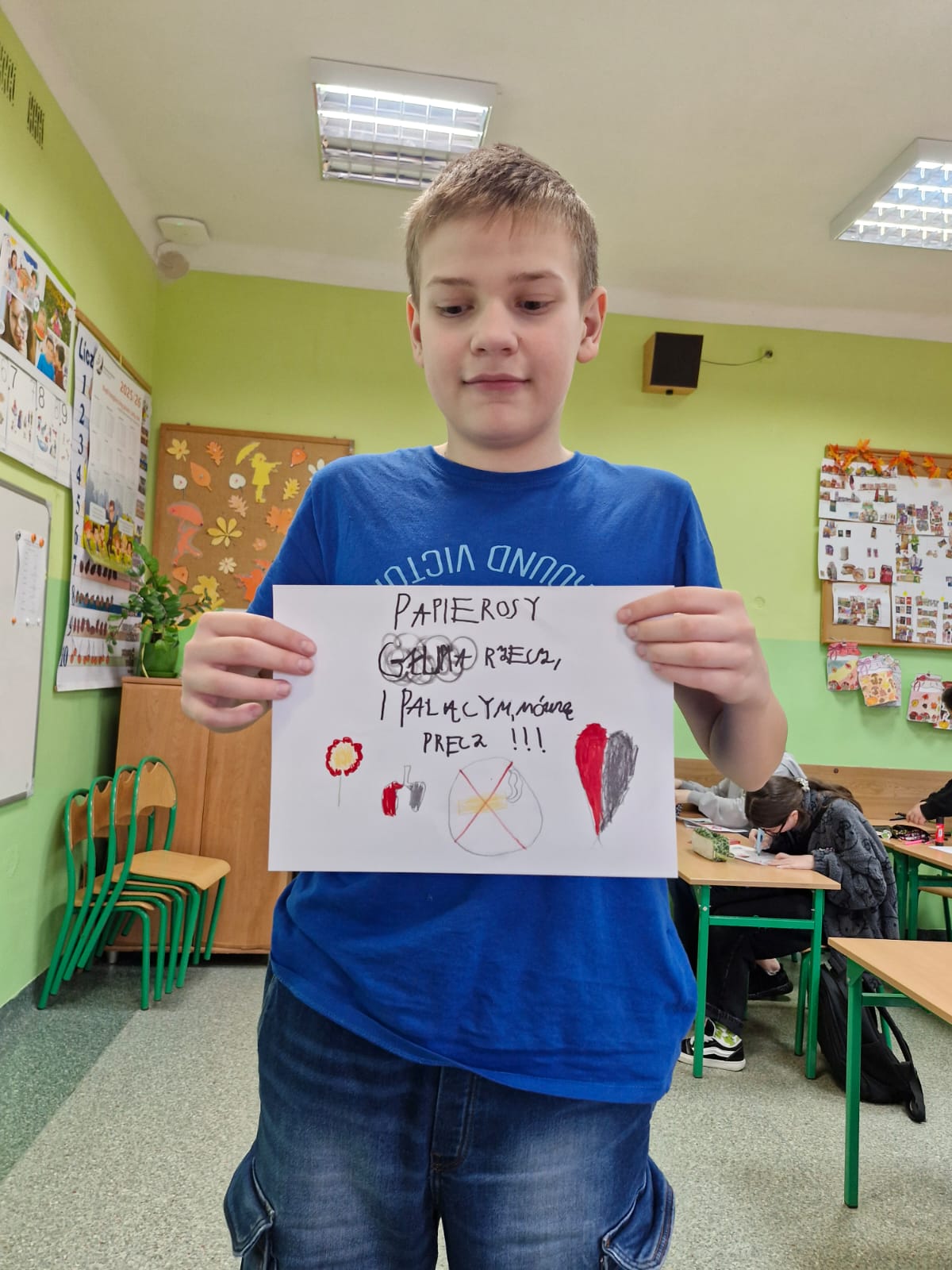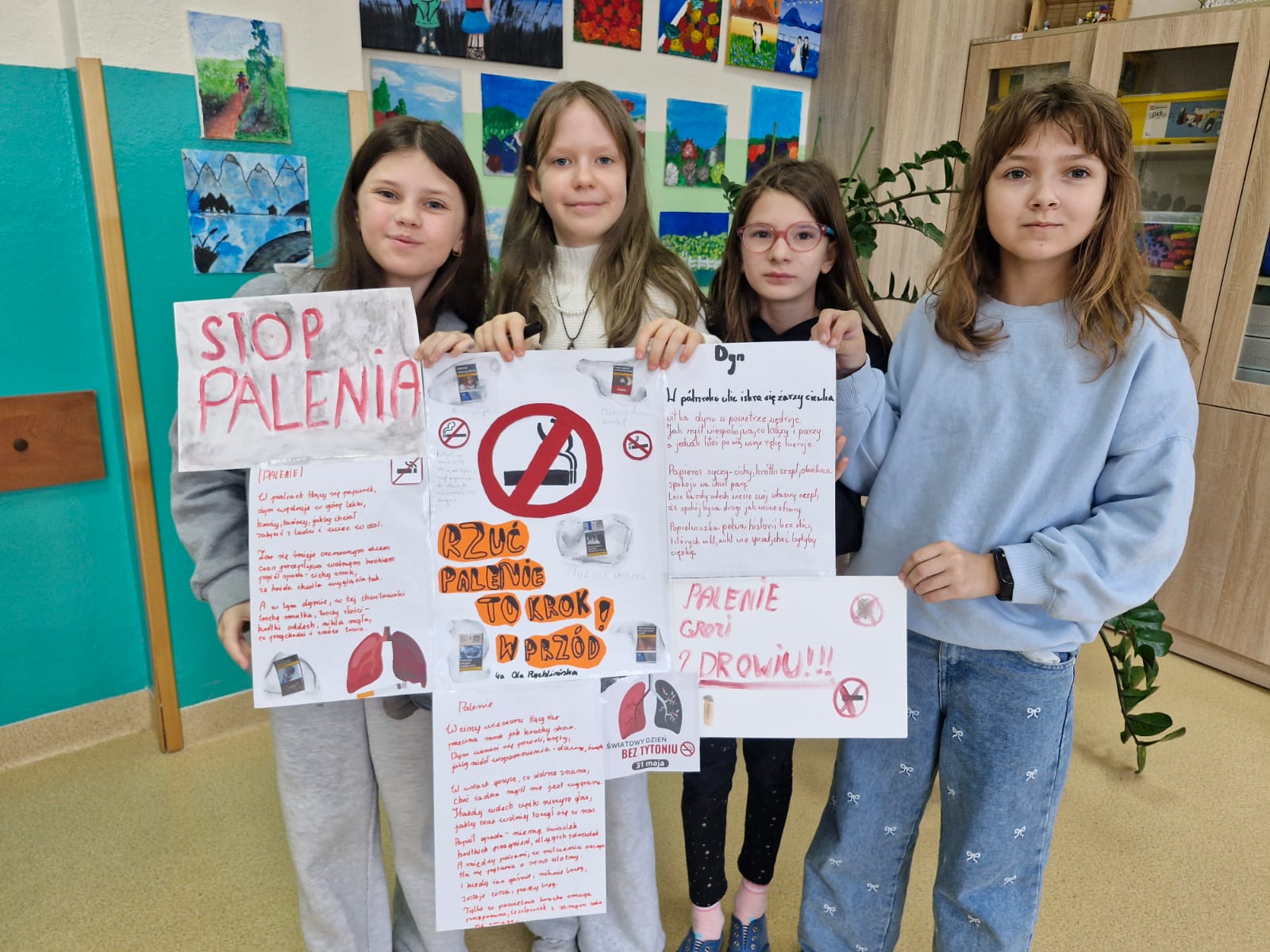 W ramach obchodów Światowego Dnia Rzucania Palenia w naszej szkole zorganizowano szereg działań profilaktycznych mających na celu promowanie zdrowego stylu życia oraz uświadamianie negatywnych skutków palenia papierosów. Szkolne Koło PCK przygotowało okolicznościową gazetkę ścienną, która pojawiła się na korytarzu szkolnym. Znalazły się na niej najważniejsze informacje dotyczące szkodliwości palenia oraz wskazówki, jak skutecznie zerwać z nałogiem. Podczas lekcji biologii oraz przyrody przeprowadzono warsztaty profilaktyczne. Uczniowie stworzyli własne ulotki informacyjne oraz plakaty ukazujące konsekwencje palenia papierosów i zachęcające do dbania o zdrowie. Dzięki temu mogli połączyć wiedzę merytoryczną z kreatywną formą przekazu. Wspólnie promujemy postawy sprzyjające zdrowiu oraz świadome, odpowiedzialne wybory.