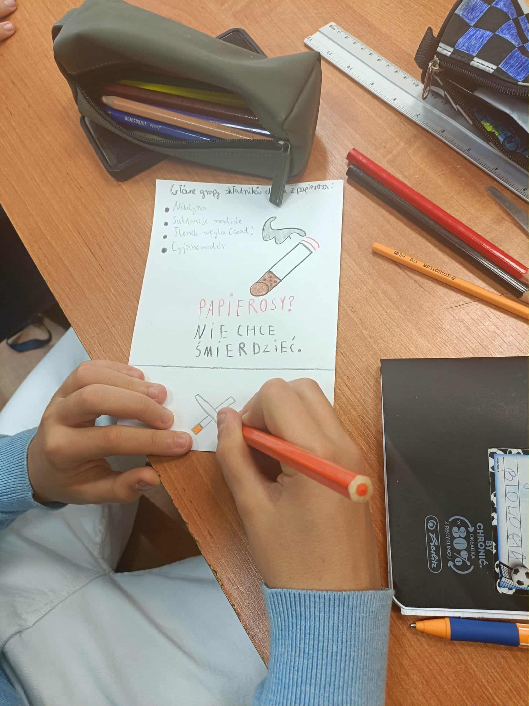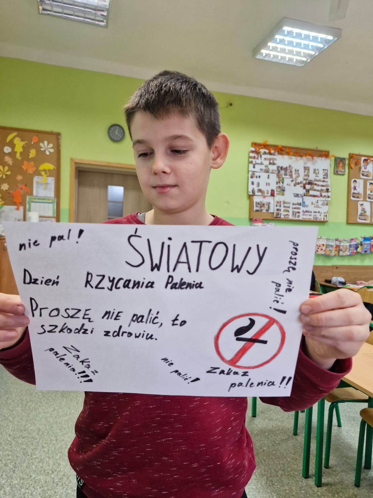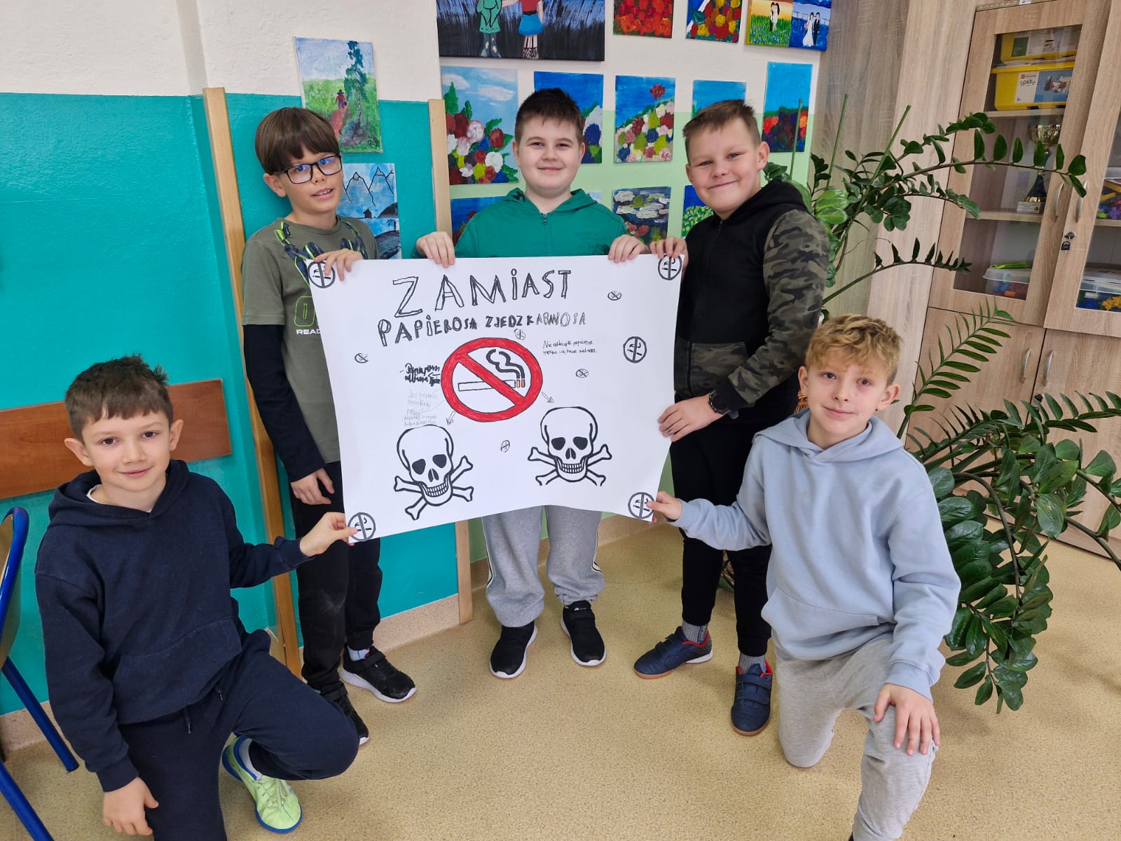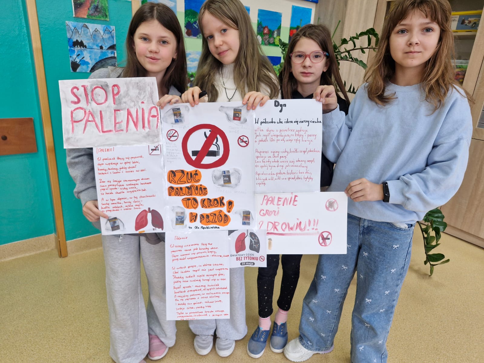 W ramach obchodów Światowego Dnia Rzucania Palenia w naszej szkole zorganizowano szereg działań profilaktycznych mających na celu promowanie zdrowego stylu życia oraz uświadamianie negatywnych skutków palenia papierosów. Szkolne Koło PCK przygotowało okolicznościową gazetkę ścienną, która pojawiła się na korytarzu szkolnym. Znalazły się na niej najważniejsze informacje dotyczące szkodliwości palenia oraz wskazówki, jak skutecznie zerwać z nałogiem. Podczas lekcji biologii oraz przyrody przeprowadzono warsztaty profilaktyczne. Uczniowie stworzyli własne ulotki informacyjne oraz plakaty ukazujące konsekwencje palenia papierosów i zachęcające do dbania o zdrowie. Dzięki temu mogli połączyć wiedzę merytoryczną z kreatywną formą przekazu. Wspólnie promujemy postawy sprzyjające zdrowiu oraz świadome, odpowiedzialne wybory.