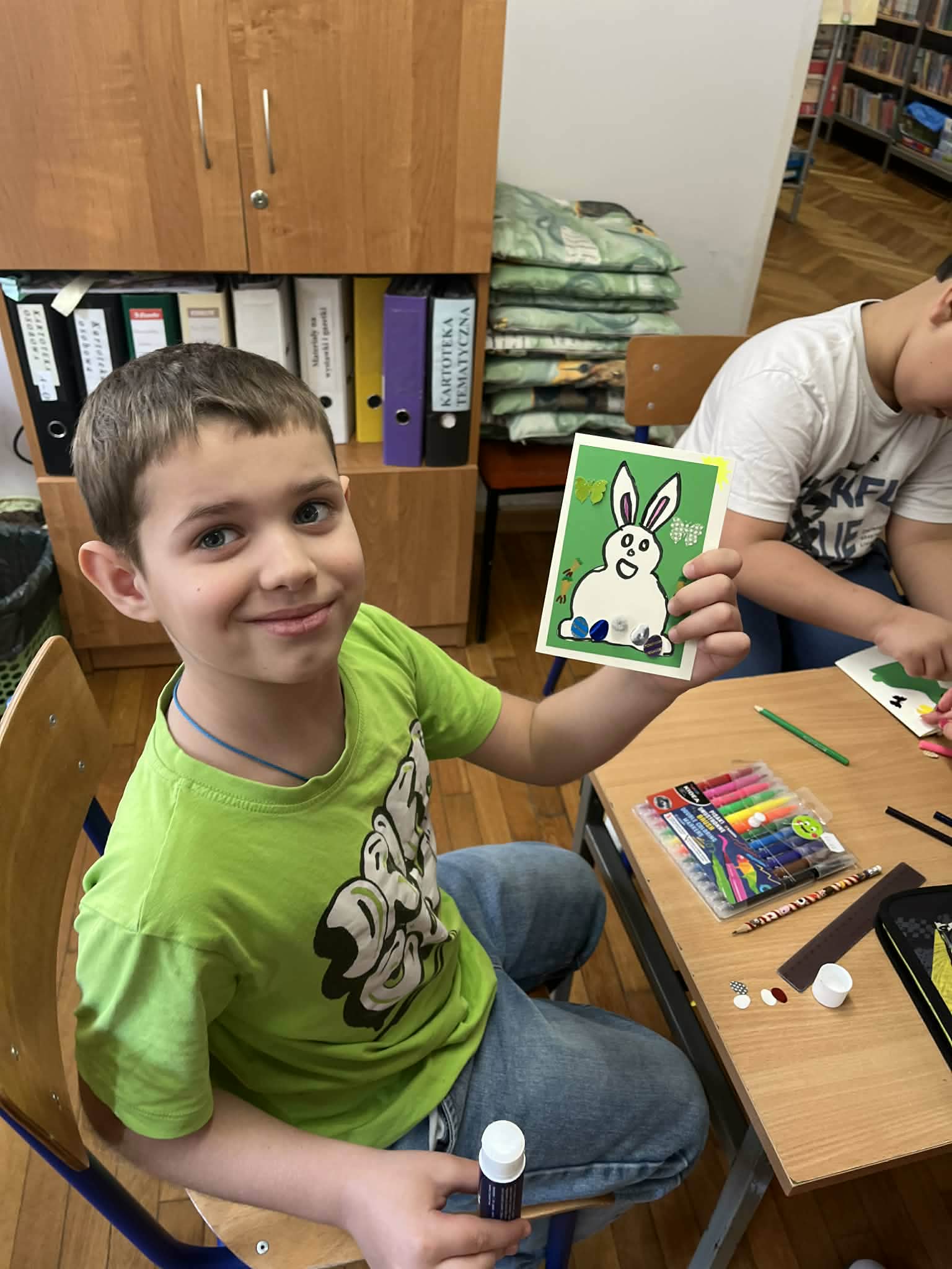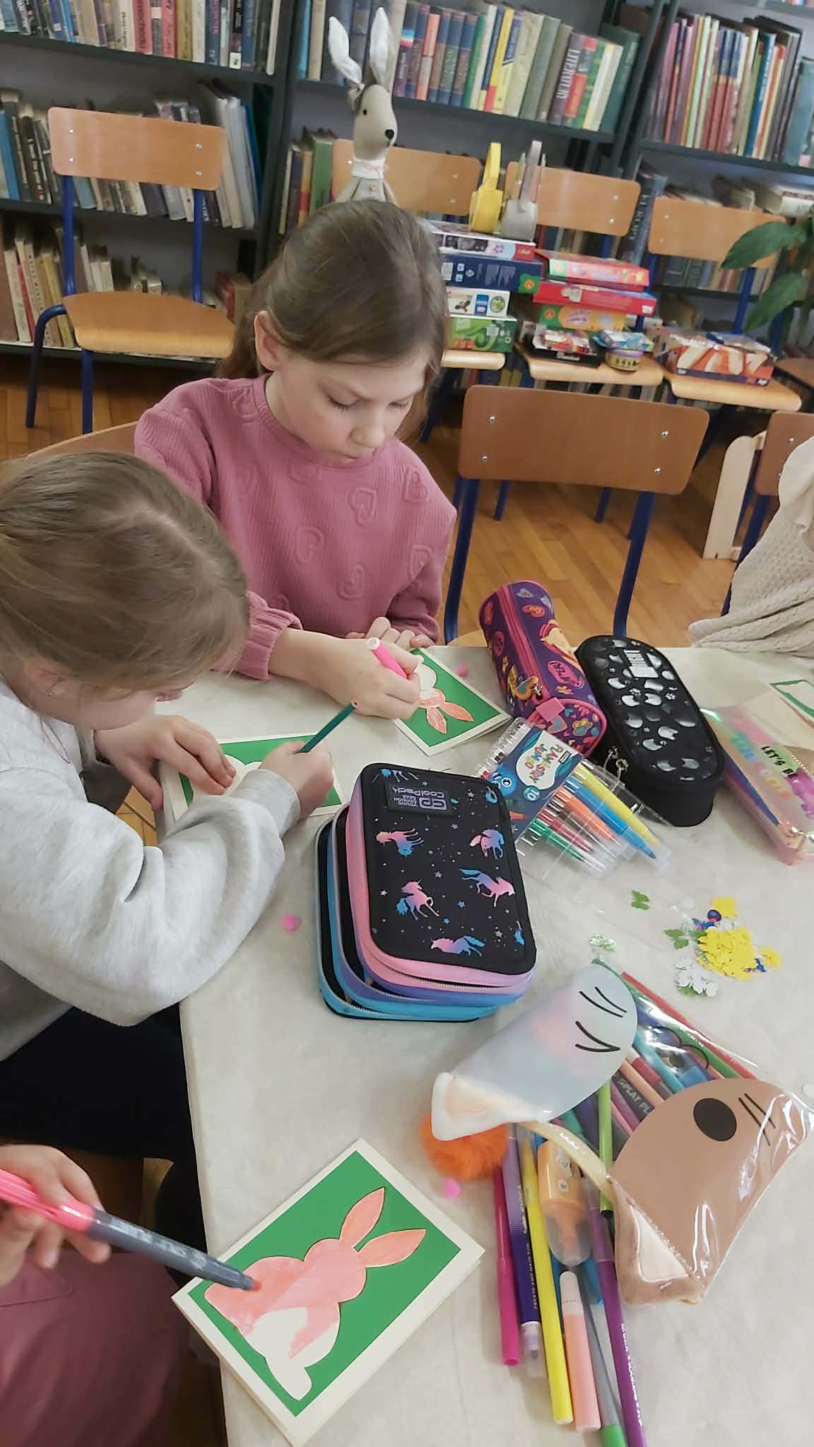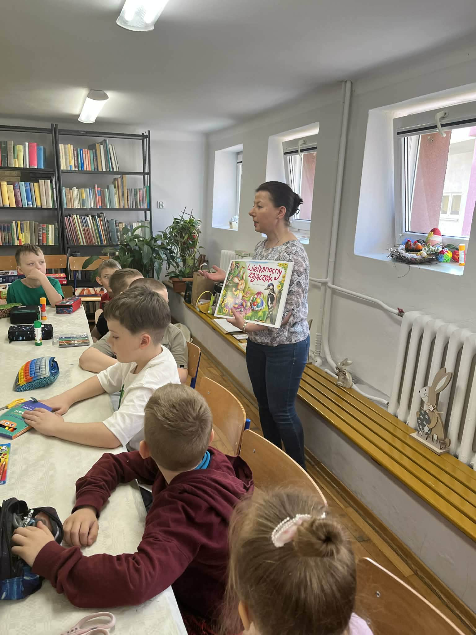 18 marca 2026 r. Bogumiła Pawłowska, na zaproszenie Katarzyny Chmielewskiej-Jeziorskiej, bibliotekarza Szkoły Podstawowej nr 2 w Mławie, przeprowadziła wielkanocne zajęcia edukacyjne. Uczniowie klas pierwszych wysłuchali bajki o Wielkanocnym zajączku, wykonywali zadania i kartki świąteczne. Otrzymali tajemniczy list od zajączka, który zgubił wszystkie pisanki i prosił dzieci o pomoc w ich znalezieniu. Dzięki rozwiązaniu zagadek o wiośnie i prawidłowemu wykonaniu zadań gimnastycznych udało się odszukać jajka i uratować święta.
