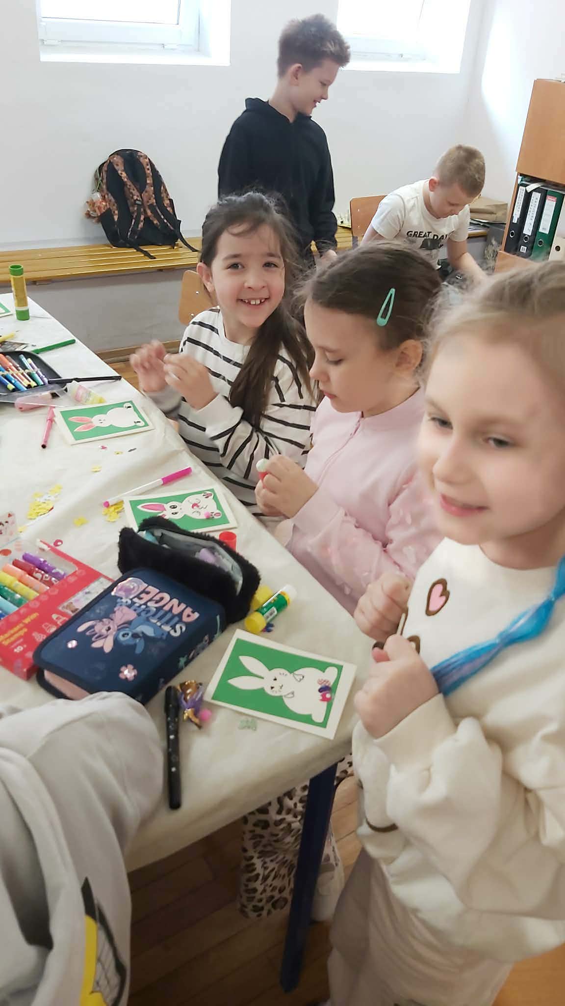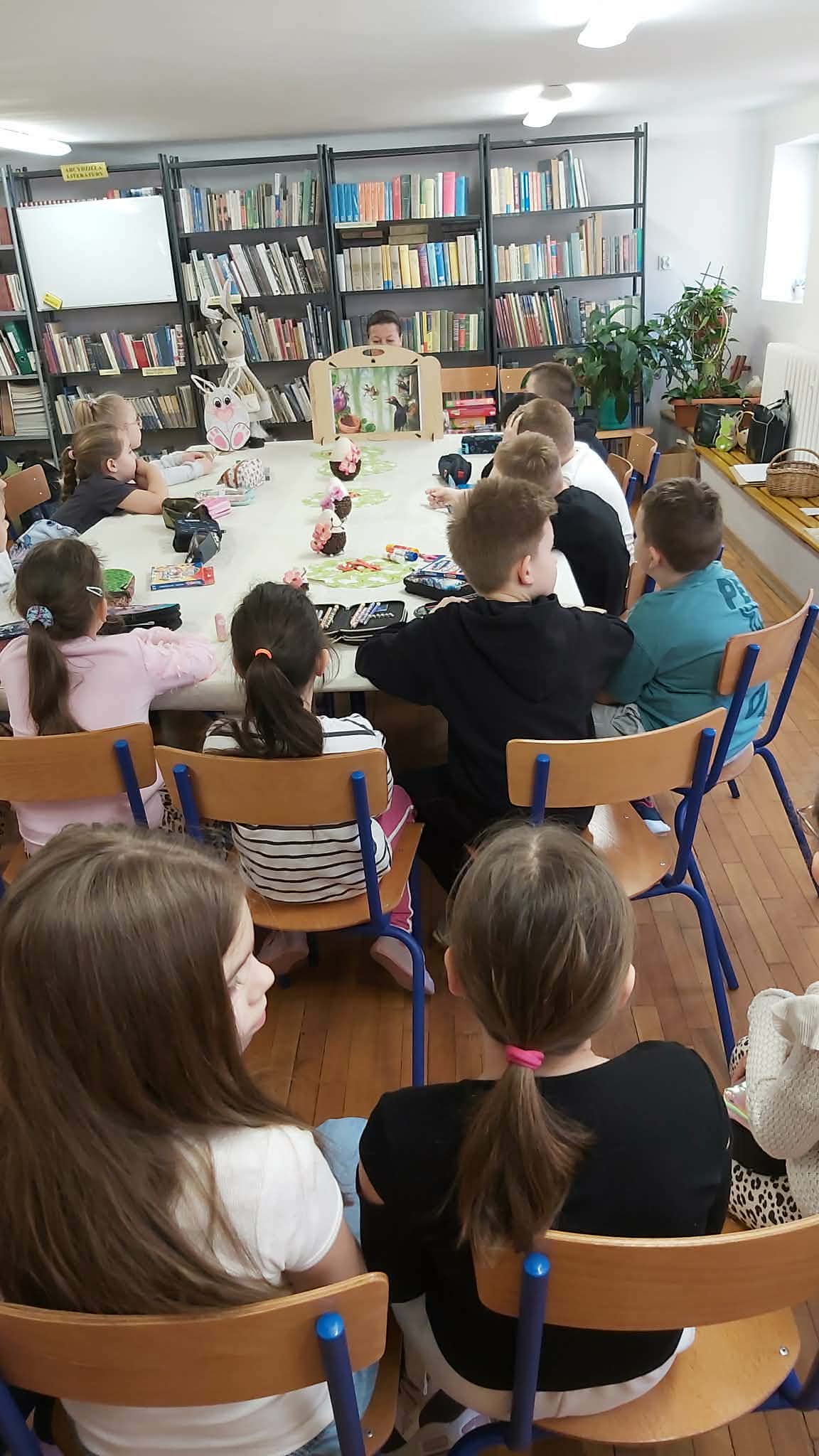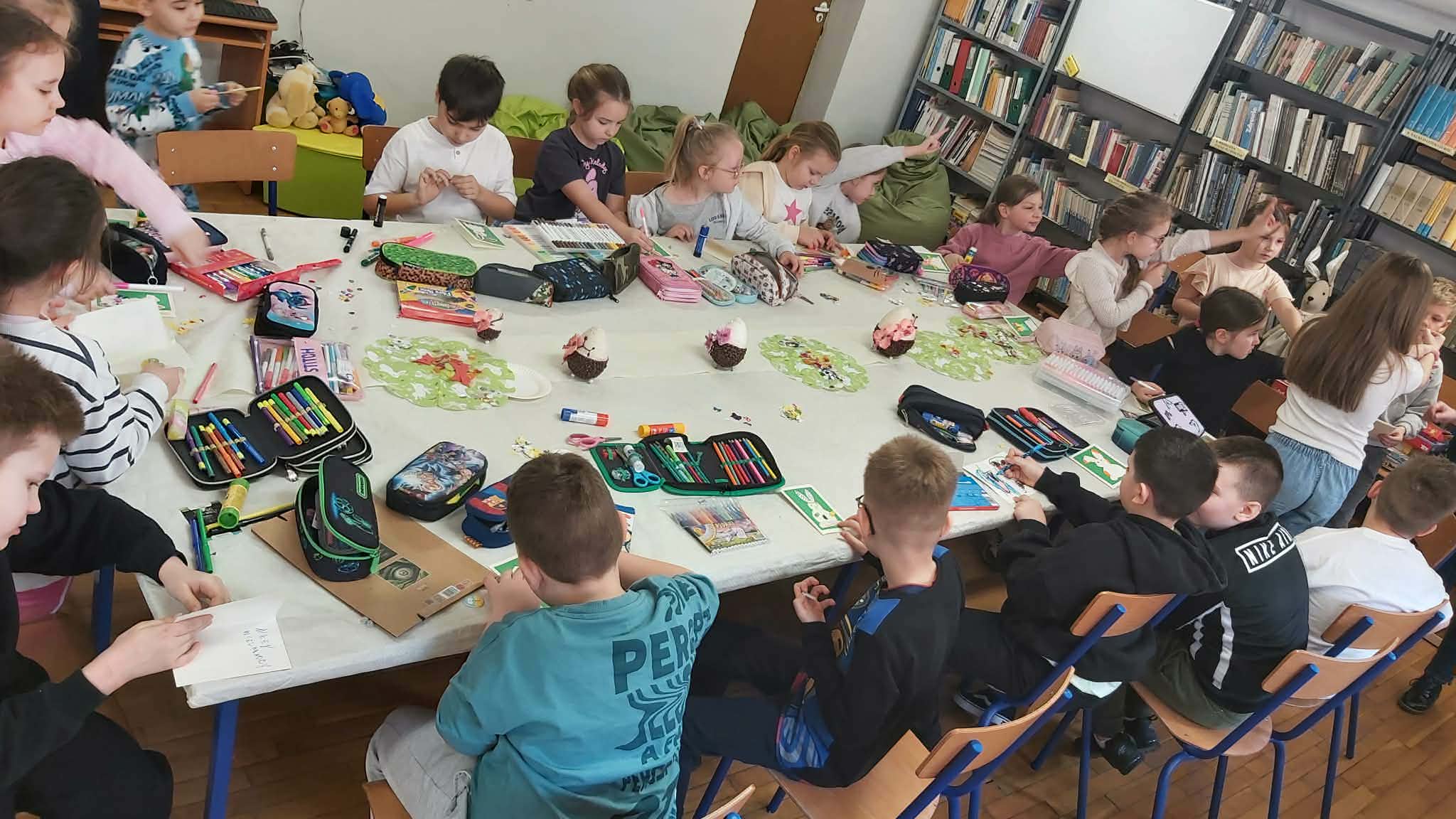 18 marca 2026 r. Bogumiła Pawłowska, na zaproszenie Katarzyny Chmielewskiej-Jeziorskiej, bibliotekarza Szkoły Podstawowej nr 2 w Mławie, przeprowadziła wielkanocne zajęcia edukacyjne. Uczniowie klas pierwszych wysłuchali bajki o Wielkanocnym zajączku, wykonywali zadania i kartki świąteczne. Otrzymali tajemniczy list od zajączka, który zgubił wszystkie pisanki i prosił dzieci o pomoc w ich znalezieniu. Dzięki rozwiązaniu zagadek o wiośnie i prawidłowemu wykonaniu zadań gimnastycznych udało się odszukać jajka i uratować święta.
