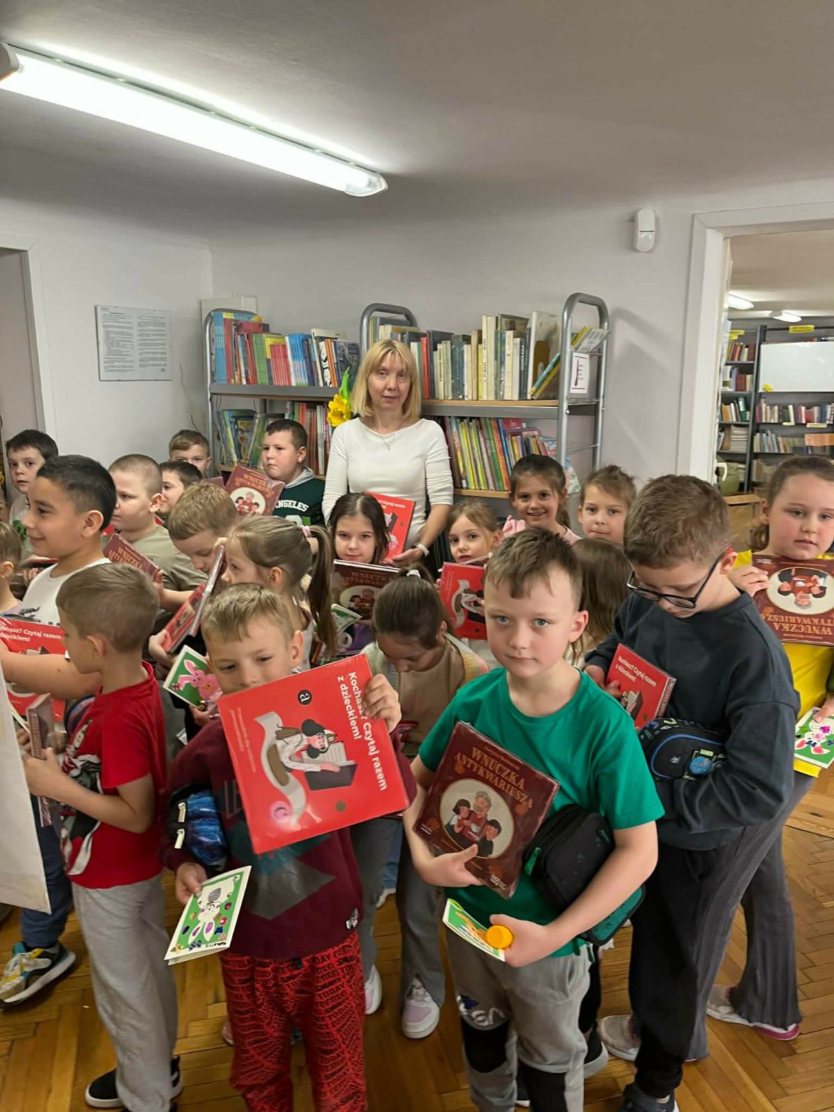 Na zakończenie spotkania w ramach kampanii społecznej Instytutu Książki „Mała książka – wielki człowiek” uczniowie otrzymali wyprawkę czytelniczą składającą się z broszury „Kochasz? Czytaj razem z dzieckiem!” oraz „Wnuczki antykwariusza” autorstwa Justyny Bednarek. Akcja ta corocznie przypomina o korzyściach wynikających ze wspólnego, rodzinnego czytania i pokazuje niezwykle ważną rolę książek w życiu dzieci.
