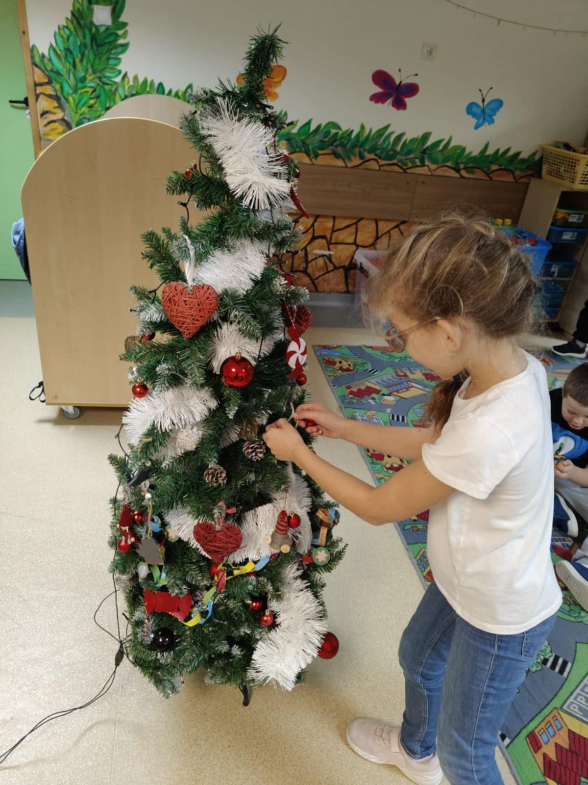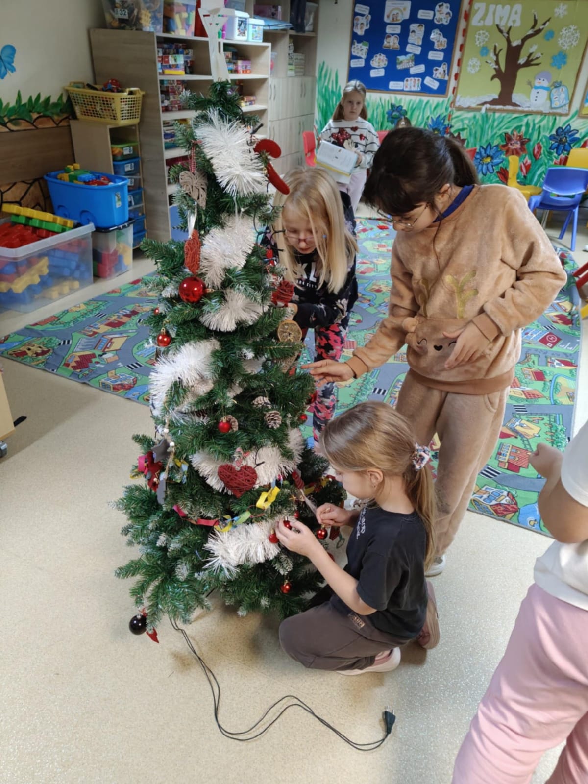 W świetlicy szkolnej odbył się wyjątkowy, pełen radości mikołajkowy tydzień, podczas którego dzieci brały udział w licznych aktywnościach o tematyce świątecznej. Wspólnie dekorowaliśmy salę, tworząc ciepły, zimowy klimat, oraz ubieraliśmy choinkę, która stała się centralnym punktem naszych zajęć.
