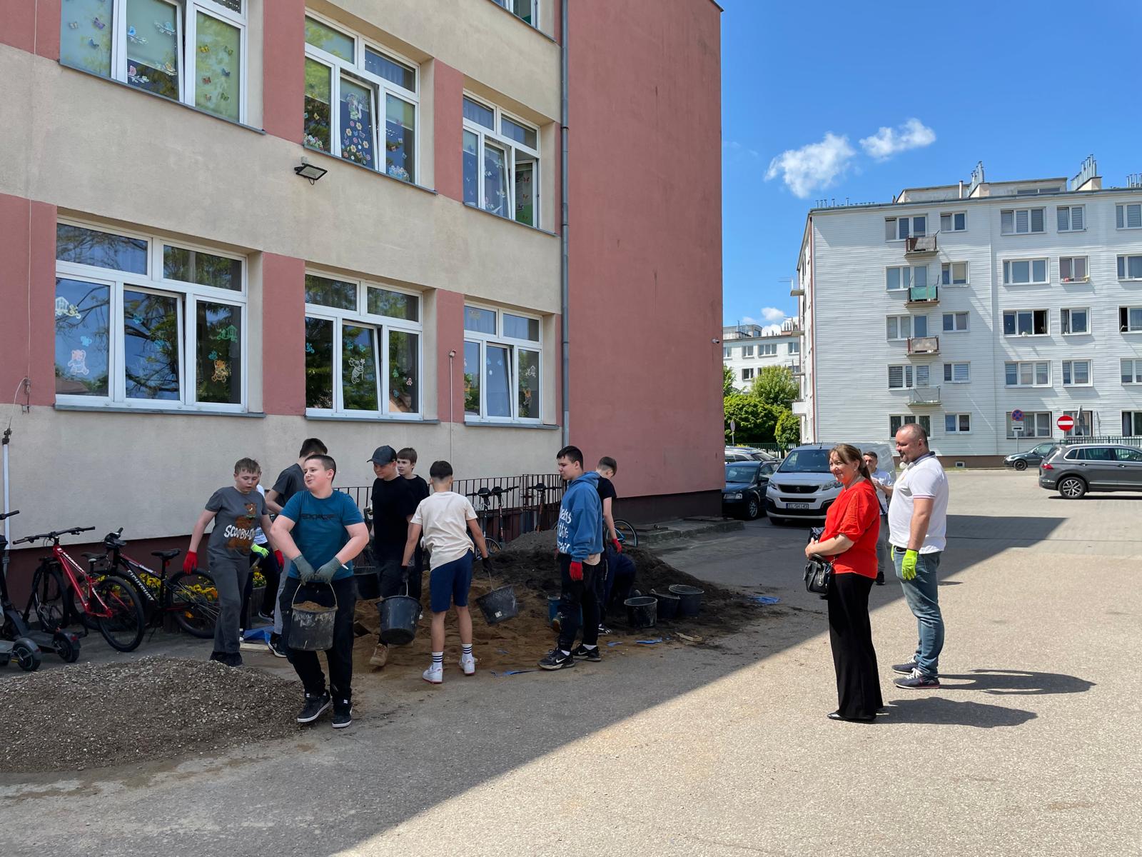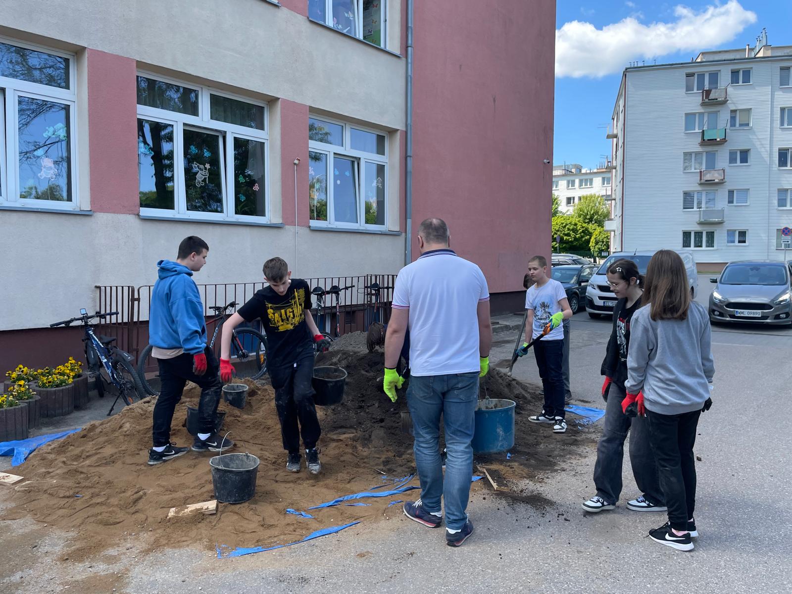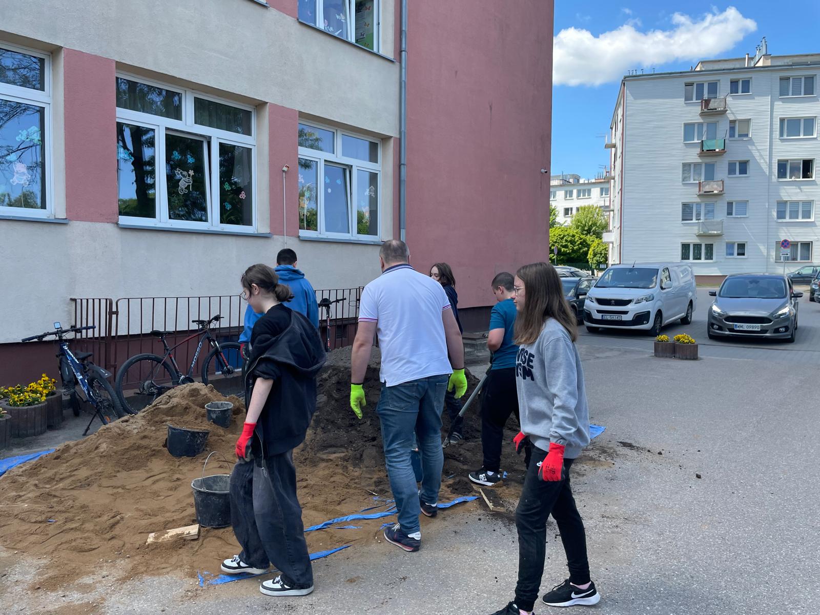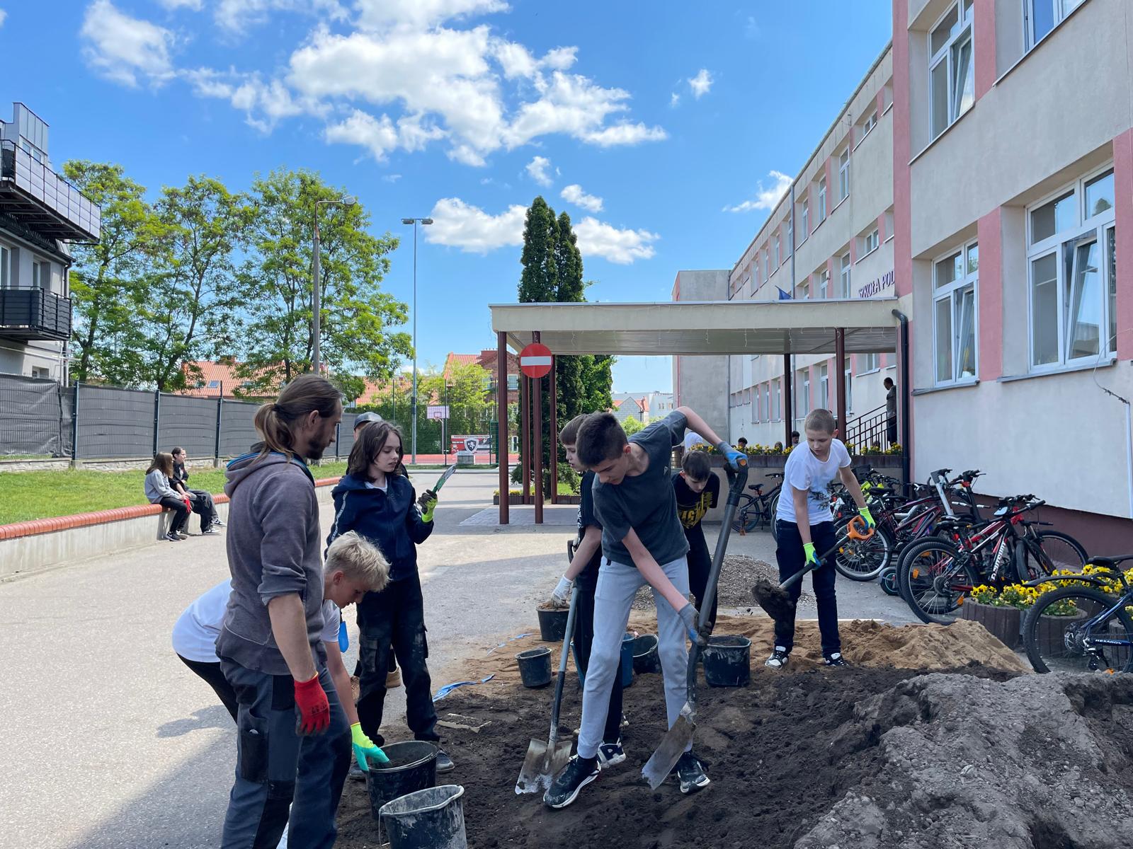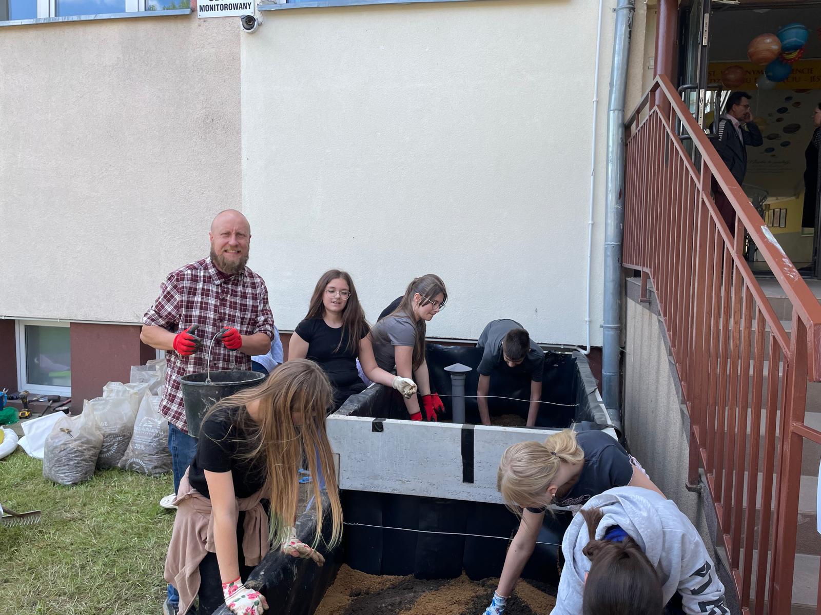 We wtorek szóstoklasiści wzięli udział w wykładzie na temat poprawnego gospodarowania wodą i budowy ogrodów deszczowych. Po zajęciach teoretycznych uczniowie klasy 6a przystąpili do działania i z pomocą doświadczonych specjalistów z Deer Garden. Naturalnie założyli swój pierwszy ogród deszczowy przed szkołą. Nasz ogród powstał w ramach projektu „Zintegrowane przedsięwzięcia infrastrukturalne dostosowujące teren Miasta Mława do zmian warunków pogodowych poprzez poprawę retencji i zarządzanie wodami opadowymi” realizowanego przez Urząd Miasta Mława.