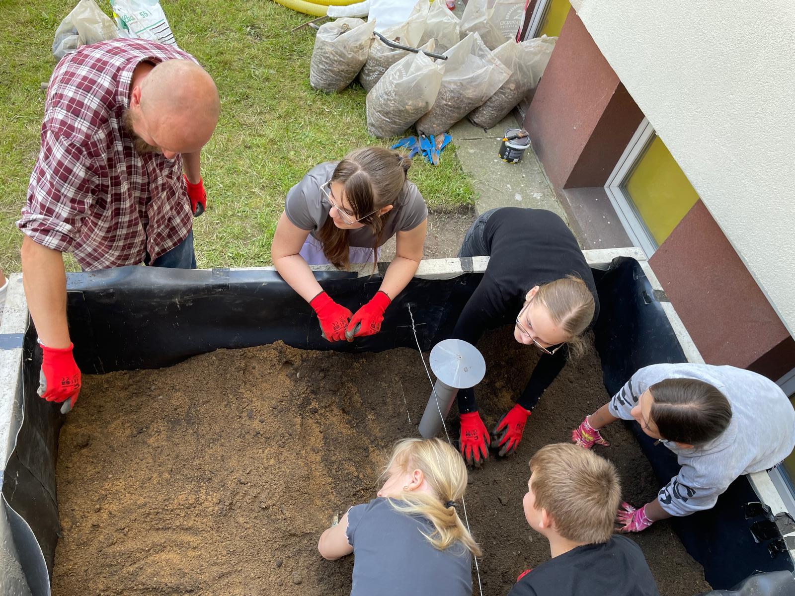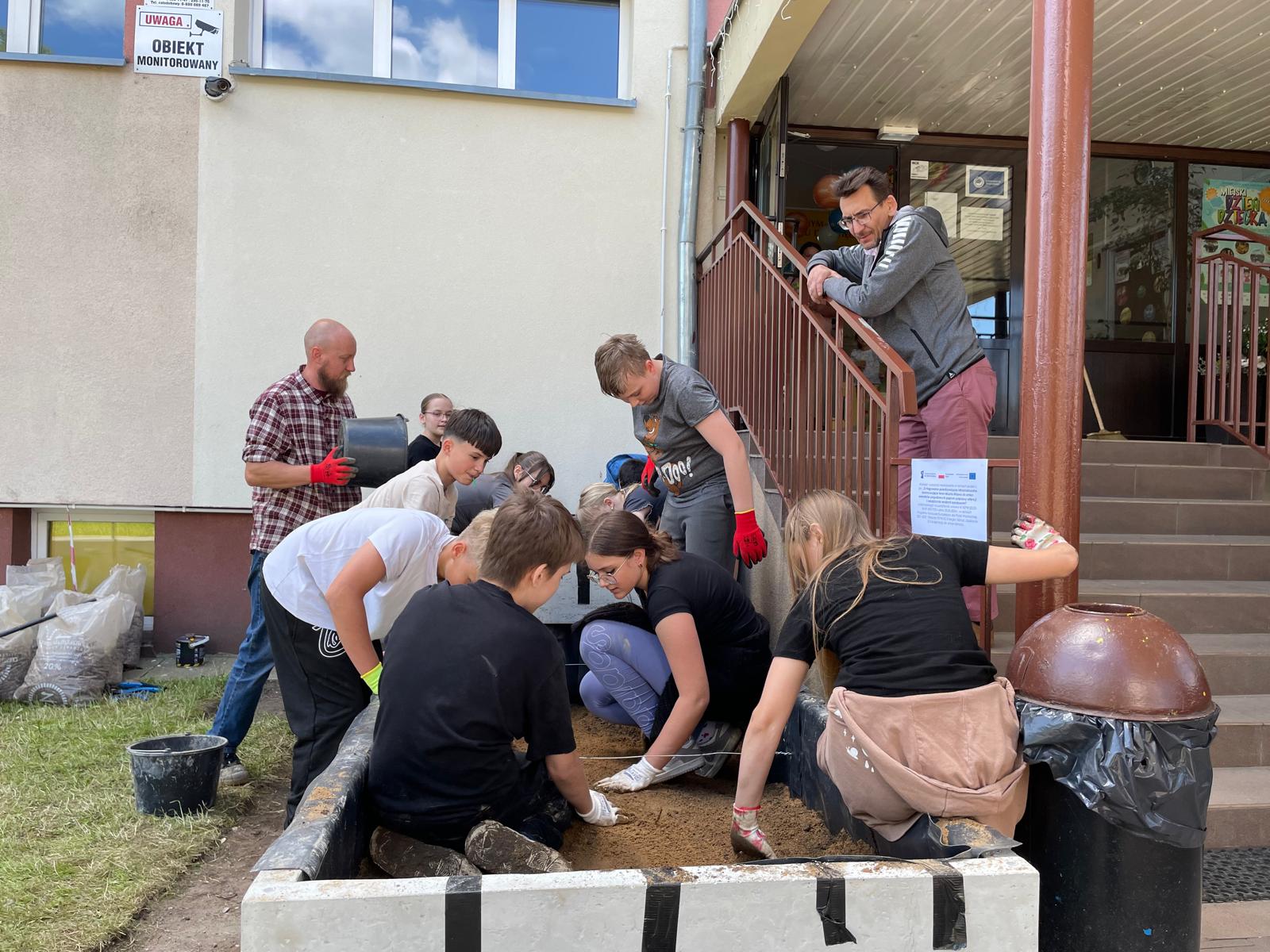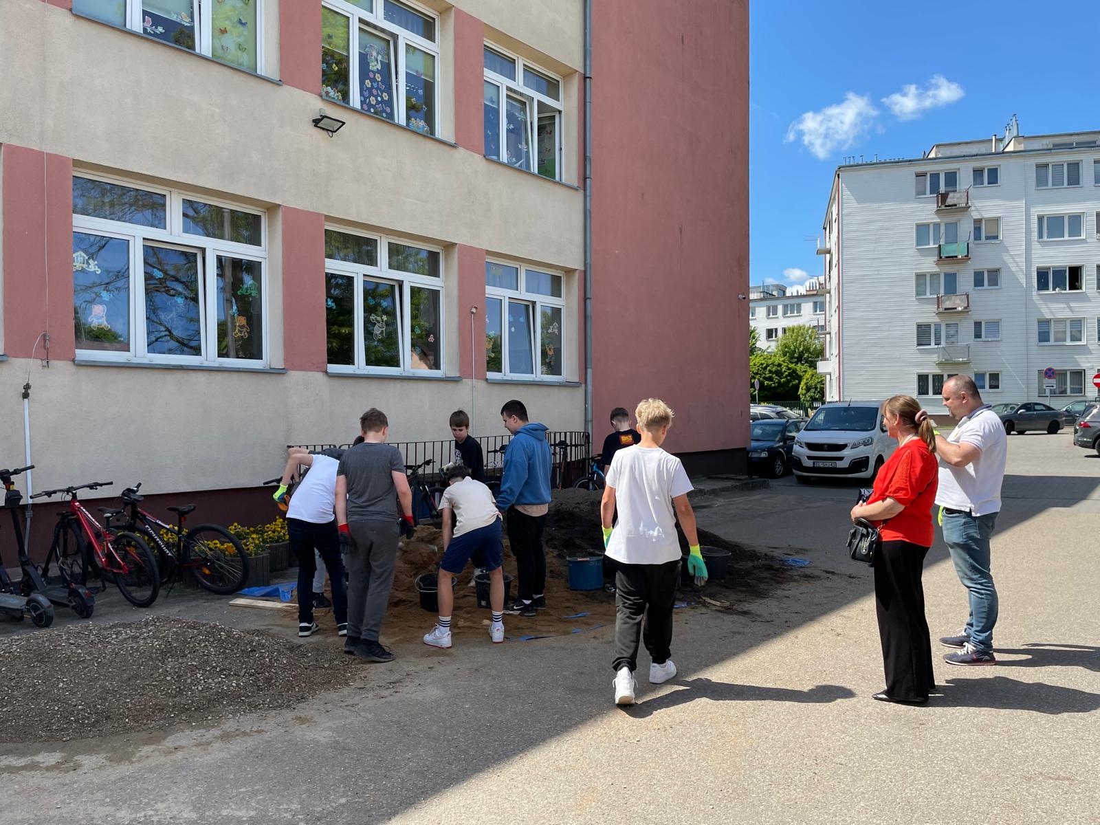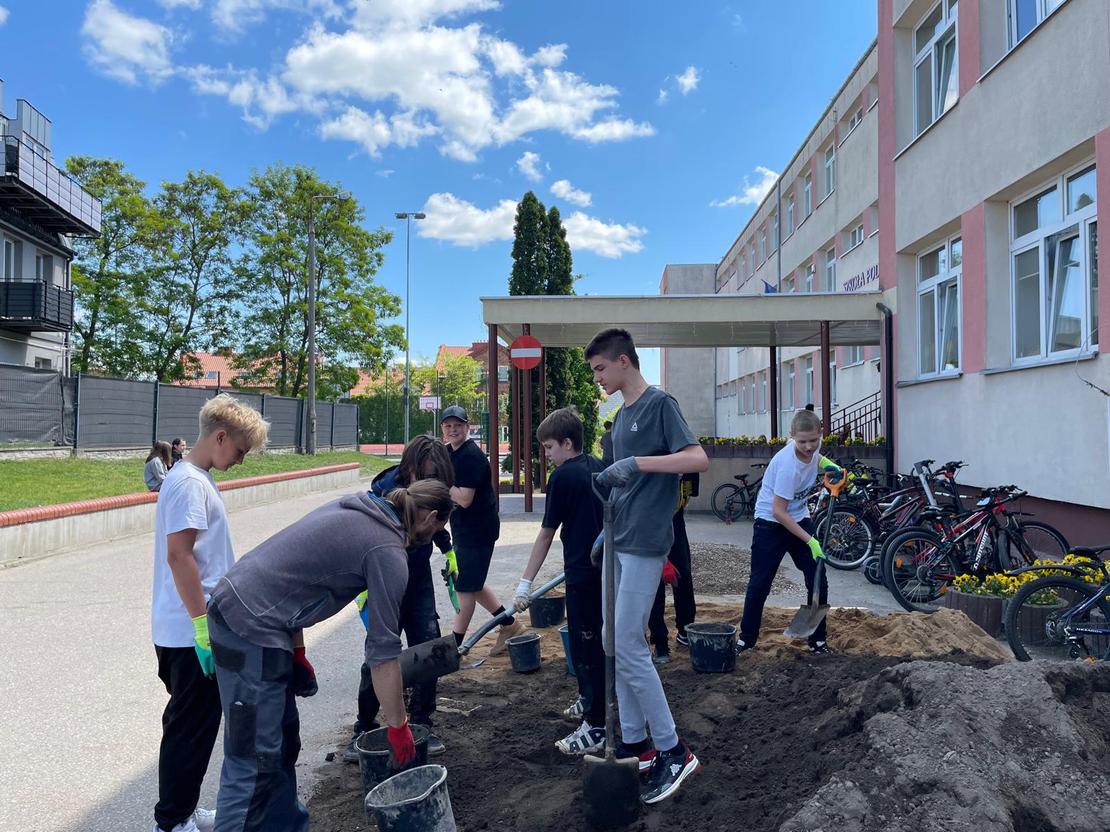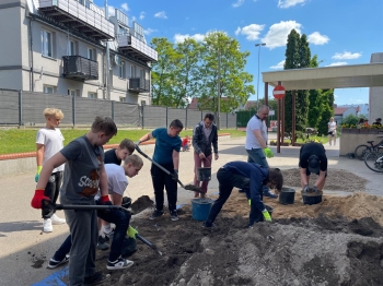 We wtorek szóstoklasiści wzięli udział w wykładzie na temat poprawnego gospodarowania wodą i budowy ogrodów deszczowych. Po zajęciach teoretycznych uczniowie klasy 6a przystąpili do działania i z pomocą doświadczonych specjalistów z Deer Garden. Naturalnie założyli swój pierwszy ogród deszczowy przed szkołą. Nasz ogród powstał w ramach projektu „Zintegrowane przedsięwzięcia infrastrukturalne dostosowujące teren Miasta Mława do zmian warunków pogodowych poprzez poprawę retencji i zarządzanie wodami opadowymi” realizowanego przez Urząd Miasta Mława.