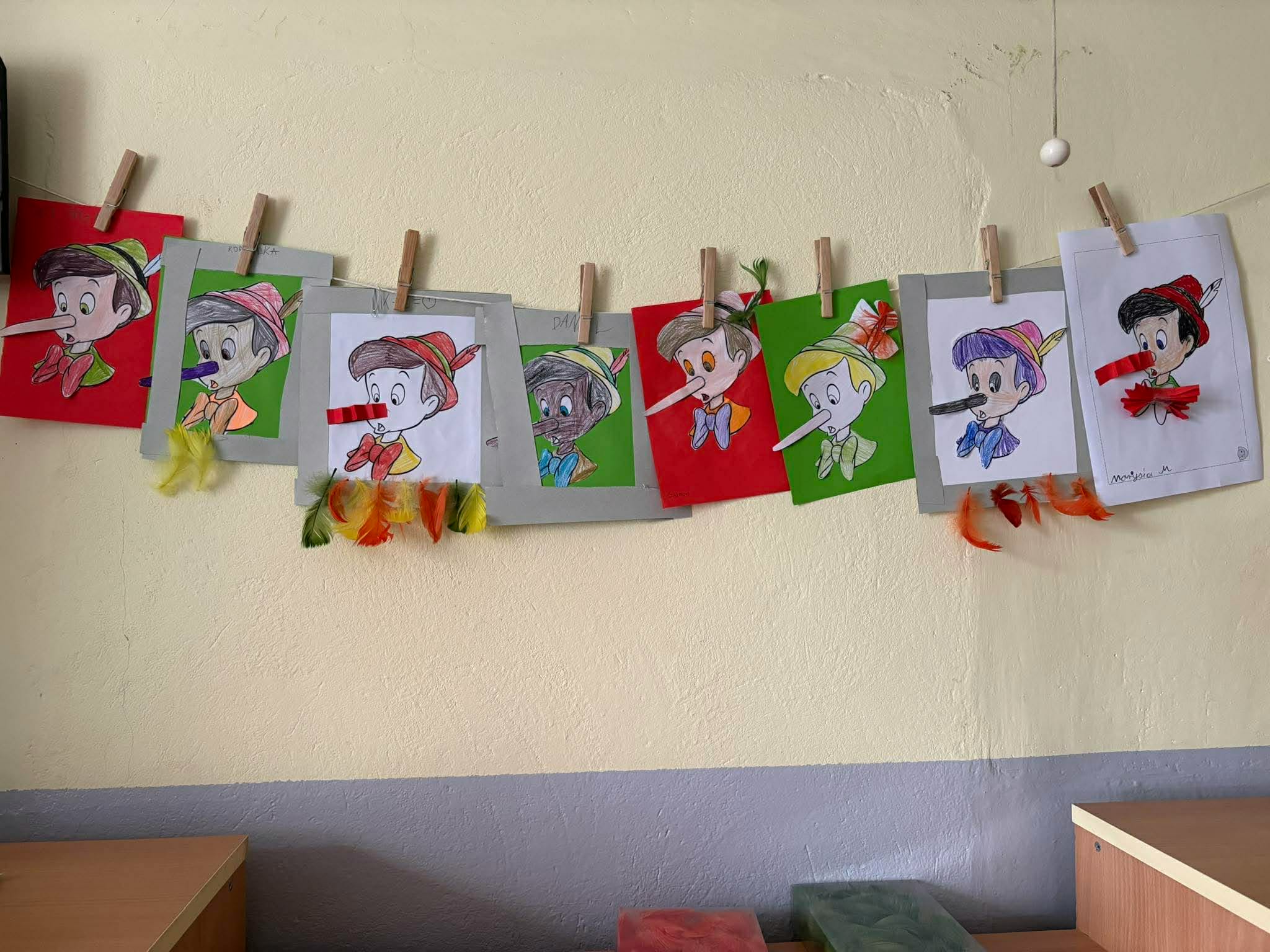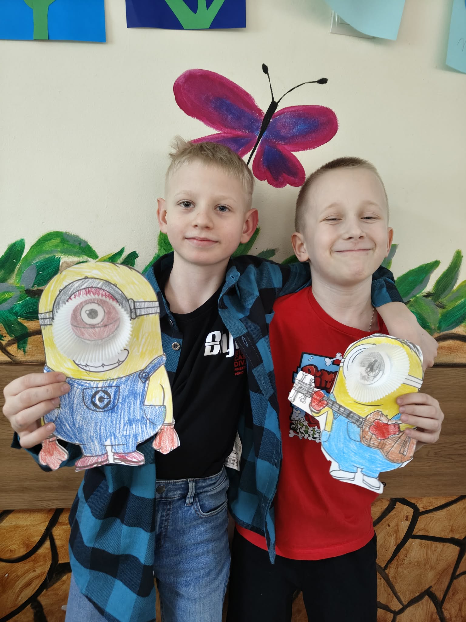 Dzieci wykonały prace plastyczne przedstawiające swoje ulubione postacie z bajek m.in. minionka, Pinokia oraz tworzyły własne mini książeczki z kartki A4.