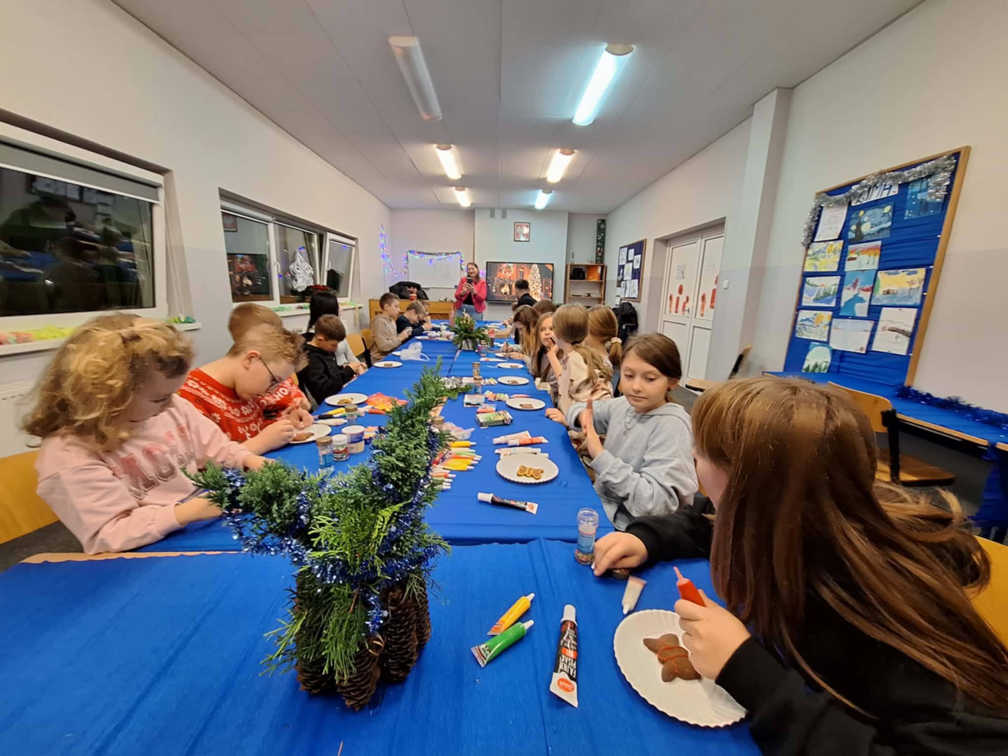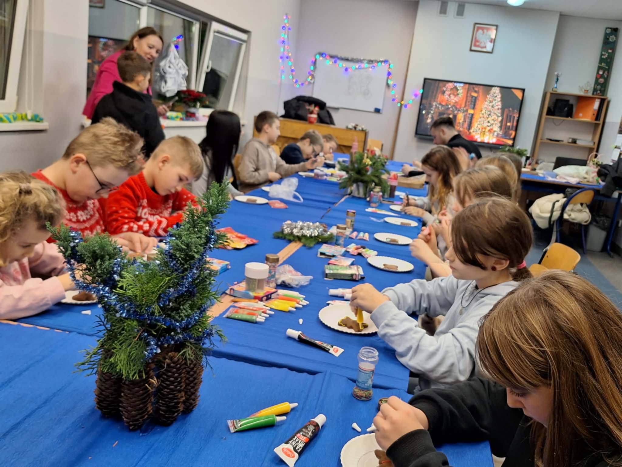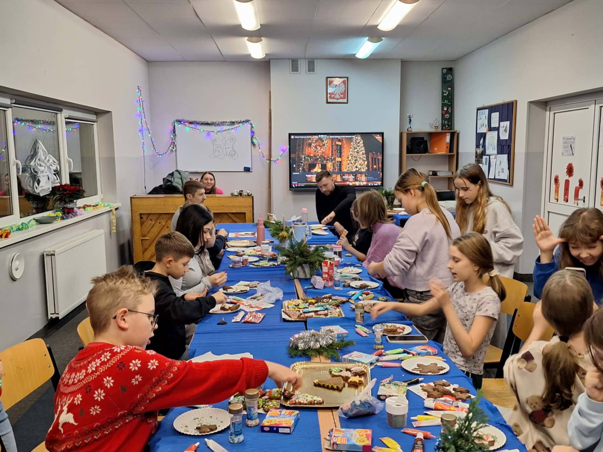 W dniu 9 grudnia o godzinie 17, w sali nr 15 uczniowie klas IIIc, IVa i dzieci z oddziału przedszkolnego wzięli udział w warsztatach pierniczkowania. w trakcie warsztatów mieli okazję poznać tradycyjne sposoby przygotowania i dekorowania pierników. Pod kierunkiem p. Renaty Śnieguckiej samodzielnie uczniowie zdobili pierniczki kolorowymi lukrami i posypkami. Warsztaty dostarczyły uczestnikom nie tylko nowych umiejętności kulinarnych, ale także mnóstwo radości i okazji do wspólnej zabawy. Gotowe pierniki stały się piękną pamiątką oraz wprowadziły wszystkich w świąteczny nastrój.