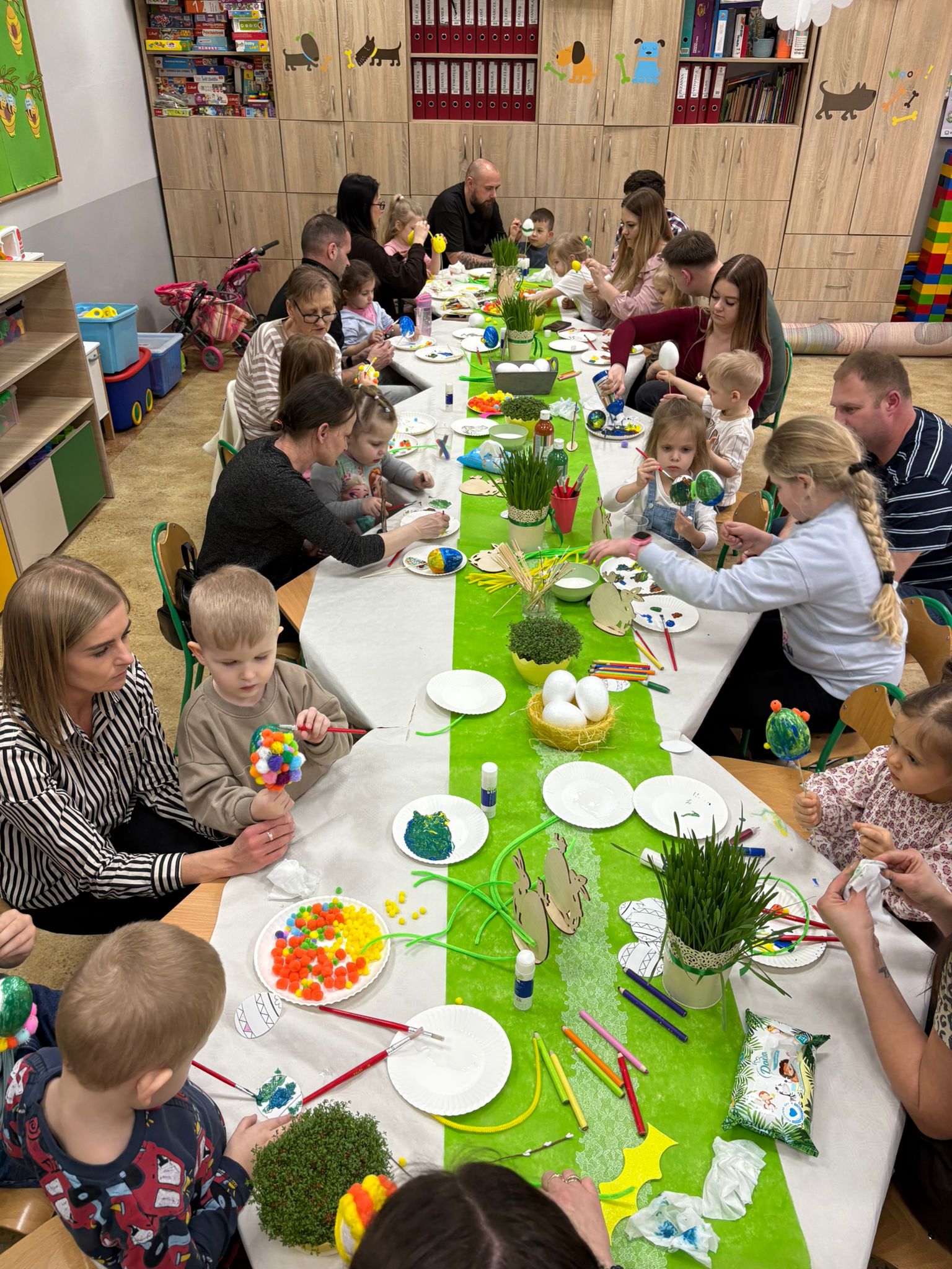24 marca nasze przedszkole wypełniło się radosnym gwarem, śmiechem dzieci i twórczą energią, wszystko za sprawą wyjątkowych Warsztatów Wielkanocnych, które zgromadziły dzieci wraz z Rodzicami. Podczas spotkania uczestnicy wspólnie tworzyli barwne ozdoby wielkanocne, z zaangażowaniem malowali pisanki oraz przygotowywali świąteczne stroiki i dekoracje. Każda praca była niepowtarzalna i pełna dziecięcej wyobraźni. Była to nie tylko doskonała okazja do rozwijania kreatywności najmłodszych, ale także piękny czas budowania i umacniania rodzinnych więzi.