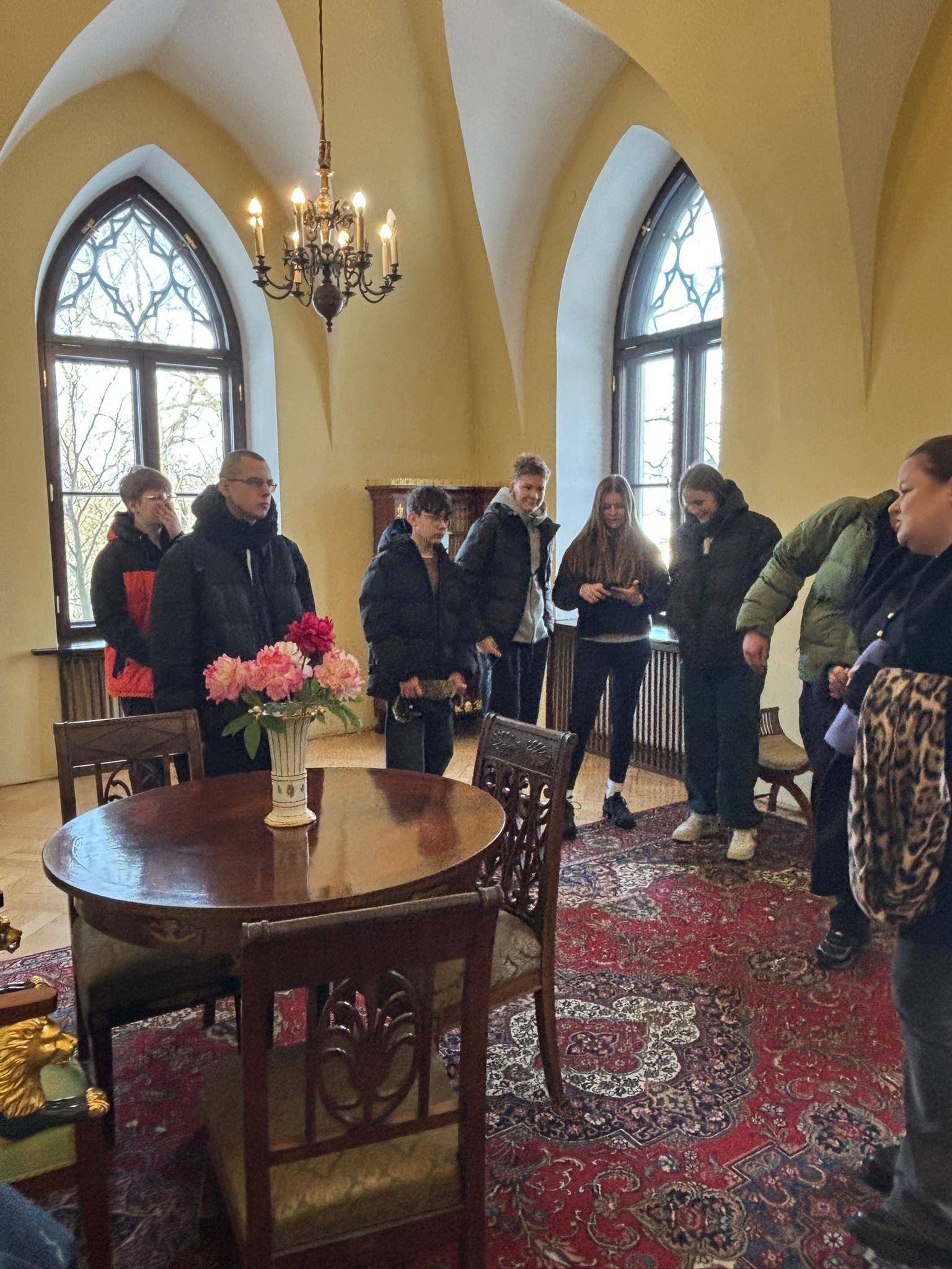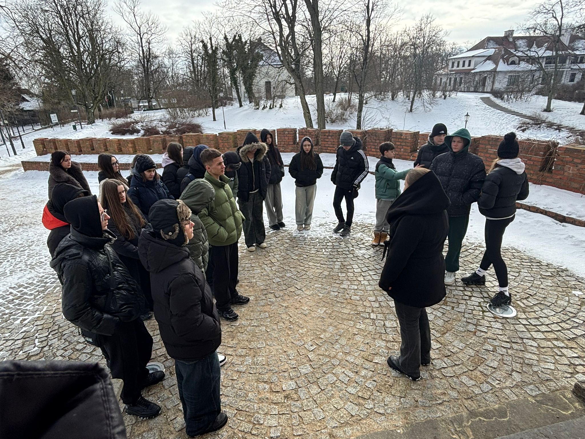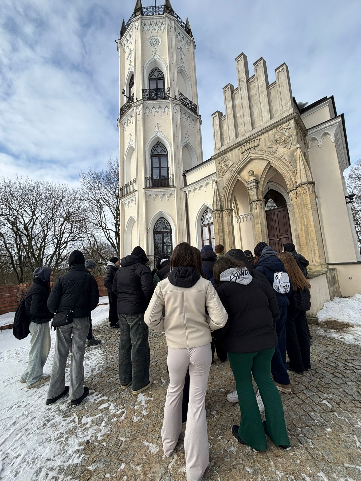 Pobyt w Opinogórze był również okazją do zwiedzenia malowniczego zespołu pałacowo-parkowego oraz poznania historii rodu Krasińskich. Kontakt z autentycznymi pamiątkami historycznymi pozwolił uczniom spojrzeć na wydarzenia z przeszłości w sposób bardziej osobisty i refleksyjny.