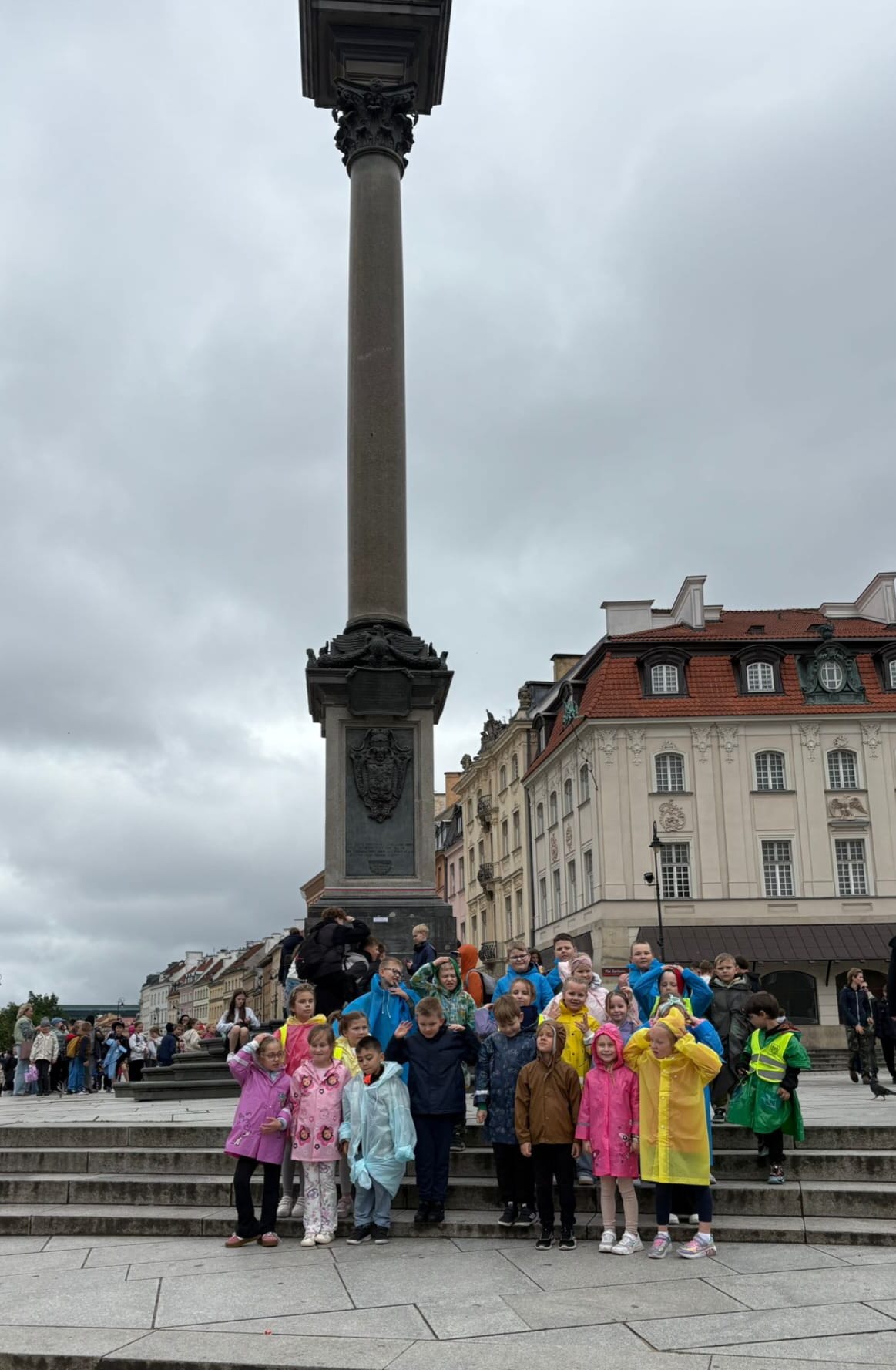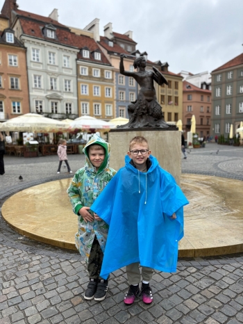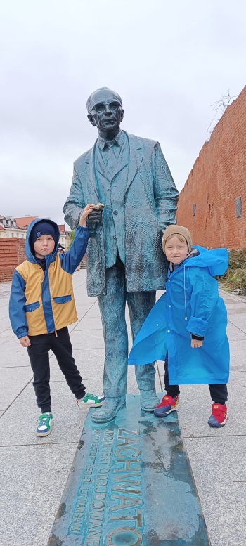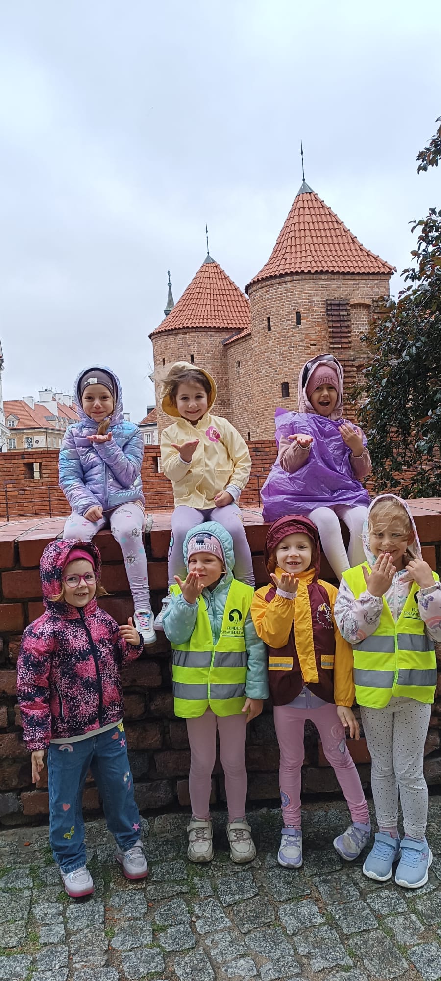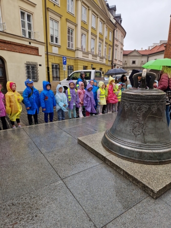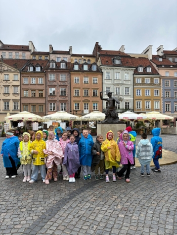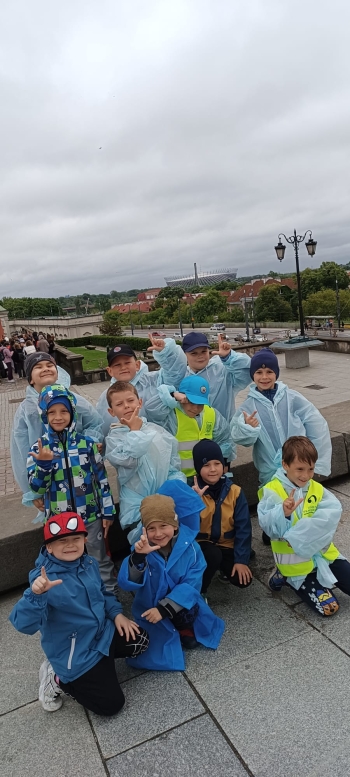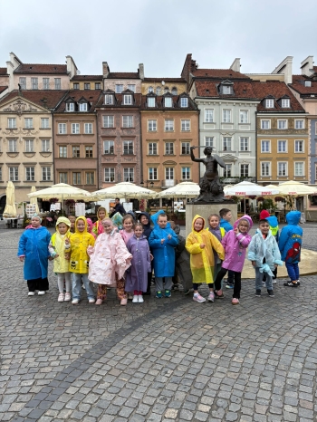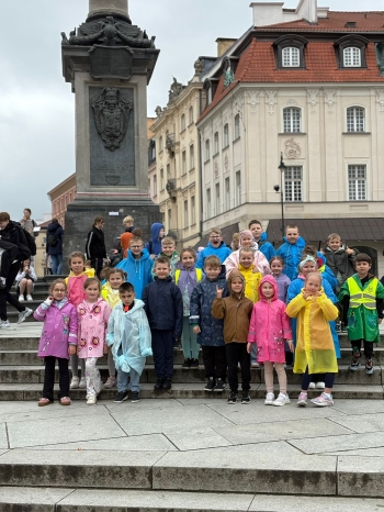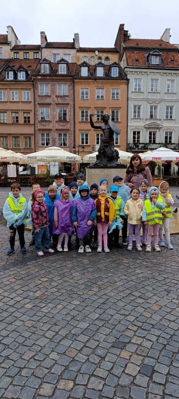 przed wycieczką do Warszawy. Pogoda nie sprzyjała - niebo było pochmurne, a deszcz siąpił nieustannie. Mimo niesprzyjających warunków atmosferycznych, wszystkie dzieci pojawiła się punktualnie, ubrana w przeciwdeszczowe kurtki. W powietrzu unosiła się mieszanka ekscytacji i lekkiego rozczarowania z powodu brzydkiej pogody. Jednakże wyruszyliśmy na pełną atrakcji wycieczkę do stolicy aby wziąć udział w zaplanowanych aktywnościach.