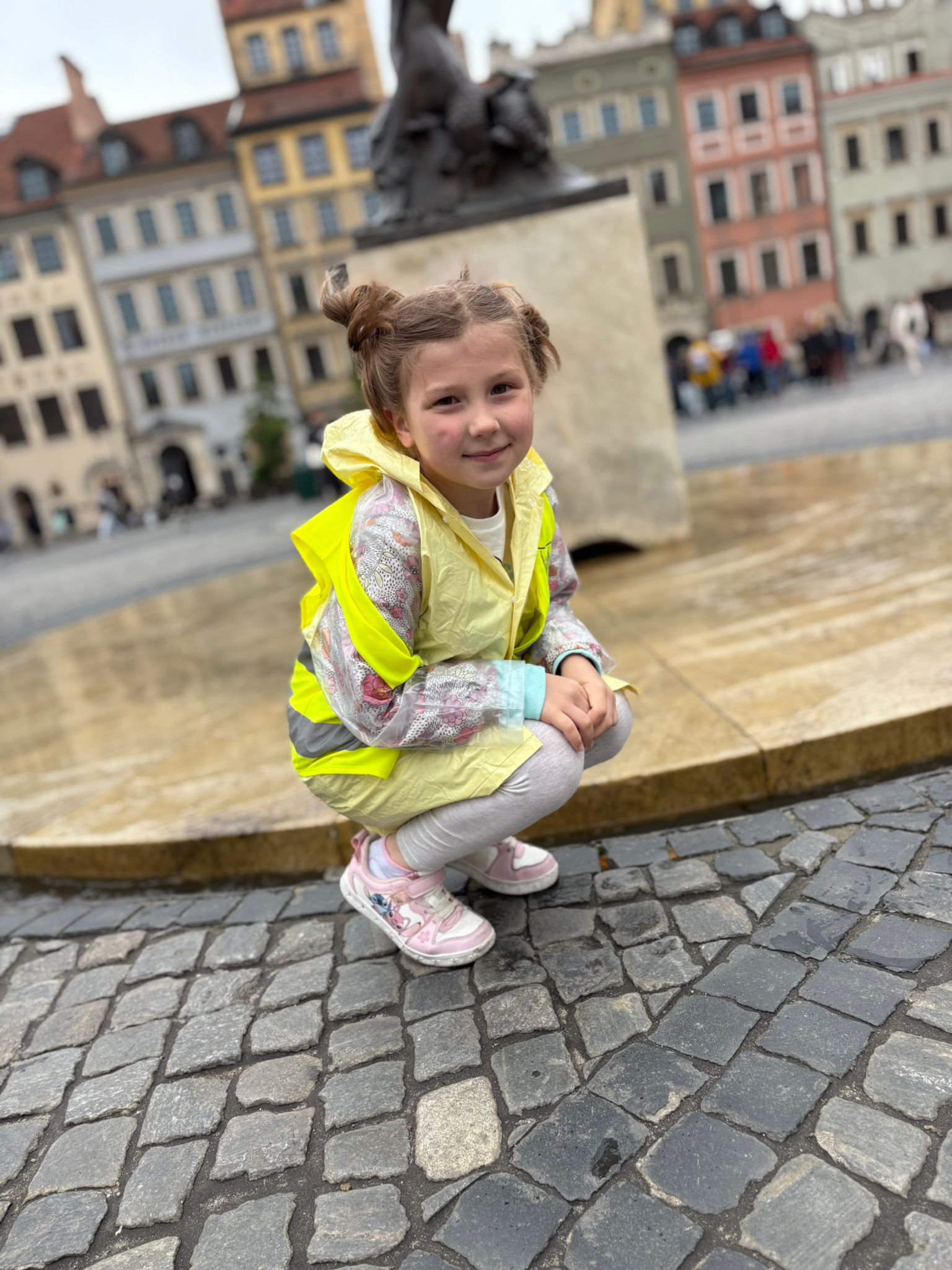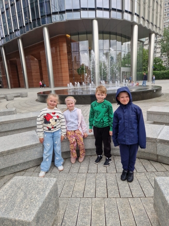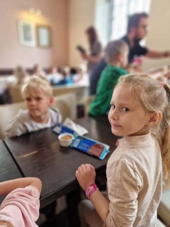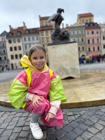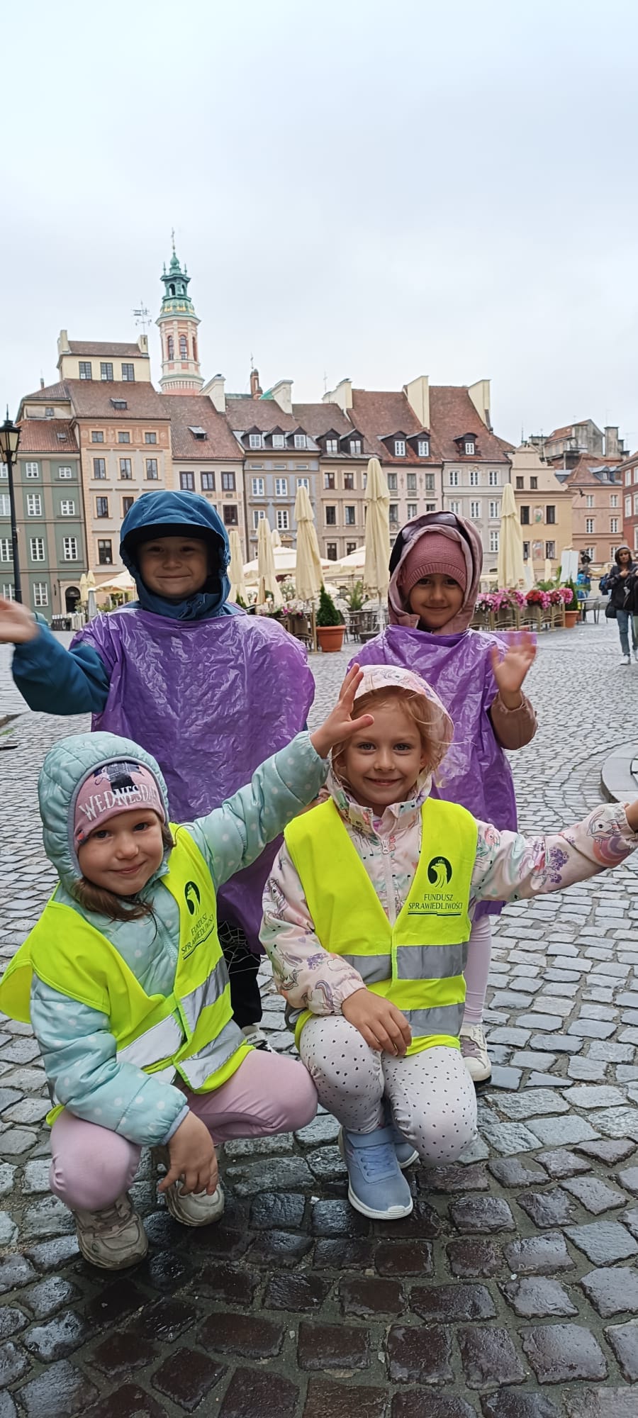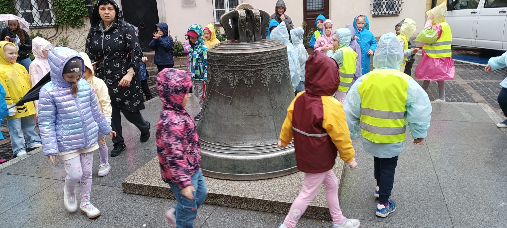 przed wycieczką do Warszawy. Pogoda nie sprzyjała - niebo było pochmurne, a deszcz siąpił nieustannie. Mimo niesprzyjających warunków atmosferycznych, wszystkie dzieci pojawiła się punktualnie, ubrana w przeciwdeszczowe kurtki. W powietrzu unosiła się mieszanka ekscytacji i lekkiego rozczarowania z powodu brzydkiej pogody. Jednakże wyruszyliśmy na pełną atrakcji wycieczkę do stolicy aby wziąć udział w zaplanowanych aktywnościach.