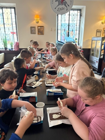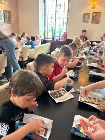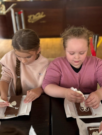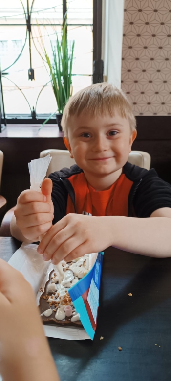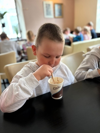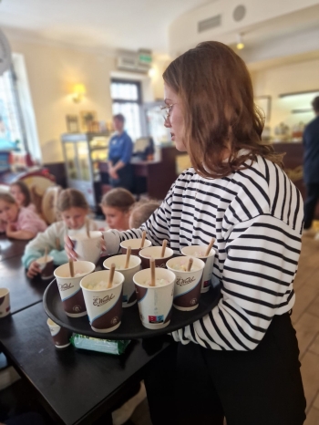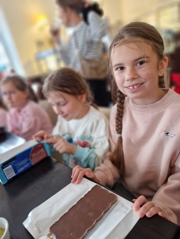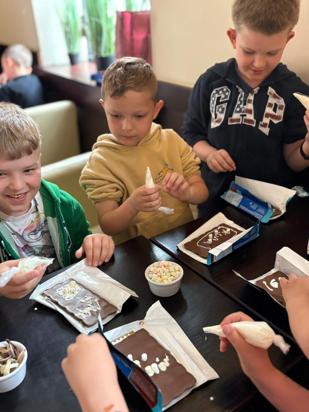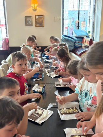 Pierwszym punktem programu byly warsztaty w Pijalni Czekolady Wedel, podczas których dzieci miały