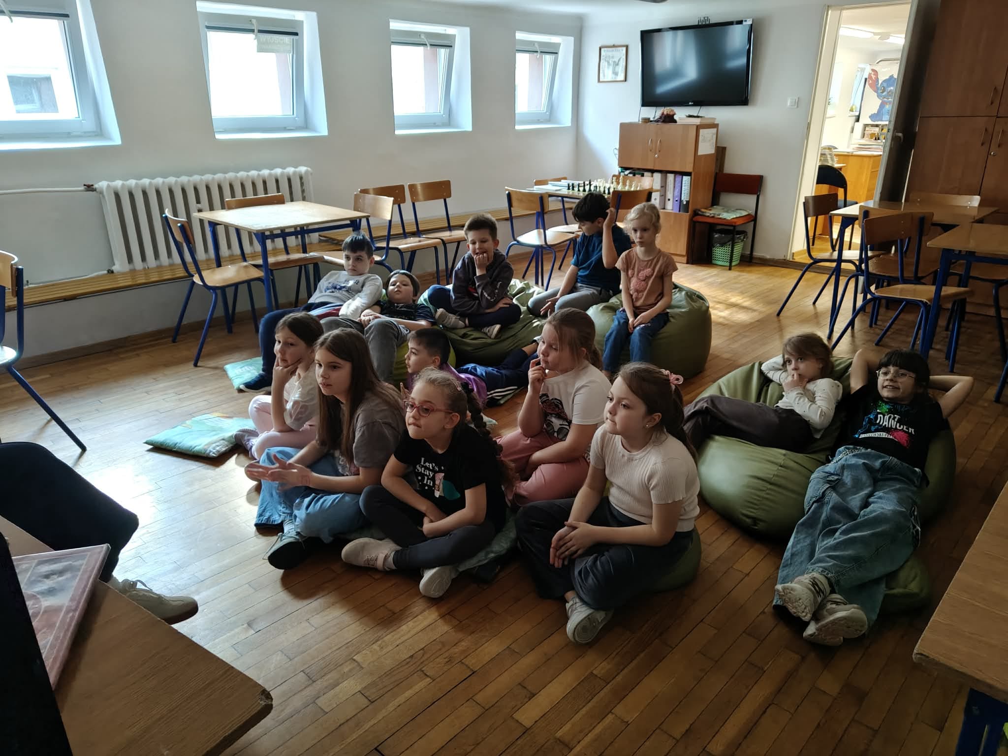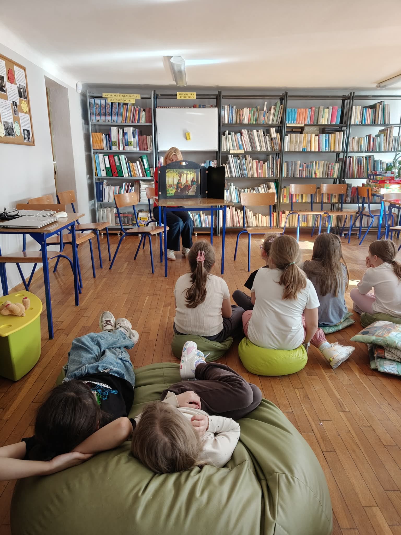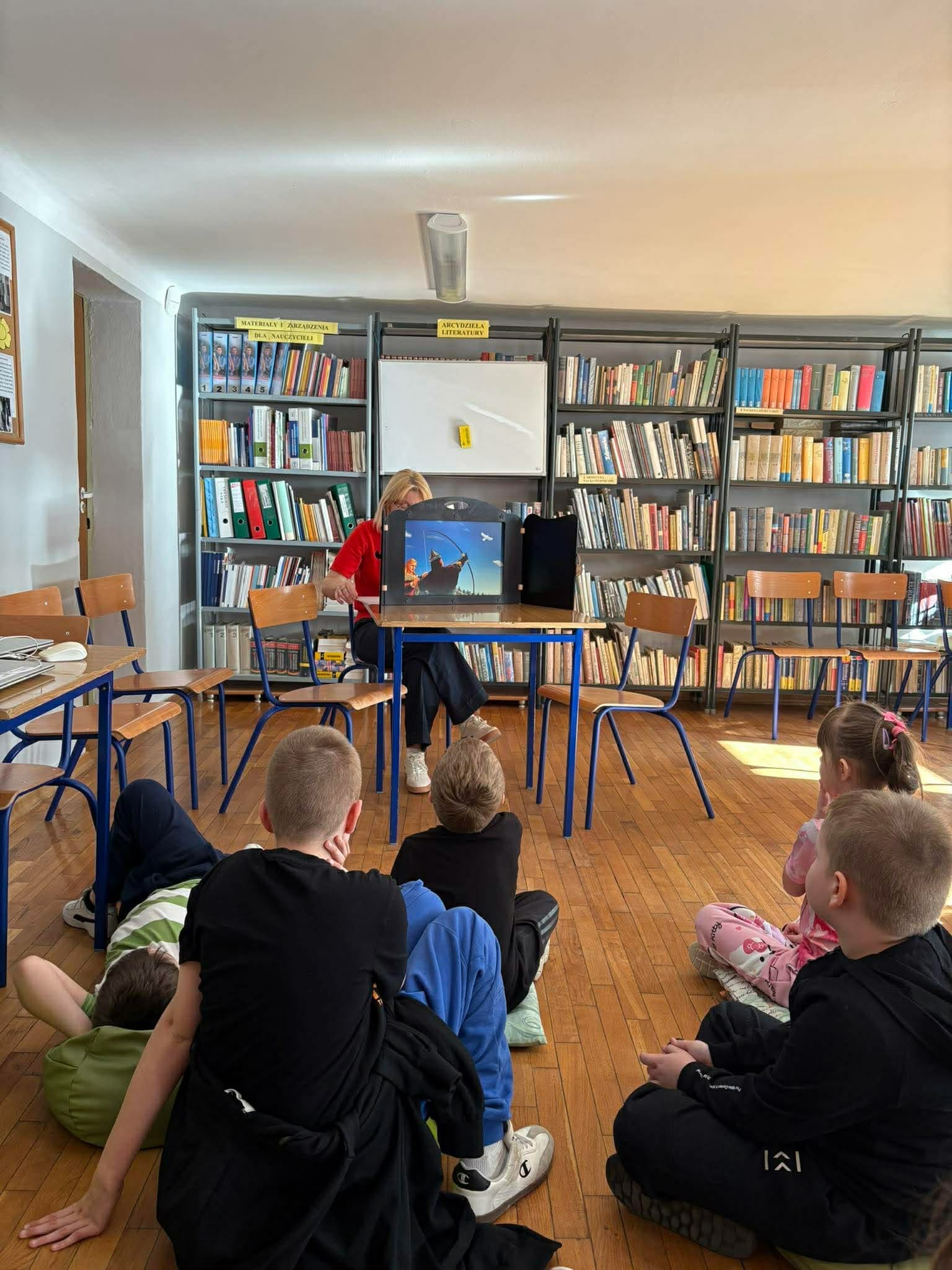 Dodatkowo udaliśmy się do biblioteki, gdzie Pani Katarzyna (nauczyciel bibliotekarz) w ciekawy sposób przedstawiła nam legendę o Lechu, Czechu i Rusie w formie teatrzyku kamishibai, co było dla dzieci nowym i bardzo interesującym doświadczeniem.